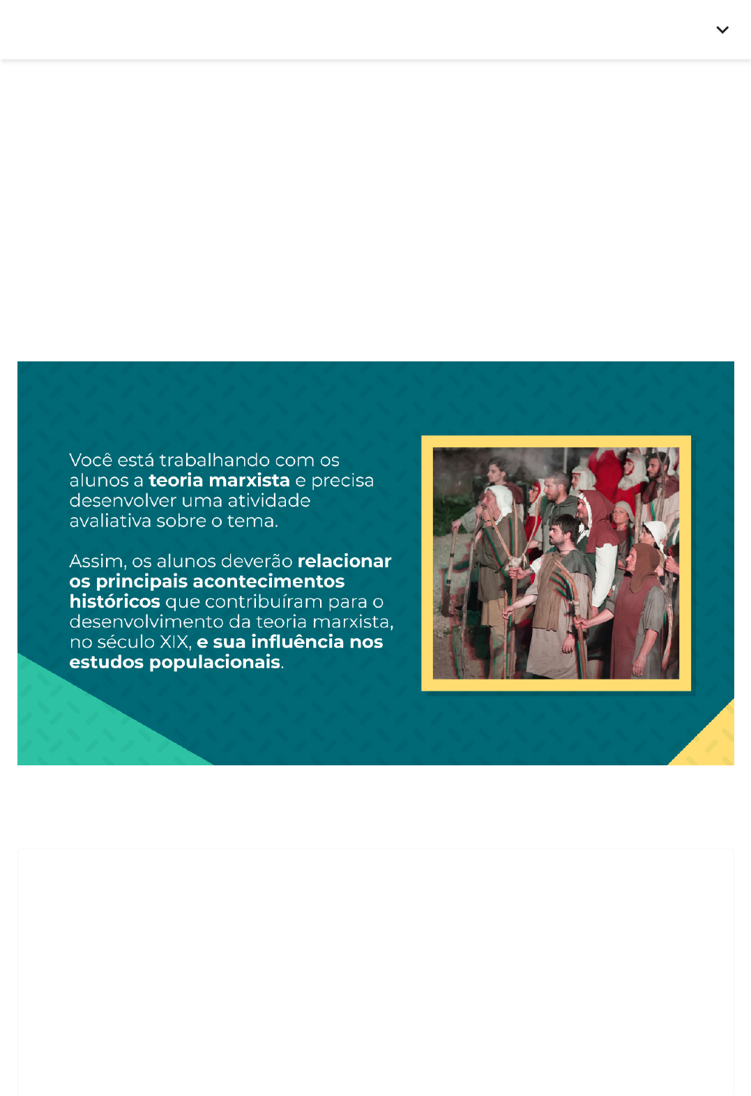15/08/2023, 15:32 As teorias populacionais marxista e reformista :: Plataforma A https://metropolitanasp.grupoa.education/sagah/object/default/53913412 1/2 Desafio Toda teoria social é desenvolvida a par�r de um contexto específico, de uma realidade social observada. As teorias marxistas, que são base para o avanço de inúmeros estudos no campo da Geografia, também �veram como fonte de inspiração acontecimentos em um determinado lugar e momento da história da humanidade. A par�r desse entendimento, vê-se que Karl Marx desenvolveu suas considerações teóricas em um período marcado por profundas transformações nas relações econômicas, de produção e trabalho na Inglaterra, resultado da Revolução Industrial em curso no país. Suponha que você é professor de Geografia do Ensino Médio e está na seguinte situação: Na correção dessa a�vidade, quais elementos históricos você considera que devam constar nos trabalhos realizados? Desenvolva sua resposta. Sua resposta Revolução industrial Lei das terras inglesa Manufatura e artesanato Concentração de terras Propriedade privada dos meios de produção. Anterior Próximo RR 15/08/2023, 15:32 As teorias populacionais marxista e reformista :: Plataforma A https://metropolitanasp.grupoa.education/sagah/object/default/53913412 2/2 Enviado em: 18/07/2023 10:19 Padrão de resposta esperado Entre os acontecimentos históricos que inspiraram o desenvolvimento da teoria de Marx, no século XIX, os alunos devem ao menos considerar: A expulsão dos camponeses ingleses de suas terras, nos séculos XVI e XVII. A acumulação originária, segundo Marx, é a gênese do processo de acumulação do capital, pois envolve a separação do trabalhador dos meios de produção; ocorreu ainda nos séculos XVI e XVII, por meio da expulsão dos camponeses ingleses de suas terras, que deram lugar à criação de ovelhas, cuja lã seria des�nada à produção têx�l. Além de a expulsão dos camponeses de suas terras inflacionar a população das cidades, de acordo com a teoria marxista, é por meio da acumulação do capital que se intensificam as desigualdades sociais. A industrialização na Inglaterra, nos séculos XVII e XIX. A subs�tuição do trabalho manufaturado pelo industrial teve impactos profundos na organização produ�va, econômica e social na Inglaterra e, posteriormente, na Europa, afetando a vida dos trabalhadores industriais, que viviam em situação de extrema precariedade. De acordo com a teoria marxista, foi por meio da industrialização que surgiu o sistema socioeconômico vigente. A estrutura produ�va do capitalismo industrial foi o objeto de estudo de Marx, o que jus�fica a importância de sua presença no trabalho a ser realizado pelos alunos. A primeira fase do crescimento populacional, nos países desenvolvidos e subdesenvolvidos. A primeira fase do crescimento populacional na Europa data do final do século XVIII e início do XIX, período marcado pelo acelerado crescimento demográfico durante a Revolução Industrial. Já a primeira fase do crescimento populacional nos países subdesenvolvidos data da segunda metade do século XX, após a Segunda Guerra Mundial. A questão da superpopulação, em ambas as épocas, levantou – tanto pela teoria marxista, no século XIX, quanto pela reformista, no século XX – ques�onamentos que giraram em torno da relação entre a população e a pobreza. Anterior Próximo RR