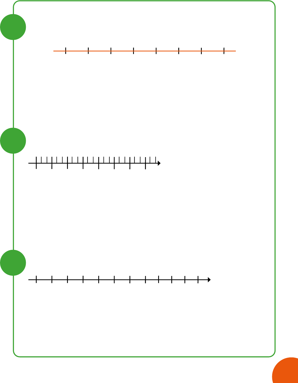 33 MATEMÁTICAMATEMÁTICA P Q -0,5 0 A figura abaixo mostra os pontos P e Q que correspondem a números ra- cionais e foram posicionados na reta numerada do conjunto dos racionais. Em uma aula de Matemática, o professor apresentou aos alunos uma reta numérica como a da figura a seguir. Observe a reta numérica abaixo. O professor marcou o número 4/11 nessa reta. Esse número foi marcado entre que pontos da reta numérica? (A) – 4 e – 3. (B) – 3 e – 2. (C) 0 e 1. (D) 3 e 4. Os valores atribuídos a P e Q, conforme suas posições na reta numérica abaixo são: (A) P = – 0,2 e Q = – 0,3 (B) P = – 0,3 e Q = – 0,2 (C) P = – 0,6 e Q = – 0,7 (D) P = – 0,7 e Q = – 0,6 55 66 77 -4 -3 -2 -1 0 1 2 3 5 5,3 P 6 Nessa reta, que número corresponde ao ponto P? (A) 5,4 (B) 5,5 (C) 5,6 (D) 5,9 x x x Professor, não deixe de reforçar a importancia do cuidado às divisões dos números nas retas numéricas. Professor, é importante reforçar que quando o numerador for maior que o denominador, o resultado sempre será um número locali- zado entre 0 e 1. Se for necessário, faça o cálculo da divisão de 4 por 11 e outros exem- plos para uma melhor compreensão.