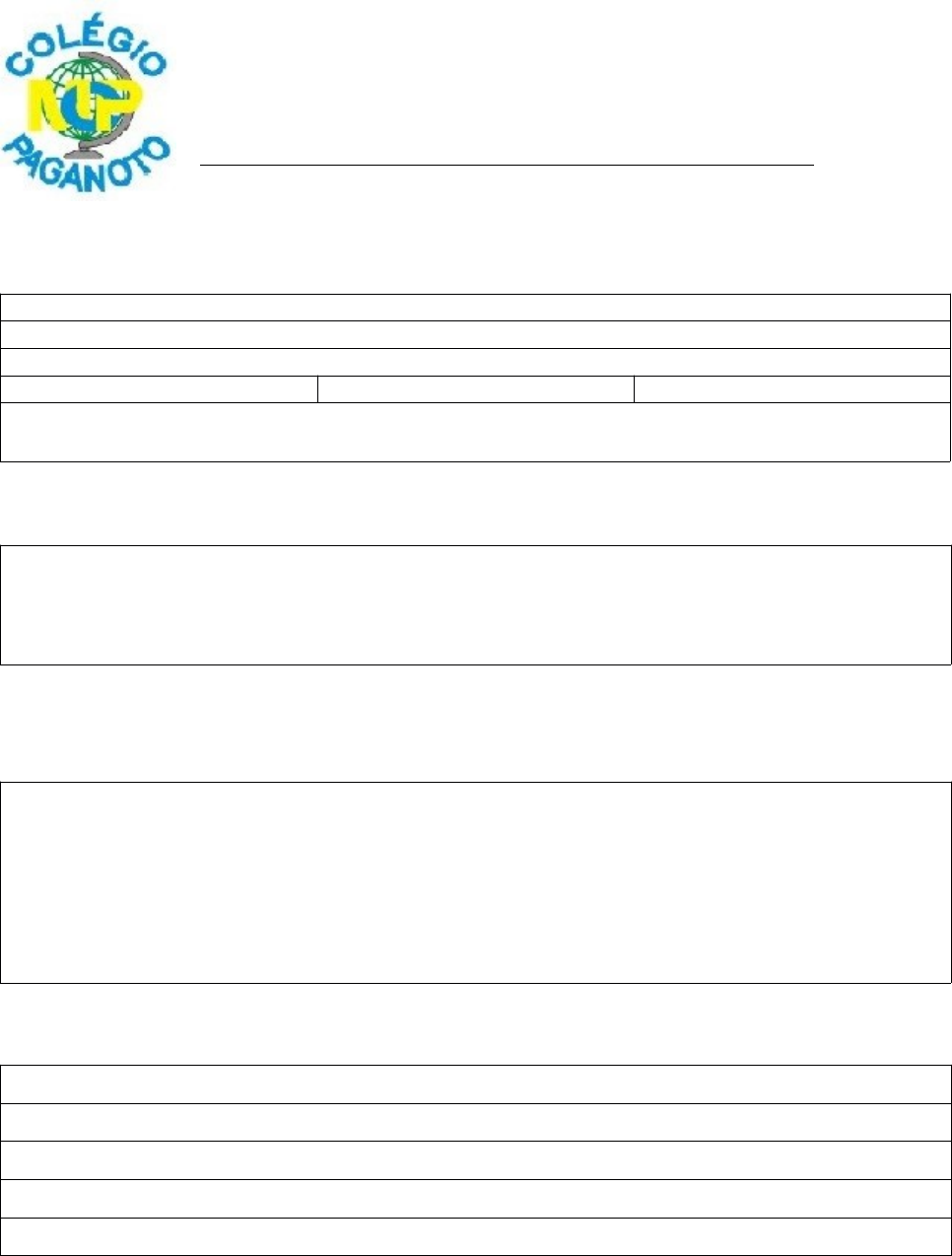 slogan paganotoESTADO DO PARANÁ SECRETARIA DE ESTADO DA EDUCAÇÃO DEPARTAMENTO DE EDUCAÇÃO ESPECIAL NÚCLEO REGIONAL DE FOZ DO IGUAÇU COLÉGIO ESTADUAL MARIANO C.PAGANOTO ANEXO C / ETAPA II RELATÓRIO DE RENDIMENTO ESCOLAR ANO LETIVO: 2018 1º trimestre Professor da SRM: Cíntia Paula Lima Mioranza Nome do aluno estudante: Igor Gonçalves Barbosa DN.: 11/12/2002 9º Ano C TURNO: Matutino Diagnóstico registrado no SERE: Distúrbios de Aprendizagem I – RESULTADOS OBTIDOS O aluno e tranquilo e realiza as atividades propostas pela professora, encontra-se em processo de avaliação. II – SUGESTÕES Foz do Iguaçu, 28 de Maio de 2018. Professora S.R.M. : Pedagoga: Professor(a) Representante: Direção: