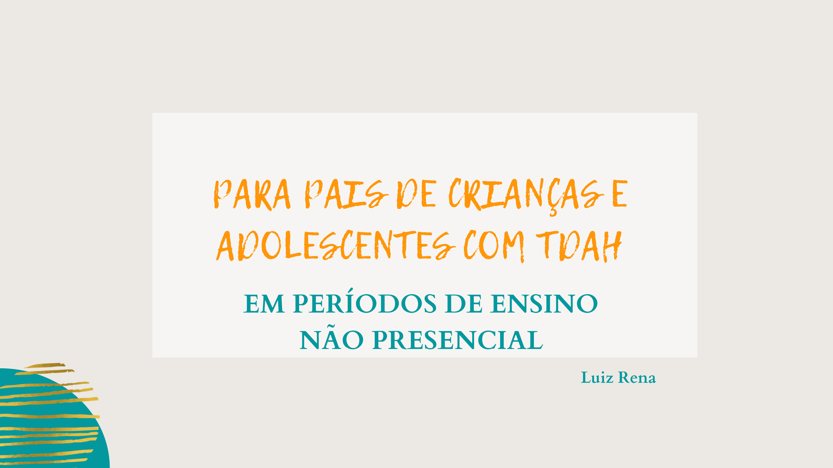 UNIVERSIDADE PRESBITERIANA MACKENZIE Centro de Ciências Biológicas e da Saúde Programa de Pós-graduação em Distúrbios do Desenvolvimento GUIA DE ORIENTAÇÕES PARA PAIS DE CRIANÇAS E ADOLESCENTES COM TDAH EM PERÍODOS DE ENSINO NÃO PRESENCIAL Luiz Renato Rodrigues Carreiro Armando dos Santos Afonso Junior Izabella Trinta Paes Mayara Miyahara Moraes Silva Maria Cristina Triguero Veloz Teixeira 2020 Esse guia foi desenvolvido com o objetivo de ajudar pais e responsáveis de crianças e adolescentes com Transtorno de Déficit de Atenção/Hiperatividade (TDAH) a lidarem com os desafios durante períodos em que as atividades escolares ocorrem de forma não presencial. O material foi elaborado pelo grupo de pesquisa cadastrado no CNPq “Processos atencionais e desenvolvimento humano” (http://dgp.cnpq.br/dgp/espelhogrupo/25434) coordenado pelos Professores Luiz Renato Rodrigues Carreiro e Maria Cristina Triguero Veloz Teixeira ligado ao Programa de Pós-Graduação em Distúrbios do Desenvolvimento da Universidade Presbiteriana Mackenzie. Introdução 2 A necessidade dessas orientações surgiu diante do cenário de distanciamento social provocado pela pandemia do COVID-19. O presente guia foi escrito durante a quarentena do COVID-19, em um momento de incerteza quanto a duração do período de ensino não presencial (ou remoto, uma adaptação do modelo presencial). Porém, seu conteúdo serve para outras situações similares ou mesmo para ajudar o estudo em casa no contraturno da escola. O ensino remoto é um recurso utilizado em diferentes contextos que impossibilitem o acesso presencial dos alunos à escola. As sugestões apresentadas aqui não são direcionadas apenas para as práticas acadêmicas em ensino remoto, mas também são úteis para lidar com mudanças e dificuldades relacionadas ao contexto de casa em que as famílias pode estar vivenciando com o distanciamento social. 3 O conteúdo deste guia foi desenvolvido para auxiliar as famílias nestes contextos. Nossas dicas não devem substituir o diagnóstico ou intervenção profissional. Vale lembrar que, para realizar o diagnóstico de TDAH, é necessária uma equipe interdisciplinar formada por profissionais capacitados (incluindo médicos, psicólogos, fonoaudiólogos, pedagogos, dentre outros), que possam investigar diversas questões ligadas ao desenvolvimento humano. Da mesma forma, um acompanhamento deve ser feito por esses profissionais a fim de procurar as melhores formas de intervenção para cada criança ou adolescente e suas dificuldades. 4 Aprofundando o seu conhecimento sobre o TDAH. A vida escolar de alunos com TDAH. Cuidando do seu filho, de você e da sua família. 4 partes Este manual é composto por Par te 2 . Pa rte 3. Pa rte 4. O que é o TDAH? Parte 1. 5 O primeiro passo para ajudar seu filho com TDAH é entender quais os sinais que costumam estar presentes nessas crianças e adolescentes e as dificuldades associadas a eles. Compreender isso pode fazer toda diferença para lidar com o impacto do TDAH no ambiente escolar, social e familiar. PARTE 1 - TDAHO que é TDAH? 6 O TDAH faz parte dos chamados Transtornos do Neurodesenvolvimento, que são condições que tipicamente se manifestam cedo no desenvolvimento, em geral antes de a criança ingressar na escola, sendo caracterizados por déficits no desenvolvimento que acarretam prejuízos no funcionamento pessoal, social, acadêmico ou profissional. O TDAH é um transtorno do neurodesenvolvimento definido por níveis prejudiciais de desatenção, desorganização e/ou hiperatividade-impulsividade em níveis inconsistentes ou excessivos para a idade ou o nível de desenvolvimento. 7 A desorganização nas tarefas escolares com respostas confusas. Dificuldades para trabalhar independentemente. Dificuldades para prestar atenção em um assunto durante muito tempo. Frequentemente não finalizam o que começam. Tem dificuldades para se concentrar e se distraem com facilidade. Algumas crianças e adolescentes esquecem muito rápido o que foi dito. desatenção São reconhecidos como principais indicadores da desatenção 8 Movimentação excessiva/irrequieto. Agir sem pensar/impulsivo/tem muita pressa. Levantar-se da cadeira frequentemente. Atrapalhar com barulhos excessivos Agir imprudentemente. Falar muito. Não espera sua vez. Se manifestam principalmente a partir de comportamentos como: hiperatividade-impulsividade Já os indicadores de hiperatividade-impulsividade 9 Pais e cuidadores de crianças e adolescentes com devem que esses sinais ocorrem por conta de um transtorno neurológico, e são causados por: Hostilidade e desafio. Os principais sinais do TDAH envolvem prejuízos na atenção além de presença de hiperatividade e impulsividade. Indiferença ou desobediência. TDAH lembrar Não Preguiça. Oposicionismo. Negatividade. Falta de vontade. 10 as condições adversativas da pandemia podem potencializar comportamentos de desafio e oposição que precisam ser manejados adequadamente para evitar que o transtorno tenha seu curso agravado ou piorado. Vale um alerta a pais e cuidadores: a pandemia impossibilitou a muitas famílias a continuidade das intervenções psicológicas presenciais dos filhos com TDAH em decorrência do isolamento social. Entretanto, 11 É que optem por suportes e orientações baseadas em evidências científicas para auxiliar seu filho(a) o que, beneficiará a toda a família em termos de qualidade de vida e bem-estar. segue abaixo um conjunto de manifestações que precisam ser monitoradas... em Frequência em Intensidade Intensidade Frequência Importante Pais e cuidadores, para identificar se está ocorrendo melhora ou piora dos sinais e sintomas. E 12 Ter dificuldades em prestar atenção nos detalhes; Distrair facilmente durante a realização de uma atividade; Cometer erros por descuido; Perder coisas importantes; Apresentar dificuldade de se manter em uma atividade até o fim; Ter dificuldades em organizar suas t