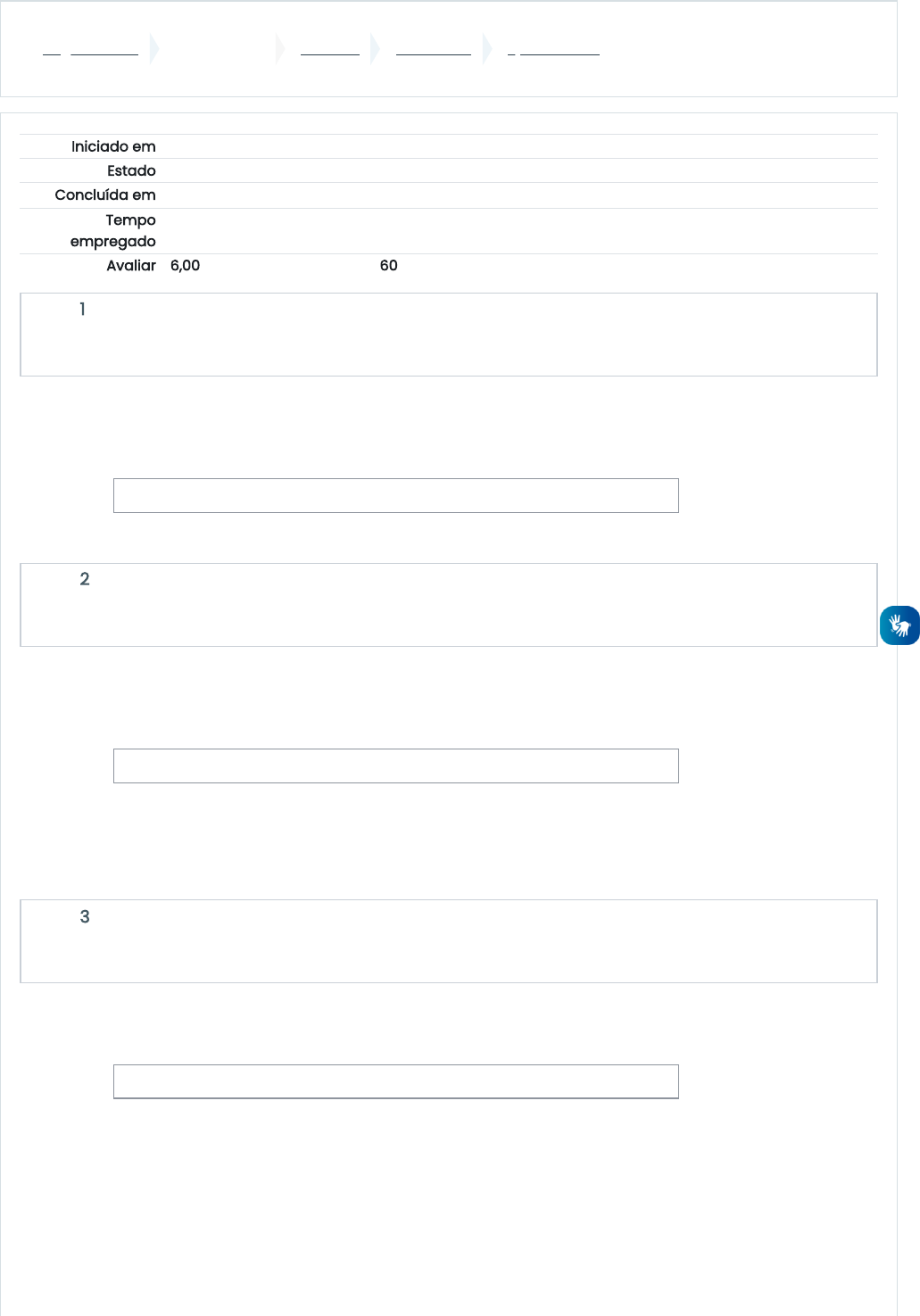 Página inicial Meus cursos SistNum Atividades Questionário Iniciado em quarta-feira, 9 ago 2023, 16:34 Estado Finalizada Concluída em quarta-feira, 9 ago 2023, 16:46 Tempo empregado 11 minutos 59 segundos Avaliar 6,00 de um máximo de 10,00(60%) Questão 1 Incorreto Atingiu 0,00 de 1,00 Questão 2 Correto Atingiu 1,00 de 1,00 Questão 3 Incorreto Atingiu 0,00 de 1,00 Converta o número DECIMAL (17)10 em HEXADECIMAL. Coloque a resposta neste modelo: (x)y, onde x é o algarismo e y, a base. Resposta: (11)16. Execute a operação de SUBTRAÇÃO de números BINÁRIOS (100)2 – (11)2. Coloque a resposta neste modelo: (x)y, onde x é o algarismo e y, a base. Resposta: (1)2 Resposta correta, parabéns! A resposta está de acordo com este cálculo → (100)2 – (11)2 = (001)2. Diga a qual sistema numérico pertence este número (A2)16. Responda no formato: "Sistema Numérico...... ". Resposta: pertence ao sistema numérico hexadecimal. https://cursos.poca.ufscar.br/ https://cursos.poca.ufscar.br/course/view.php?id=11§ion=0 https://cursos.poca.ufscar.br/course/view.php?id=11§ion=3 https://cursos.poca.ufscar.br/mod/quiz/view.php?id=179 Questão 4 Correto Atingiu 1,00 de 1,00 Questão 5 Incorreto Atingiu 0,00 de 1,00 Questão 6 Correto Atingiu 1,00 de 1,00 Converta o número HEXADECIMAL (A9)16 em BINÁRIO. Escolha uma opção: (10101000)2 (10001000)2 (11000110)2 (10000101)2 (10101001)2 Resposta correta, parabéns! A resposta está de acordo com este cálculo → (A9)16: 1010(A) e 1001(9) = (10101001)2. Sua resposta está correta. Execute a MULTIPLICAÇÃO dos números BINÁRIOS (101)2 x (10)2. Coloque a resposta neste modelo: (x)y, onde x é o algarismo e y, a base. Resposta: 1010 Converta o número DECIMAL (9)10 em BINÁRIO. Escolha uma opção: (1001)2 Resposta correta, parabéns! A resposta está de acordo com este cálculo → (9)10: 9/2→4 e resto 1(LSB); 4/2→2 e resto 0; 2/2→1(MSB) e resto 0. Resultado: (1001)2. (1010)2 (0011)2 (1111)2 (1000)2 Sua resposta está correta. Questão 7 Correto Atingiu 1,00 de 1,00 Questão 8 Incorreto Atingiu 0,00 de 1,00 Questão 9 Correto Atingiu 1,00 de 1,00 Converta o número fracionário BINÁRIO (11,1)2 em DECIMAL. Escolha uma opção: (2,5)10 (2,5)2 (3,5)10 Resposta correta, parabéns! A resposta está de acordo com este cálculo → (11,1)2: 1x2¹ + 1x2º + 0x2(elevado a -1)= 2 + 1 + 0,5 =(3,5)10 (5,5)10 (5,0)10 Sua resposta está correta. Execute a operação de ADIÇÃO dos números BINÁRIOS (1010)2 + (1010)2. Coloque a resposta neste modelo: (x)y, onde x é o algarismo e y, a base. Resposta: 10100 Diga a qual sistema numérico pertence este número (11)2. Escolha uma opção: Sistema Numérico Decimal Sistema Numérico Romano Sistema Numérico Maia Sistema Numérico Binário Resposta correta! A indicação desse sistema pode ser verificada na indicação da base(2). Sistema Numérico Octal Sistema Numérico Hexadecimal Sua resposta está correta. Questão 10 Correto Atingiu 1,00 de 1,00 Converta o número BINÁRIO (111)2 em DECIMAL. Escolha uma opção: (6)10 (11)2 (7)10 Resposta correta, parabéns! A resposta está de acordo com este cálculo → (111)2: 1x2² + 1x2¹ + 1x2º = 4 + 2 + 1 = (7)10 (2)2 (A)16 Sua resposta está correta. Atividade anterior ◄ Guia do Curso Seguir para... Próxima atividade Exercícios complementares - Unidade 1 ► Manter contato Secretaria Geral de Educação a Distância http://www.sead.ufscar.br contato@poca.ufscar.br Resumo de retenção de dados Obter o aplicativo para dispositivos móveis https://cursos.poca.ufscar.br/mod/book/view.php?id=169&forceview=1 https://cursos.poca.ufscar.br/mod/quiz/view.php?id=1944&forceview=1 http://www.sead.ufscar.br/ mailto:contato@poca.ufscar.br https://cursos.poca.ufscar.br/admin/tool/dataprivacy/summary.php https://download.moodle.org/mobile?version=2021051715&lang=pt_br&iosappid=633359593&androidappid=com.moodle.moodlemobile