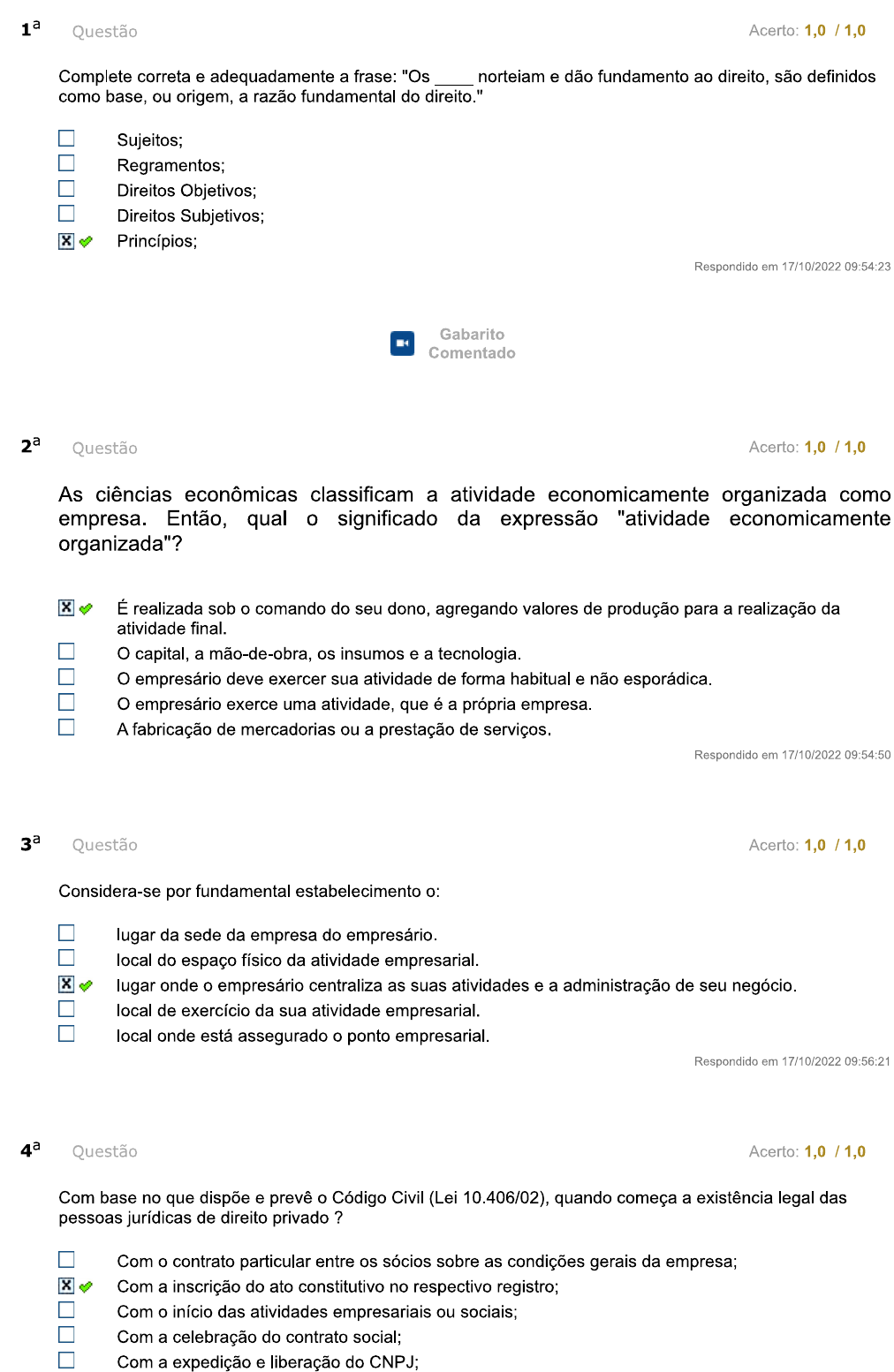 SIMULADO 2- FUNDAMENTOS DE DIREITO EMPRESARIAL