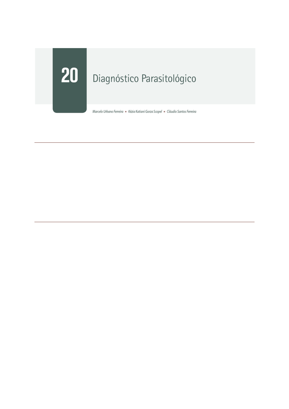Introdução O diagnóstico parasitológico consiste na identificação direta do parasito em tecidos ou secreções de indivíduos infectados, com ou sem o auxílio de métodos de concentração, isolamento ou cultivo. Embora diversos métodos imunológicos e moleculares tornem possível o diagnóstico indireto de doenças parasitárias, por meio da detecção de produtos do parasito (antígenos ou material nucleico) ou de respostas específicas do hospedeiro (humorais ou celulares), a visualização direta dos parasitos permanece como recurso essencial para o diagnóstico de determinadas infecções. Descrevem-se, neste capítulo, os métodos de diagnóstico parasitológico mais comuns na rotina de análises clínicas. Identificação morfológica de parasitos Os parasitos são seres vivos que compõem um conjunto taxonomicamente heterogêneo, definido segundo critérios ecológicos. Suas dimensões distribuem-se por várias ordens de grandeza e, para sua identificação morfológica, são utilizados frequentemente instrumentos de ampliação óptica, como as lupas comuns (aumento entre 2× e 5×) e as lupas conta-fios (aumento entre 10× e 25×), os microscópios estereoscópicos (aumento máximo entre 30× e 50×) e os microscópios biológicos (ou microscópios bacteriológicos; aumento máximo de 1.000×). Durante seu ciclo biológico, uma espécie de parasito pode ser albergada sucessivamente por hospedeiros intermediários de categorias taxonômicas diversas. No hospedeiro definitivo, populações de parasitos de determinadas espécies podem migrar por diversos órgãos e tecidos, causando lesões durante o percurso. Em algumas situações, as formas diagnósticas dos parasitos são pesquisadas em amostras de tecidos pelos quais ocorre essa migração. Como exemplo, temos o exame de fragmentos de mucosa retal para pesquisa de ovos de Schistosoma mansoni, uma abordagem diagnóstica eventualmente empregada até anos recentes. O acesso aos parasitos contidos nas amostras destinadas a exames parasitológicos, bem como a sua identificação, depende de estratégias para salientar as imagens em relação aos materiais particulados existentes. A coloração das amostras é a estratégia mais comum utilizada com esse objetivo. Dentre os corantes disponíveis, alguns têm afinidade específica pelos parasitos; outros, ao evidenciar caracteres diferenciais de parasitos, geralmente o contraste entre o núcleo e o citoplasma, também facilitam sua identificação. Outra estratégia frequente depende do uso de filtros ópticos coloridos e de técnicas de iluminação especiais, como campo escuro e iluminação oblíqua, para aumentar o contraste de imagens dos parasitos e facilitar sua identificação morfológica. Com finalidade didática ou de documentação, podem-se obter imagens fotográficas e submetê-las a processamento computadorizado para acentuar estruturas pouco evidentes. Como regra geral, os laboratórios recebem materiais biológicos distintos, como amostras de sangue ou fezes, nos quais deve ser feita a pesquisa de parasitos. O diagnóstico laboratorial dependerá do encontro de parasitos nas amostras examinadas. Entretanto, os componentes da amostra provenientes do hospedeiro (células, restos alimentares) poderão dificultar ou mesmo impedir a identificação desses parasitos. Tais componentes constituem o ruído, que dificulta a identificação do sinal, representado pelos parasitos cuja evidenciação levará a um diagnóstico etiológico. As técnicas usadas para dar ao exame parasitológico a confiabilidade necessária devem ser projetadas para aumentar a relação sinal-ruído, reduzindo as causas de interferência nas imagens dos parasitos. Exame parasitológico de fezes Coleta e conservação de amostras As amostras fecais destinadas a exame devem ser colhidas, sem contaminação com urina nem detritos do solo, em recipientes limpos, de boca larga, sem vazamentos. Normalmente, não devem ser aceitas para exame amostras colhidas até 1 semana depois da administração de laxantes potentes. Em raras situações, quando há suspeita de amebíase, giardíase ou estrongiloidíase, usam-se laxantes salinos (fosfato de sódio ou sulfato de sódio). Inicialmente deve ser observada a consistência das fezes (Figura 20.1). A quantidade mínima necessária para um exame adequado situa-se entre 2 e 5 g de fezes. As fezes formadas não devem ser incubadas a 37°C nem congeladas, mas podem ser preservadas em geladeira, a 4°C. As fezes humanas são compostas de água, muco, gorduras, células intestinais descamadas, bactérias e restos de alimentos de origem vegetal ou animal, entre outros. Podem conter sangue e pus, em certas condições patológicas, e até mesmo helmintos ou partes deles, como proglotes de tênias. As bactérias constituem cerca de 30% do material particulado e são a causa principal do aspecto turvo observado em suspensões aquosas de fezes humanas. Outras partículas sólidas, de dimensões diversas, também dificultam a observação dos parasitos nas fezes, exceto quando o material é altamente diluído. Esse é o caso do chamado exame direto, aplicado principalmente à pesquisa de trofozoítos vivos de protozoários intestinais em fezes recém-eliminadas. https://jigsaw.minhabiblioteca.com.br/books/9788527737166/epub/OEBPS/Text/chapter20.html#fig20-1 FIGURA 20.1 Classificação das amostras de fezes segundo sua consistência. O fato de as amostras de fezes sólidas permanecerem adequadas para exames parasitológicos por tempo relativamente longo, especialmente se mantidas sob refrigeração, torna, em muitos casos, desnecessário o uso de preservadores. Quando a refrigeração não é possível, devem-se usar preservadores compatíveis com os métodos de exame a serem utilizados a seguir. Os preservadores mais usados são as soluções de formaldeído (formalina) – 5 a 10% –, preferencialmente tamponadas, de mertiolato-iodo-formalina (MIF), de acetato de