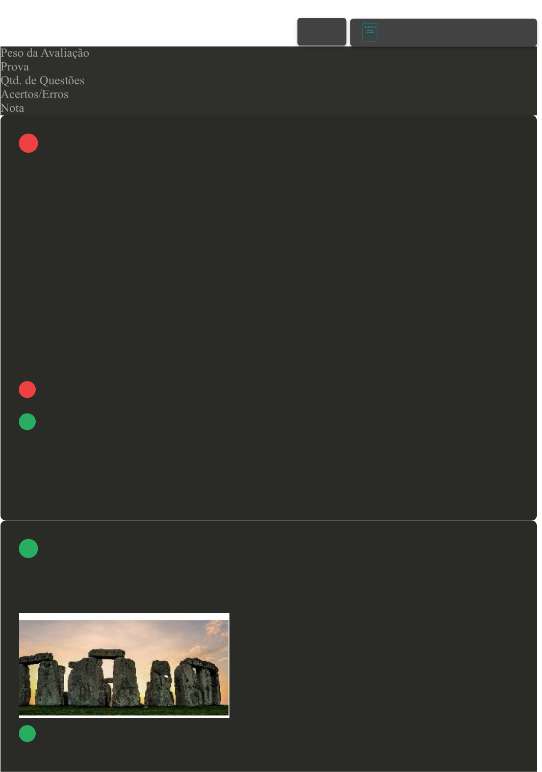 25/08/2023, 08:29 Avaliação I - Individual about:blank 1/5 Prova Impressa GABARITO | Avaliação I - Individual (Cod.:888822) Peso da Avaliação 1,50 Prova 67915656 Qtd. de Questões 10 Acertos/Erros 8/2 Nota 8,00 Uma das civilizações que apresentam nos dias de hoje ares de mistério é a egípcia, com relação às construções, à mumificação e ao ritual de morte. São questões que viraram temas de pesquisas científicas para estudar as práticas ditas culturais deste país. Com relação às solidificadas construções e sua conectividade com a arte, associe os itens, utilizando o código a seguir: I- Construções faraônicas. II- Construções e sua relação com a arte. ( ) Característica marcante é o formato triangular realizado em pedra com marco para três construções nesse estilo, Quéops, Quéfren e Miquerinos, consideradas uma das 7 maravilhas do mundo antigo. ( ) Muitas esculturas eram acopladas nos túmulos, como forma de servir aos faraós, e as poses faziam relação à hierarquia do faraó. ( ) Sobre os túmulos eram realizadas a parte pictórica, de forma chapada e com acontecimentos do cotidiano do povo. Agora, assinale a alternativa que apresenta a sequência CORRETA: A II - II - I. B I - II - II. C II - I - II. D I - II - I. No período Neolítico surgiu uma arquitetura colossal de ernormes pedras erguidas, conhecidas como dólmens. Alguns destes dólmens eram construídos em cromoleques, dispostos em círculos. O cromoleque mais conhecido fica na Inglaterra e é chamado de: FONTE DA IMAGEM: Disponível em: . Acesso em: 15 ago. 2017. A Stonehenge. B VOLTAR A+ Alterar modo de visualização 1 2 25/08/2023, 08:29 Avaliação I - Individual about:blank 2/5 Stonehouse. C Stonebridge. D Stonebang. Os persas foram uma civilização que se fixou numa região no leste da Mesopotâmia. Adotaram um eficiente sistema de comunicação e administração. O império era dividido em satrapias, o mesmo que estados, sendo cada satrapia era governada por um sátrapa e fiscalizada por fiscais, que eram nomeados representantes do rei. Na arte, destacaram-se em vários aspectos. Sobre a arte persa, analise as sentenças a seguir: I- A arte e a arquitetura persa é dominada pela influência dos romanos. II- Os tapetes se destacam na arte persa. III- A arquitetura é enriquecida com pintura e escultura. IV- Os persas dominaram o comércio mediterrâneo após conquistar os turcos. Agora, assinale a alternativa CORRETA: A As sentenças II e III estão corretas. B As sentenças I, II e IV estão corretas. C Somente a sentença IV está correta. D Somente a sentença I está correta. A história da arquitetura está ligada à arte. Na civilização egípcia o foco estava no tamanho dos templos, tendo como riqueza esculturas acopladas a elas para representar o poder dos faraós. O pensamento dos gregos era o inverso, as construções eram ricas em detalhes representadas por colunas que marcaram a civilização por suas volutas ou até esculturas femininas, que embelezavam e delicadamente pareciam segurar a estrutura. Com o passar dos anos, com mudanças históricas, econômicas e sociais a sociedade vem se aprimorando e o trabalho começa a ser terceirizado, profissionais eram convidados a trabalhar em outros países, como ocorreu com arquitetos gregos convidados a irem para Roma/Itália realizarem construções. Sobre a arquitetura que marcou a arte Romana, analise as sentenças a seguir: I- As construções romanas tinham que ser práticas, ou seja, serem funcionais para a sociedade, como o aqueduto. II- Uma das arquiteturas mais famosas da Itália, o Coliseu, abrigou diversos públicos para apreciarem as lutas. Uma das características que marcaram a arte grega nesta construção cabe aos arcos e colunas. III- O Coliseu, sendo um marco turístico, esteve fechado, pois apresentava fragilidades na estrutura, assim, resolveram construir outro coliseu com novos materiais, para manter-se como uma das sete maravilhas do mundo. IV- O pensamento e execução das arquiteturas com funcionalidade prática foram um marco na Europa, e o continente africano procurou adaptar para suas necessidades o aqueduto par auxiliar na irrigação contante de suas plantações. Agora, assinale a alternativa CORRETA: 3 4 25/08/2023, 08:29 Avaliação I - Individual about:blank 3/5 A Somente a afirmativa II está correta. B As afirmativas I e II estão corretas. C As afirmativas II e IV estão corretas. D Somente a afirmativa III está correta. O Renascimento foi um período da história da arte repleto de características específicas e também de conquistas que marcaram fortemente a humanidade em todas as áreas de conhecimento e desenvolvimento. Assim, analise as sentenças a seguir: I- No Renascimento, a arte passa a ser menos influenciada pela Igreja Católica, surgindo certa autonomia na escolha dos temas, principalmente ligados à natureza humana. II- Mesmo com tantas conquistas, o homem renascentista ainda é orientado pela emoção. III- O individualismo é marca do Renascimento. IV- A natureza foi fonte de inspiração e observação dos artistas renascentistas. Agora, assinale a alternativa CORRETA: A As sentenças I e II estão corretas. B As sentenças I, II e IV estão corretas. C Somente a sentença IV está correta. D As sentenças I, III e IV estão corretas. A linguagem escultórica é proveniente desde a Pré-História, porém, a forma de representação foi evoluindo com o passar dos tempos, além de, fazer parte da cultura de determinados povos como na Grécia. Para os gregos, a escultura era um desafio, pois procuravam fazer o mais próximo do real, ou seja, o mais natural possível e em tamanhos naturais. Com enfoque nos temas das esculturas gregas, analise as seguintes sentenças: I- Figuras com temáticas femininas eram esculpidas com vestimenta. II- Os gregos realizaram esculturas diversas, como por exemplo, a obra Discóbolo, que é a figura de um homem com o disco na mão. III- A