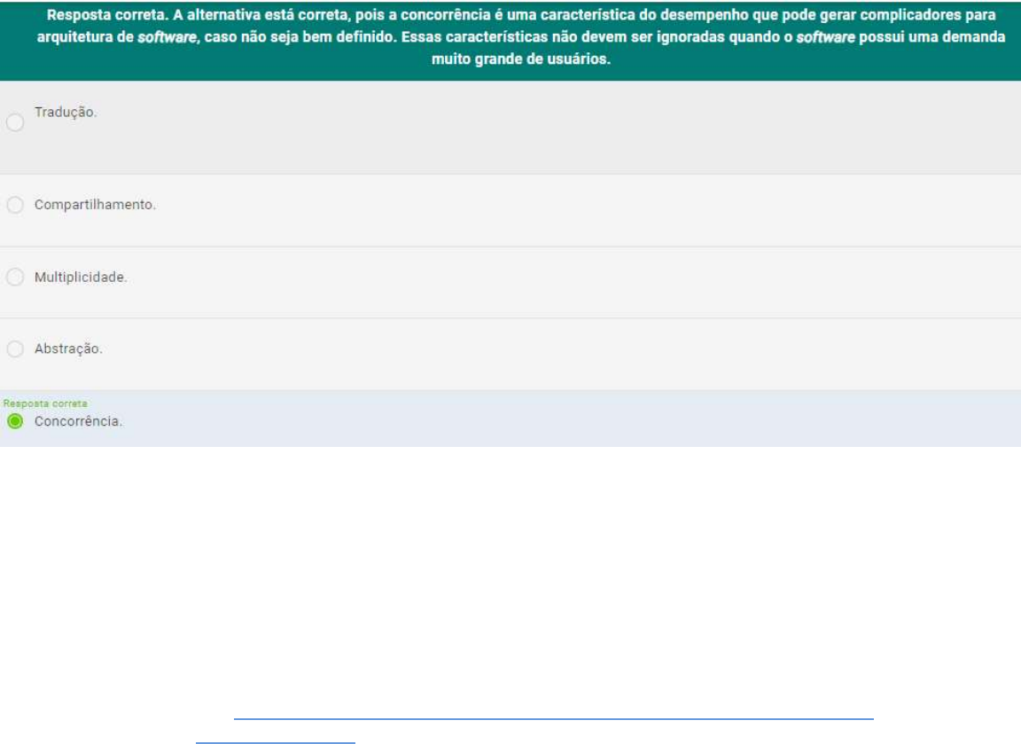Atividade - 4ARQUITETURA DE SOFTWARE 1- A grande maioria dos sistemas de porte maior, atualmente, é distribuída. Um sistema distribuído permite o compartilhamento de recursos de hardware e software. Em um sistema distribuído, vários processos podem operar simultaneamente em computadores separados na rede. Neste contexto, como é conhecido esse tipo de característica? 2- Para Fortes (2007), uma subárea da Engenharia de Software está ganhando bastante força. Tem como principal característica o projeto arquitetural, que é gerado como artefato de saída uma arquitetura web e em que devem ser atendidos os requisitos de alto grau de interação, uma distribuição em locais fisicamente distintos e a necessidade de disponibilização contínua e rápida das aplicações. JÚNIOR, E. A. O.; FORTES, R. P. M. Arquitetura de software na web atual: processamento no servidor. Disponível em: http://conteudo.icmc.usp.br/CMS/Arquivos/arquivos_enviados/BIBLIOTEC A_113_ND_78.pdf. Acesso em: 21 jan. 2020. Nesse contexto, assinale a alternativa que apresenta o nome dado a essa subárea. 3- O open source é um modelo de software livre. Uma abordagem na qual o código-fonte é público, e voluntários são convidados a participar do seu processo de desenvolvimento. Esse tipo de padrão define que o código-fonte não deve ser proprietário, e sim estar disponível para que os usuários o analisem e o modifiquem, conforme suas necessidades. Nesse contexto, o que acontece se o desenvolvimento do sistema for direcionado a um conjunto específico de requisitos organizacionais? 4- A arquitetura distribuída desacopla as regras de negócios (que estão na camada de modelo) das regras de apresentação (localizadas na camada de visão e controle). Esse tipo de arquitetura é utilizado em cenários nos quais existem vários subsistemas e que devem ser controlados de maneira independente. Um tipo atual desse modelo de arquitetura é conhecido como microsserviços. No contexto do deploy, qual a característica mais importante desse tipo de arquitetura? 5- A princípio, os sistemas distribuídos podem ser ajustados, assim, os recursos do sistema podem ser aumentados pela adição de novos recursos para fazer face às novas exigências do sistema. Além disso, novos recursos podem ser adicionados sem a necessidade de parada. Neste contexto, como é conhecida essa característica? 6- Há um modelo de arquitetura na qual existe uma organização que é realizada em camadas, sendo cada uma implantada em um servidor lógico de forma separada. Isso permite uma melhor implementação e manutenção do software criado. Além disso, esse tipo de organização permite um melhor escalonamento, quando necessário, da aplicação de software construída. Nesse contexto, qual o nome dado a esse modelo arquitetural? 7- Neste tipo de arquitetura, diferentes camadas são processadas separadamente, podendo ser executadas em processadores distintos. O modelo cliente-servidor de três camadas pode ser estendido para um modelo em multicamadas, em que os servidores adicionais são adicionados ao sistema. Assinale a afirmativa que contém o nome dado a esse tipo de arquitetura: 8- Deve ser possível adicionar mais recursos a um sistema para lidar com um número crescente de usuários. Existe uma distinção entre escalamento vertical e escalamento horizontal. Escalamento vertical significa a substituição de recursos no sistema por recursos mais poderosos. Escalamento horizontal significa adicionar recursos ao sistema. Nesse caso, como é conhecida a característica que representa a quantidade de recursos que podem ser adicionados vertical ou horizontalmente a uma arquitetura? 9- Segundo Sommerville (2011), os sistemas distribuídos precisam ser organizados para encontrar um equilíbrio entre as características de desempenho, confiança, proteção e capacidade de gerenciamento. Nesse contexto, há um padrão de arquitetura que geralmente é utilizado para sistemas em tempo real com processadores separados atrelados à obtenção de dados do ambiente do sistema. SOMMERVILLE, I. Engenharia de Software. 9. ed. São Paulo: Pearson Prentice Hall, 2011. p.114. Dessa forma, assinale a alternativa que corresponde à opção correta em termos de arquitetura que corresponde a um servidor principal e os demais secundários: 10- Um padrão é usado quando dados precisam ser transformados de uma representação para outra antes que possam ser processados. A transformação é implementada como uma sequência de etapas de processamento que podem ser realizadas concorrentemente. Isso permite o processamento de dados muito rapidamente, porque um núcleo separado ou um processador pode executar cada transformação. Assinale a alternativa que corresponde a como esse padrão é conhecido: