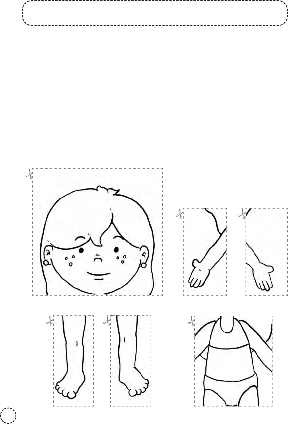 Nome: ________________________________________ Data: ____ /____ /____ 60 MONTANDO O CORPO HUMANO 1. RECORTE AS FIGURAS ABAIXO E MONTE-AS SOBRE A CARTEIRA, FORMANDO O CORPO DE UMA MENINA. 2. ORGANIZE A FIGURA, JUNTANDO TODAS AS PARTES ATÉ QUE O CORPO FIQUE COMPLETO. 3. QUANDO A FIGURA ESTIVER MONTADA E VOCÊ TIVER CERTEZA DE QUE MONTOU O CORPO CORRETAMENTE, COLE-A NO CADERNO. Ativ_Ciencias_1o ano.indd 60Ativ_Ciencias_1o ano.indd 60 20/03/20 15:3920/03/20 15:39