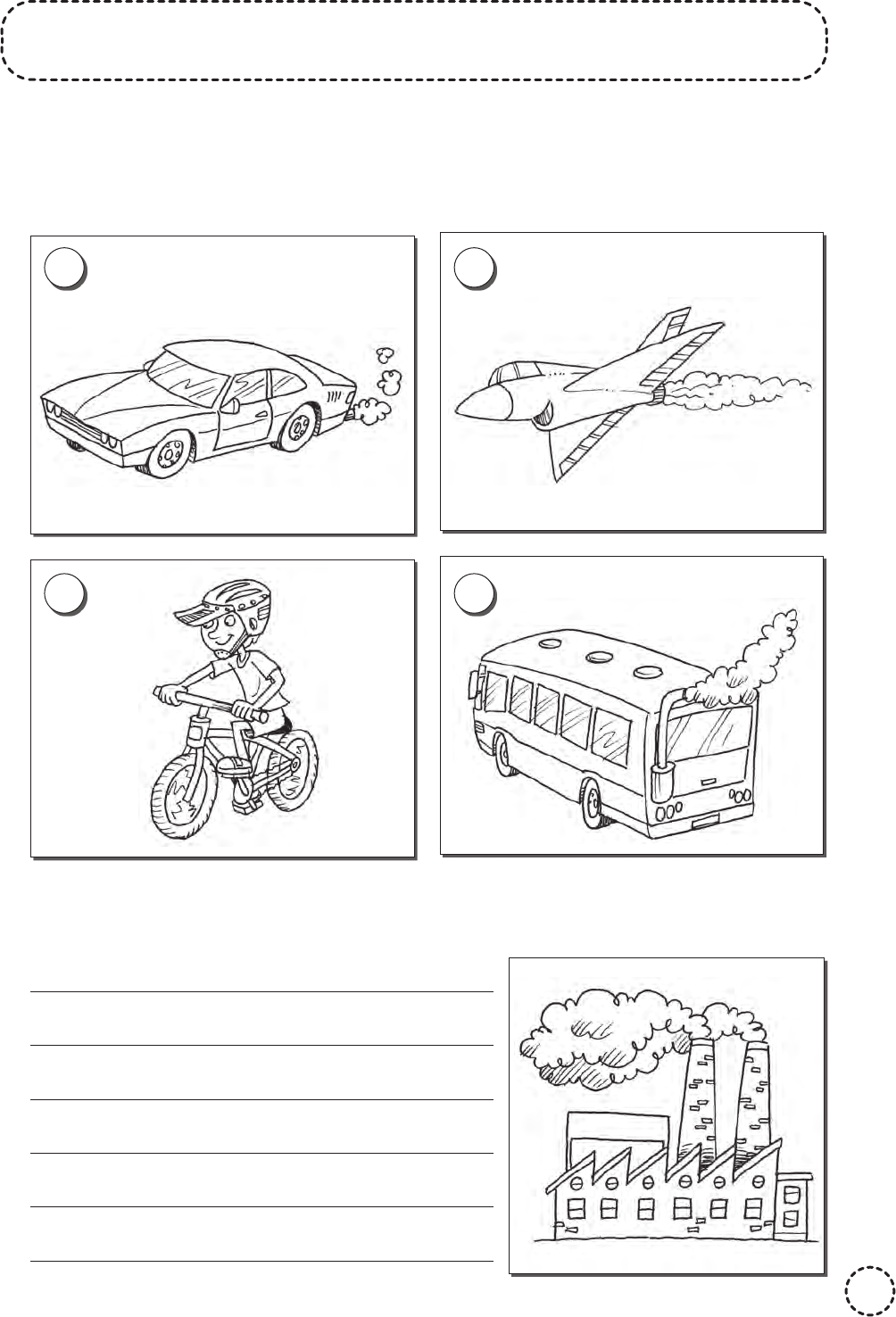 Nome: ________________________________________ Data: ____ /____ /____ 93 POLUIÇÃO DO AR 1. PINTE O MEIO DE TRANSPORTE QUE NÃO POLUI O AR. A C B D 2. NESTA CENA OCORRE POLUIÇÃO DO AR? EXPLIQUE. Ativ_Ciencias_1o ano.indd 93Ativ_Ciencias_1o ano.indd 93 20/03/20 15:4020/03/20 15:40