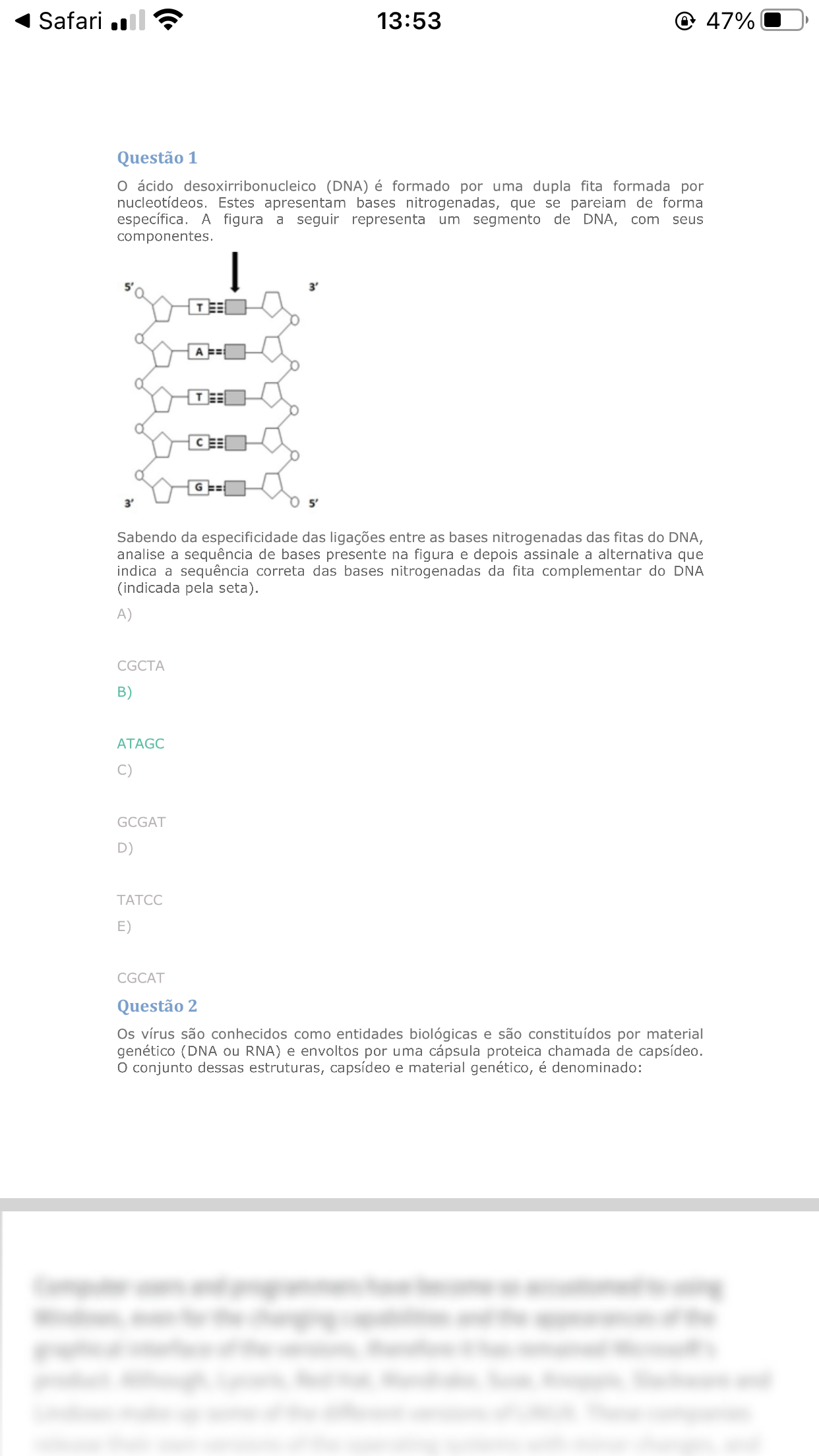Questão 2: Os vírus são conhecidos como entidades biológicas e são constituídos por material genético (DNA ou RNA) e envoltos por uma cápsula proteica chamada de conjunto dessas estruturas, e material genético, é denominado: