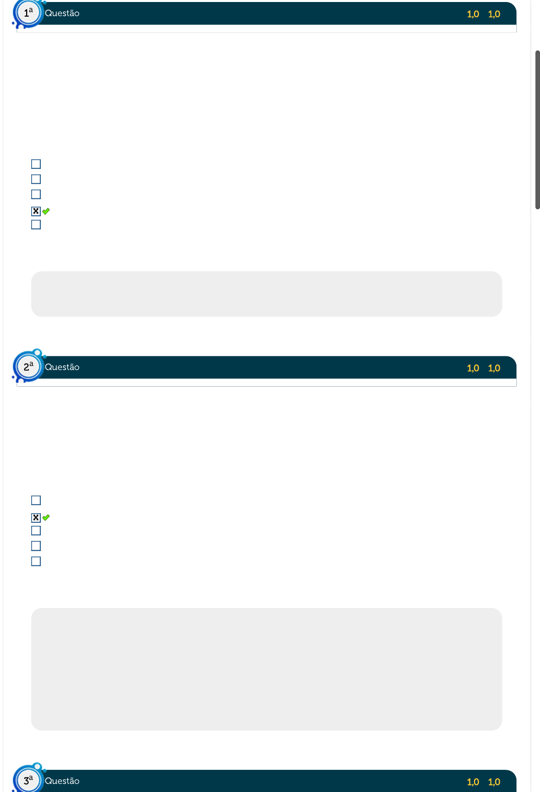 28/08/2023, 13:56 Estácio: Alunos https://aulapos.estacio.br/alunos/ 1/1 Acerto: 1,0 / 1,0 A respeito do termo "Compliance", fazemos as seguintes a�rmações: I - O termo ¿compliance¿ signi�ca cumprimento/obediência; II - O termo ¿compliance¿ está intimamente ligado à implementação e cumprimento de valores éticos e morais; III - O termo ¿compliance¿ se insere no contexto da construção e respeito à ética nas relações privadas entre empresas e na relação destas com os órgãos governamentais. É certo dizer que: Somente a assertiva III está correta. Somente a assertiva II está correta. Somente a assertiva I está correta. Todas as assertivas estão corretas. Todas as assertivas estão erradas. Respondido em 26/08/2023 14:44:13 Explicação: Como vimos na aula 1, todas as assertivas dizem respeito ao tema "compliance" Acerto: 1,0 / 1,0 Selecione Verdadeiro [V] ou FALSO [F] para as assertivas abaixo: A - O compliance é obrigatório, segundo a Lei Anticorrupção B - O compliance não visa apenas evitar ilícitos previstos na Lei Anticorrupção C - A Segundo a Lei Anticorrupção, a inexistência de um programa de Compliance não é um ilícito. D - Os benefícios do Compliance vão muito além, servindo, inclusive, de um poderoso instrumento de gerenciamento de riscos. E- A Lei Anticorrupção apenas recomenda e concede benefícios às empresas que o possuem Estão corretas apenas as assertivas D , E Estão corretas apenas as assertivas B , C , D , E Estão corretas apenas as assertivas A, C , E Todas as assertivas estão corretas Estão corretas apenas as assertivas A , C Respondido em 26/08/2023 14:44:56 Explicação: A - O compliance é obrigatório, segundo a Lei Anticorrupção [Falso] B - O compliance não visa apenas evitar ilícitos previstos na Lei Anticorrupção [Verdadeiro] C - A Segundo a Lei Anticorrupção, a inexistência de um programa de Compliance não é um ilícito. [Verdadeiro] D - Os benefícios do Compliance vão muito além, servindo, inclusive, de um poderoso instrumento de gerenciamento de riscos [Verdadeiro] E- A Lei Anticorrupção apenas recomenda e concede benefícios às empresas que opossuem [Verdadeiro] Acerto: 1,0 / 1,0 Questão1 a Questão2 a Questão3 a