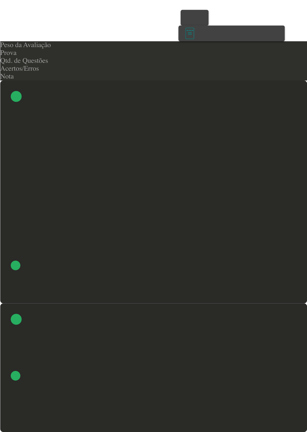 28/08/2023, 19:11 Avaliação Final (Objetiva) - Individual about:blank 1/6 Prova Impressa GABARITO | Avaliação Final (Objetiva) - Individual (Cod.:668797) Peso da Avaliação 3,00 Prova 33753575 Qtd. de Questões 12 Acertos/Erros 12/0 Nota 10,00 A transmissão de dados entre as unidades de armazenamento e a CPU é realizada através dos barramentos de dados. Atualmente, existem diversas tecnologias, como, por exemplo, ATA, SCSI, SATA, entre outras, que possibilitam essa comunicação. Com base nestas tecnologias, analise as sentenças a seguir: I- SATA é um barramento serial, por meio do qual se transmite um único bit por vez em cada sentido. Nesse processo, são eliminados problemas de sincronização e interferência encontrados nas interfaces paralelas. II- O padrão ATA permite a troca do disco rígido sem a necessidade de desligar o computador. Recurso muito utilizado na manutenção de servidores que não podem parar de funcionar. III- No barramento SCSI, existem transmissões assíncronas e síncronas. Enquanto o primeiro permite o envio e o recebimento dos dados de forma paralela, o segundo trabalhará de forma serial. IV- Com o objetivo de definir qual o disco rígido máster (primário) ou slave (secundário) no padrão SATA, o usuário poderá fazer uso dos jumpers. Assinale a alternativa CORRETA: A As sentenças I, III e IV estão corretas. B As sentenças II e IV estão corretas. C Somente a sentença I está correta. D As sentenças II e III estão corretas. A memória é um dos principais dispositivos encontrados na arquitetura computacional, que possibilita ao computador guardar os dados de forma temporária ou permanente. O computador possui diversos tipos de memórias, desde as memórias internas do processador até as externas. Com relação à memória cache, assinale a alternativa CORRETA: A Armazena a maioria do conteúdo da memória RAM. B O processador busca os dados e instruções desta memória. C É uma memória localizada na placa-mãe. D Possibilita o armazenamento de dados de forma permanente. VOLTAR A+ Alterar modo de visualização 1 2 28/08/2023, 19:11 Avaliação Final (Objetiva) - Individual about:blank 2/6 O disco rígido, responsável pelo armazenamento das informações não voláteis, é constituído por componentes mecânicos, eletrônicos e lógicos, em que se pode listar fisicamente o disco, o atuador, o braço de leitura, as cabeças de leitura e o conector. Nos componentes lógicos, temos o cilindro, os setores, a trilha e os clusters. Acerca dos componentes listados, classifique V para as sentenças verdadeiras e F para as falsas: ( ) O atuador é o responsável por realizar a movimentação do braço de leitura em busca das informações que se encontram armazenadas no disco. ( ) O conector atua como responsável pela comunicação do disco rígido com a placa-mãe, recebendo e transmitindo as informações. Este conector pode ser do padrão ATA, SCSI ou SATA. ( ) As trilhas correspondem ao local que o sistema operacional usará para realizar a leitura e gravação dos dados. ( ) As trilhas são divididas em setores com 1024 bytes cada. Assim, os setores são os menores grupos de dados que podem ser lidos ou escritos em um disco. ( ) A cabeça de leitura tem a única e exclusiva função de realizar a leitura dos bits que se encontram no disco. Assinale a alternativa que apresenta a sequência CORRETA: A V - F - F - V - F. B F - V - V - V - V. C F - F - V - F - V. D V - V - F - F - F. O processador PowerPC, da IBM, equipou diversos equipamentos de mercado da própria IBM, da Apple e da Motorola. Sobre a arquitetura adotada nesse processador, assinale a alternativa CORRETA: A Arquitetura RISC. B Arquitetura CISC. C Arquitetura PIC. D Arquitetura MPIC. Para desenvolver os mais variados tipos de cálculos e processamento de informações foi criado o computador. Para permitir a realização de suas tarefas, ele é composto de diversas partes eletrônicas e eletromecânicas. Sobre o desenvolvimento das funções pelo computador, assinale a alternativa CORRETA: A As funções são executadas pelo computador por meio de sequências de comandos que são previamente armazenados no processador. B As funções são executadas pelo computador por meio de um conjunto de instruções que são enviadas diretamente ao processador e são executadas imediatamente. 3 4 5 28/08/2023, 19:11 Avaliação Final (Objetiva) - Individual about:blank 3/6 C As funções são executadas pelo computador por meio de sequências de instruções que são armazenadas diretamente no disco rígido. D As funções são executadas pelo computador por meio de sequências de instruções ou comandos que são armazenados na memória do computador. Os barramentos externos são responsáveis pela comunicação das diversas interfaces e periféricos de entrada e saída ligados à placa-mãe. Analise a imagem a seguri do bloco de conectores de uma placa-mãe e assinale a alternativa CORRETA que refere-se, respectivamente, aos pontos identificados por Porta 1 e Porta 3: FONTE: Adaptado de: . Acesso em: 29 jul. 2013. A USB e Serial. B PS/2 e Serial. C PCMCIA e Firewire. D PS/2 e Paralelo. A memória cache é um tipo de memória de alta velocidade instalada dentro do processador e com capacidade de acompanhar a velocidade de processamento do mesmo. No que tange à memória cache, classifique V para as sentenças verdadeiras e F para as falsas: ( ) O objetivo da memória cache é armazenar os dados e instruções que são comumente utilizados pelo processador. ( ) A cache L3 é considerada a cache de maior tamanho e encontra-se mais distante do núcleo do processador. ( ) O usuário poderá definir quais dados serão utilizados pela memória cache, aumentando de forma considerável o desempenho do processador, já que a memória cache não precisará adivinhar quais dados serão solicitados pelo processador. ( ) Quando a informação não se encontra na memória cache, o processador fa