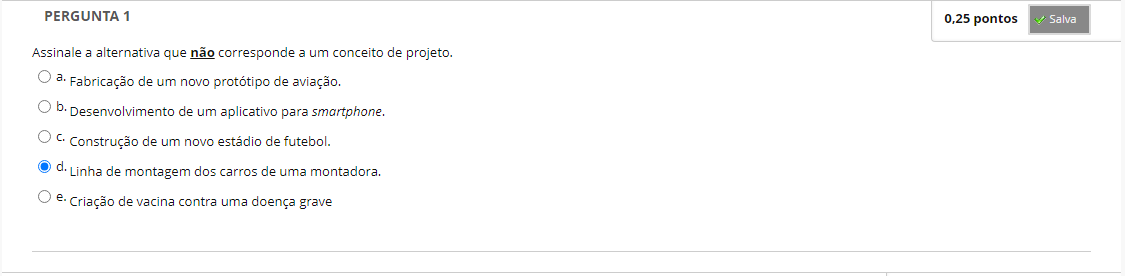 Salva Assinale a alternativa que não corresponde a um conceito de projeto.