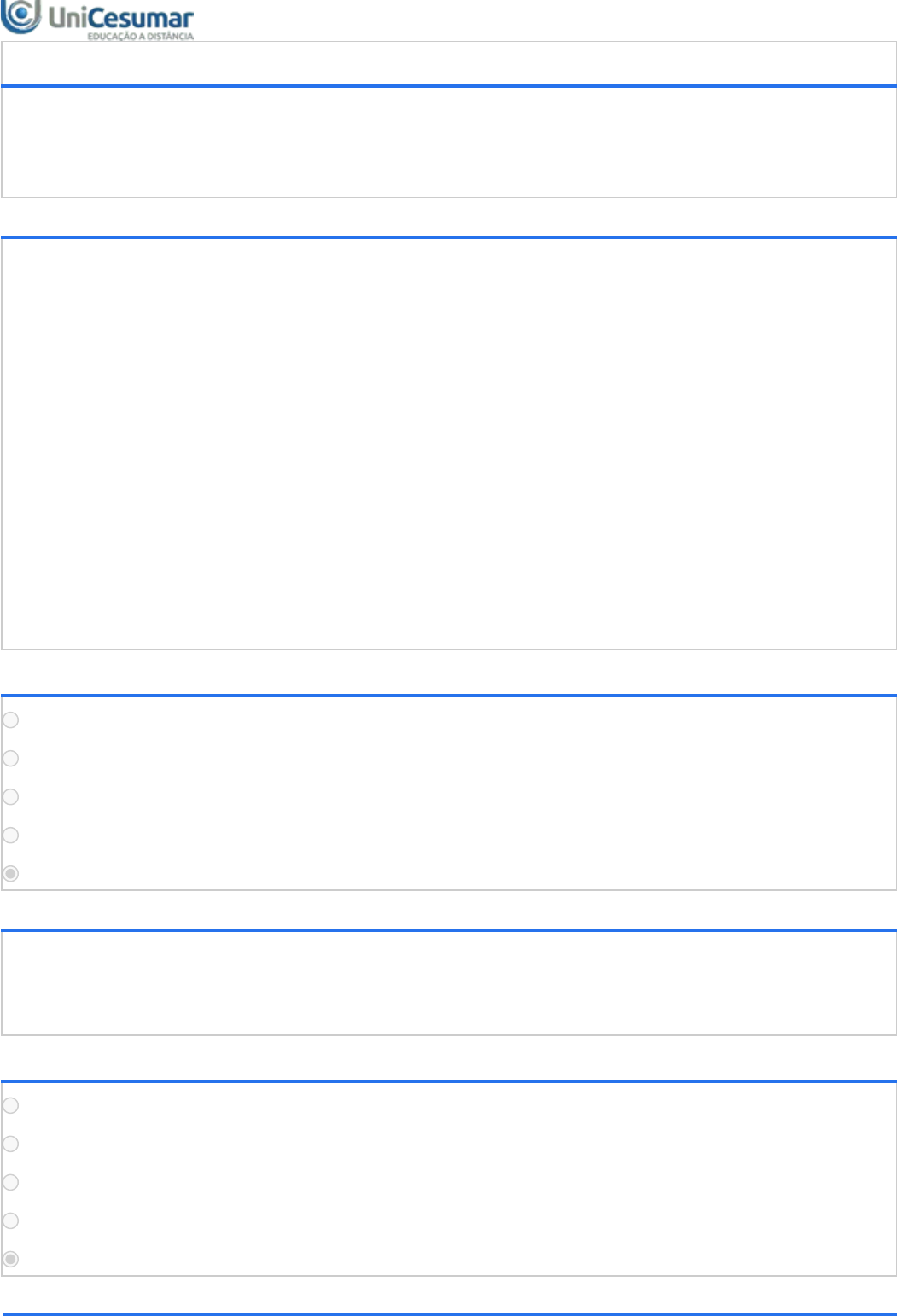 29/08/2023, 12:37 Unicesumar - Ensino a Distância about:blank 1/5 PROVA SUB - EDUCAÇÃO SOCIAL, PROCESSO INTERDISCIPLINAR E CONTEXTO MUNDIAL - 42/2023 Período:15/05/2023 08:00 a 20/05/2023 23:59 (Horário de Brasília) Status:ENCERRADO Nota máxima:10,00 Gabarito:Gabarito será liberado no dia 21/05/2023 00:00 (Horário de Brasília) Nota obtida:9,00 1ª QUESTÃO Conforme as discussões sobre o que seja a Educação Social e os atravessamentos que ela recebe, faz-se pertinente algumas teorizações sobre a plasticidade dos saberes e das noções de si das pessoas, como chama a atenção Bauman. Sobre esses processos de liquefação, leia os trechos a seguir: I - A noção de solidez é utilizada como metáfora para a definição de saberes que desejam ser fixos e universais. II - Bauman considera que a era líquida revela a mobilidade, a plasticidade tanto na sociedade como na própria noção de educação. III - A relação entre Educação Social e a ideia de plasticidade não ajuda como modo de compreensão social para se elaborar um projeto que atenderá um grupo marginalizado. IV - A cultura é o fator mais irrelevante na discussão de uma Pedagogia Social. Conforme as sentenças, marque a alternativa correta: ALTERNATIVAS Apenas I está correta. Apenas II está correta. Apenas I e IV estão corretas. Apenas II e III estão corretas. Apenas I e II estão corretas. 2ª QUESTÃO A multiplicidade do espaço, e toda sua diversidade colada e atravessada nele, conduz os modos da Educação Social a fim de tentar abarcar toda essa gama. Essa multiplicidade só é possível de ser abarcada segundo quais modelos exclusivamente? Selecione a única resposta: ALTERNATIVAS Modelos políticos. Modelos econômicos. Modelos pedagógicos. Modelos religiosos. Modelos científicos. 3ª QUESTÃO 29/08/2023, 12:37 Unicesumar - Ensino a Distância about:blank 2/5 Com base nas teorizações de Milton Santos que incidem na compreensão de cultura como oferta social, analise as assertivas a seguir: I. O autor entende que o modo representado pelo título: ?um modo que nos fazem crer: a globalização como fábula?, é uma perspectiva otimista de leitura do mundo; II. Ainda nesta perspectiva, o autor reconhece que existe uma máquina ideológica em funcionamento. Ainda assim, esta máquina tanto pode exercer o papel de manter um sistema perverso quanto o de fraturar seu próprio funcionamento; III. Ainda na perspectiva de globalização como fábula, persevera uma falsa noção de aproximação das pessoas pelas redes conquistadas pelos sucessos advindos dos sistemas eletroeletrônicos. Nessa leitura reconhece-se que, apesar de existirem no contemporâneo uma série de aparatos tecnológicos, estes não necessariamente aproximam verdadeiramente as pessoas, uma vez que existe um recorte de classe envolvendo esta questão; IV. Dentre uma das múltiplas características assumidas no mundo tal como ele poderia assumir em sua ? outra globalização?, caracteriza-se a enorme mistura de povos, raças, culturas, gostos, em todos os continentes. Assinale a(s) única(s) alternativa(s) que não corresponda(m) às ideias do autor: ALTERNATIVAS I, unicamente. II, unicamente. III, unicamente. I, II, III e IV não estão de acordo com nenhuma ideia do autor. I, II, III e IV estão de acordo com nenhuma ideia do autor. 4ª QUESTÃO Assim como Nietzsche, Foucault se interessou por compreender as relações de poder e como age no tecido social, por isso se voltou a investigar diversas instituições de controle a fim de compreender o sistema de poder e controle do Estado. Sobre poder e Foucault, leia as sentenças: I - O poder pode ser localizado e compreendido de modo a potencializar, diminuir, controlar e vigiar. II - Vigilância e punição são duas características (dispositivos) presentes de modo discreto na sociedade. III - O poder só se configura de modo efetivo quando está em um sistema de rede. IV - Para Foucault onde há poder há resistência. Assinale uma única resposta: ALTERNATIVAS 29/08/2023, 12:37 Unicesumar - Ensino a Distância about:blank 3/5 Somente III é falsa. I, II, III e IV são falsas. Somente II e III são falsas. Somente I é falsa. Somente II é falsa. 5ª QUESTÃO A educação considerada formal, ou seja, a que acontece nas instituições, está carregadas de elementos: a construção do edifício, laudos, exames, cadernetas, livros de chamada, enfim, recursos diversos para dizer do aluno. Esse modo de dizer do aluno pode ser descrito unicamente como: ALTERNATIVAS Modos de si. Exames propedêuticos. Controle normalizante. Conselho de classe. Sistema de avaliação seriada. 6ª QUESTÃO Com base nas noções introdutórias a respeito dos estudos de Tomaz Tadeu da Silva sobre o currículo, não está de acordo a seguinte assertiva: ALTERNATIVAS Pode-se entendê-lo em três modalidades diferentes de percepção, sendo elas: a das teorias tradicionais, a das teorias críticas e a das teorias pós-críticas. O sujeito educacional é um resultado complexo de forças que atuam por intermédio do currículo, segundo esse autor. Um dos critérios utilizados pelo autor na classificação dessas três tendências é a questão do poder. O poder não estará presente nas teorias tradicionais, que se pretendem teorias "neutras, científicas e desinteressadas" mas estará presente nas outras duas, empreendida em sentidos diferentes em cada uma delas. O currículo, no entendimento do autor, assegurará uma identidade duradoura ao sujeito da educação. 7ª QUESTÃO O conceito de tomada de consciência de si geraria nas pessoas, conforme Nietzsche, a reflexão de suas existências e urgências dentro de processo educativo. Esta afirmação se conecta necessariamente a qual aspecto a seguir? Marque uma única resposta: ALTERNATIVAS 29/08/2023, 12:37 Unicesumar - Ensino a Distância about:blank 4/5 Poder. Educação. Virtude. Vontade. Religião. 8ª QUESTÃO Os nomes ligados a uma linha de produção econô