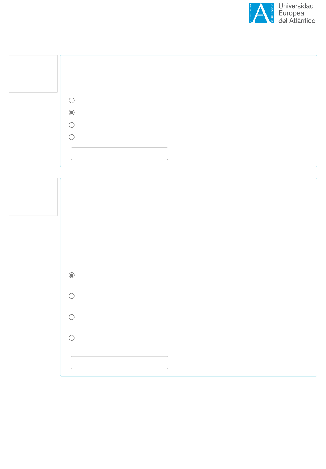 Página principal ► FPMME###2020-vEA-TFC ► FP077 ► Tópico 3 ► Exame Pergunta 1 Resposta salva Nota: 1,00 Pergunta 2 Resposta salva Nota: 1,00 Responda a seguinte pergunta selecionando a opção correta (há apenas uma): Qual ferramenta TIC você usaria com um estudante que tem uma leve deficiência visual? Selecione uma opção de resposta: a. Um digitalizador de voz. b. Ressaltadores de tela. c. Um mouse de queixo. d. Um microfone. Remover a resposta assinalada. Analise a seguinte situação educativa e assinale a opção que considere correta (há apenas uma): Juana, professora da disciplina de inglês do ensino médio (alunos de 14 anos) quer implementar o uso das TIC para promover o processo de aprendizagem dos alunos. Propõe então realizar uma Web Quest e um blog de forma colaborativa. Para poder avançar em suas intenções, quais seriam os dois primeiros passos que ela deveria dar? Selecione uma opção de resposta: a. Conhecer as necessidades de aprendizagem do grupo e suas experiências com dispositivos tecnológicos. b. Conhecer os tipos de uso e analisar as ferramentas TIC que possui à sua disposição. c. Averiguar se a escola tem orçamento para comprar computadores e informar aos pais. d. Observar qual tipo de ferramentas TICs se usa para ensinar inglês e propor uma melhora destas ferramentas à direção. Remover a resposta assinalada. https://campus2.funiber.org/ https://campus2.funiber.org/course/view.php?id=4998 https://campus2.funiber.org/course/view.php?id=3092 https://campus2.funiber.org/course/view.php?id=3092#section-3 https://campus2.funiber.org/mod/quiz/view.php?id=154347 Pergunta 3 Resposta salva Nota: 1,00 Pergunta 4 Resposta salva Nota: 1,00 Pergunta 5 Resposta salva Nota: 1,00 Termine a seguinte frase selecionando a opção correta: A metodologia TPACK é: Selecione uma opção de resposta: a. Um modelo que integra as três dimensões principais da aprendizagem. b. Uma teoria que desenvolve três enfoques sobre a aprendizagem tecnológica. c. Um método de aprendizagem eficaz para os estudantes. d. Um pack completo para a melhoria das competências digitais dos docentes. Remover a resposta assinalada. Termine a seguinte frase selecionando a opção correta: Uma tela digital em uma aula é um recurso motivador para o estudante: Selecione uma opção de resposta: a. Pois projeta imagens de boa qualidade. b. Pois é usada para ver filmes. c. Pois podemos conectar a tela digital com dispositivos portáteis facilmente manipuláveis pelos estudantes. d. Pois tem som de qualidade. Remover a resposta assinalada. Quanto aos principais formatos empregados para a expressão criativa da informação, relacione os elementos da coluna da esquerda com as opções da lista apresentada. Tem a ver com capturar, manipular e editar imagens. O formato fotográfico Com o avanço da Web 2.0, foram multiplicadas as possibilidades deste formato, sobretudo na produção de podcast. O formato sonoro Fomenta nos docentes o desenvolvimento da competência da habilidade de armazenamento e recuperação da informação. O formato audiovisual Fomenta a expressão escrita criativa e apoia sua compreensão. O formato textual Com o apoio das TACs, permite incrementar a autonomia dos estudantes ao mesmo tempo que contribui ao desenvolvimento da atenção à diversidade dos alunos. O formato multimídia Pergunta 6 Resposta salva Nota: 1,00 Pergunta 7 Resposta salva Nota: 1,00 Pergunta 8 Resposta salva Nota: 1,00 Termine a seguinte frase selecionando a opção correta: Para o conjunto de artigos, posts, comentários e publicações que deixamos na Internet, além do que compartilhamos e o que publicam quanto a nós mesmos, podemos chamar: Selecione uma opção de resposta: a. Facebook. b. Impressão digital. c. Instagram. d. Nenhuma das anteriores. Remover a resposta assinalada. Termine a seguinte frase selecionando a opção correta: Educar aos estudantes na criatividade graças às TICs significa: Selecione uma opção de resposta: a. Permitir que os estudantes aprendam sozinhos. b. Oferecer aos estudantes diferentes linguagens para poder expressar suas ideias. c. Ser diretivos. d. Deixar de contextualizar os conhecimentos para se voltar para atitudes universais. Remover a resposta assinalada. Assinale se são falsas ou verdadeiras as seguintes afirmações sobre as Tecnologias da Aprendizagem e do Conhecimento: A habilidade para acessar à informação é uma competência que deve ser trabalhada na aula. VERDADEIRA É tarefa do professor trabalhar o modo como encontrar informações na rede. VERDADEIRA Toda a informação encontrada na rede por ser usada sem critério nem seleção FALSA A melhor maneira de encontrar informação na rede é buscar livremente, sem se forcar no conteúdo buscado. FALSA Para realizar um bom uso da internet é fundamental conhecer e manejar programas, buscadores, bibliotecas e bases de dados. VERDADEIRA Pergunta 9 Resposta salva Nota: 1,00 Pergunta 10 Resposta salva Nota: 1,00 Analise a seguinte situação educativa e marque a opção que considere correta (há apenas uma): Ao planejar uma unidade didática sobre o texto informativo com um grupo de ensino secundário, Carmen, uma professora de espanhol, reflete sobre quais recursos usar para tornar a aula atraente e os alunos para entender o conteúdo de forma contextualizada. Para isso, além de uma apresentação oral sobre o assunto, gostaria de ensiná-los a produzir este tipo de texto de forma dinâmica, cooperativa e autônoma, com o objetivo de que possam aplicá-lo nas elaborações textuais que enfrentam diariamente, tanto em ambientes formais como informais. Nesse sentido, Carmen também está preocupada em desenvolver em seus alunos: Selecione uma opção de resposta: a. As impressões digitais. b. As competências digitais. c. Os papeis docentes na sociedade digital. d. Os papeis docentes na sociedade pré-digital. Remover a resposta assinalada. Responda a seguinte pregunta selecionando a 