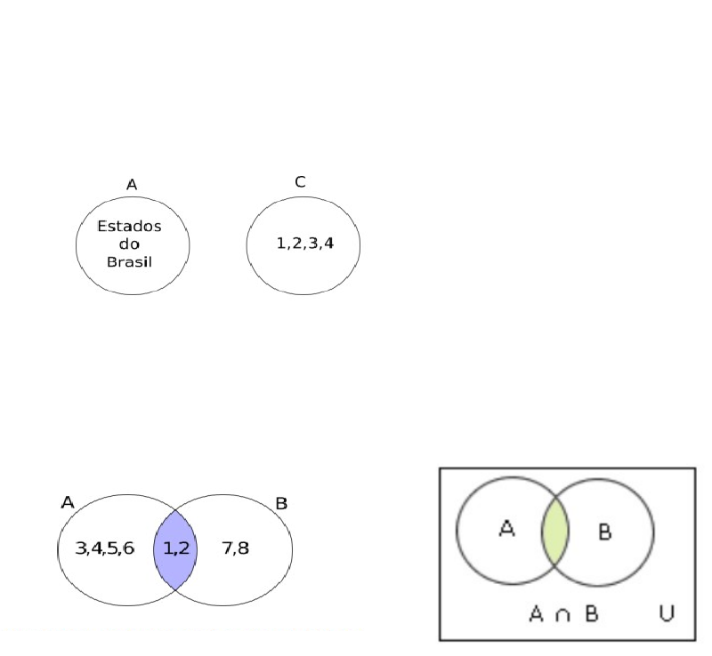 A vantagem de usar diagramas de Venn é que eles tornam muito mais fácil entender as relações entre conjuntos distintos. Por exemplo, se quisermos ressaltar que 1 e 2 são elementos de ambos os conjuntos A = {1, 2, 3, 4, 5, 6} e B = {1, 2, 7, 8}.