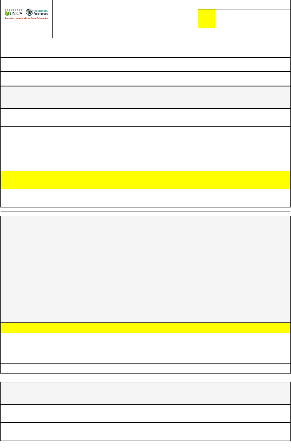 Pincel Atômico - 04/09/2023 14:36:03 1/3 ELAINE DE SOUSA MOURA Exercício Caminho do Conhecimento - Etapa 10 (23077) Atividade finalizada em 22/11/2022 15:04:53 (569724 / 2) LEGENDA Resposta correta na questão # Resposta correta - Questão Anulada X Resposta selecionada pelo Aluno Disciplina: BASE NACIONAL COMUM CURRICULAR(BNCC): HISTÓRIA, CONCEPÇÃO, POLÍTICA E REFERENCIAIS PEDAGÓGICOS [528288] - Avaliação com 8 questões, com o peso total de 3,33 pontos [capítulos - 5] Turma: Segunda Graduação: Segunda Graduação 6 meses - Licenciatura em Pedagogia - Grupo: FPD-FEV2022 - SGegu0A041122 [76372] Aluno(a): 91373854 - ELAINE DE SOUSA MOURA - Respondeu 5 questões corretas, obtendo um total de 2,08 pontos como nota [359879_1522 55] Questão 001 Sobre os Parâmetros Curriculares Nacionais – PCNs, assinale a alternativa correta. É um documento referencial, criado em 1997, que orienta as decisões relacionadas à elaboração dos currículos regionais para a educação no Ensino Infantil. Os documentos referentes aos PCNs são divididos em volumes para facilitar o desenvolvimento dos trabalhos dos coordenadores pedagógicos e diretores de escolas que os utilizam e abordam as áreas de conhecimento da tecnologia. Os PCNs buscam auxiliar os alunos socializando questões que buscam a potencialização da aprendizagem e de forma ampla, a melhoria da educação escolar. X É um documento referencial, criado em 1997, que orienta as decisões relacionadas à elaboração dos currículos regionais para a educação no Ensino Fundamental. Os PCNs buscam auxiliar as famílias socializando questões que buscam a potencialização da aprendizagem e de forma ampla, a melhoria da educação escolar. [359879_1527 89] Questão 002 (CONSULPLAN – 2010 adaptada). Os Parâmetros Curriculares Nacionais - PCN’s foram criados para auxiliar os docentes na reflexão e discussão da prática pedagógica cotidiana que deverão transformar continuamente, atendendo as particularidades de cada região e escola. Nesse sentido, analise as afirmativas a respeito das possibilidades de ações: I. Contribuir com as discussões de temas educacionais com pais e responsáveis. II. Refletir sobre a prática educativa, observando a coerência com os objetivos propostos no PPP. III. Rever objetivos, conteúdos, expectativas de aprendizagens, método de avaliação entre outros, durante todo o processo educativo. IV. Identificar e utilizar materiais que possibilitem contextos para aprendizagens mais significativas. Estão corretas as afirmativas Todas estão corretas. I e III, apenas. III e IV, apenas. X II e IV, apenas. I e II, apenas. [359879_1527 96] Questão 003 O Estatuto da Criança e do Adolescente – ECA, tem como objetivo fundamental: Promover a educação especial e continuada para crianças e adolescentes para que elas sejam inseridas no mercado de trabalho. Educar e orientar as crianças e adolescentes tornando-as aptas para a convivência no meio escolar, social e mercado de trabalho. Pincel Atômico - 04/09/2023 14:36:03 2/3 X Tratar de assuntos relacionados aos direitos e segurança da criança e adolescente diante do ambiente familiar e convívio social. Contribuir na resolução de problemas de todas as famílias que passam por dificuldades com crianças e adolescentes. Colaborar com a elaboração do currículo escolar das crianças e adolescentes. [359881_1522 71] Questão 004 Considerando esse contexto, avalie as seguintes asserções e a relação proposta entre elas. I. A BNCC é um documento norteador para a elaboração dos currículos da educação superior, tanto para as instituições públicas quanto para as instituições privadas de todo o território nacional. A BNCC foi elaborada com base nas Diretrizes Curriculares – DCNs e nos Parâmetros Curriculares Nacionais – PCNs PORQUE II. no documento da BNCC, são descritas de forma clara e objetiva, as aprendizagens essenciais que devem ser desenvolvidas no ensino superior. A respeito dessas asserções, assinale a opção correta. A asserção I é uma proposição verdadeira, e a II é uma proposição falsa. As asserções I e II são proposições verdadeiras, mas a II não é uma justificativa da I. As asserções I e II são proposições verdadeiras, e a II é uma justificativa da I. X As asserções I e II são proposições falsas. A asserção I é uma proposição falsa, e a II é uma proposição verdadeira. [359879_1527 91] Questão 005 Analise as afirmativas a seguir e aponte qual delas expressa uma definição crítica em relação a Base Nacional Comum Curricular (BNCC): Trata-se de documento norteador para a elaboração dos currículos da educação básica, tanto para as instituições públicas quanto para as instituições privadas de todo o território nacional. Trata-se de uma padronização dos conteúdos curriculares da educação básica. Trata-se de uma proposta nacional que auxilia o professor na sua prática pedagógica, na elaboração das avaliações e no desenvolvimento cultural e científico da comunidade escolar. Trata-se de uma proposta de elaboração de currículo de toda a rede pública do ensino na educação básica, para que a educação escolar tenha a mesma qualidade em todo o país X Trata-se de uma proposta de organização da educação básica, já que a mesma não conta com nenhuma diretriz que oriente as escolas para a elaboração de seus currículos e práticas educativas. [359879_1527 94] Questão 006 O Estatuto da Criança e do Adolescente – ECA, foi criado em 1990, através da Lei nº 8.069 em de 13 de julho e “dispõe sobre a proteção integral à criança e ao adolescente” (art. 1º ECA, 1990). No ECA, considera-se crianças: A pessoa com idade de zero até nove anos incompletos. X A pessoa com idade de zero até doze anos incompletos. A pessoa com idade de três até doze anos incompletos. A pessoa com idade de zero até oito anos incompletos. A pessoa com idade de zero at