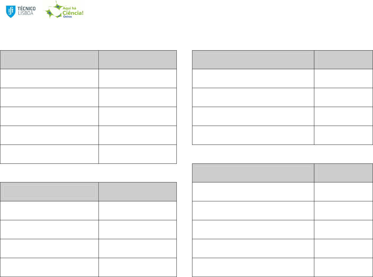 Vamos brincar aos Materiais Arquimedes visita a escola Tabela de Densidades Metais Densidade (g/cm3) Vidros e Cerâmicos Densidade (g/cm3) • Aço 7,7 – 7,9 • Vidro de Chumbo - Cristal 2,8 – 2,9 • Aço inoxidável 7.9 – 8.1 • Cordierite 2,0 – 2,2 • Aço com Tungsténio 7,9 • Vidro de Borossilicato Pyrex - Duran 2,1 – 2,3 • Alumínios 2,6 – 2,9 • Vidro de soda - tipo janela 2,4 – 2,6 • Titânios 4,4 – 4,9 Madeiras e cortiça Densidade (g/cm3) Polímeros Densidade (g/cm3) • Cortiça 0,13 – 0,28 • Acrílico - PMMA 1,1 – 1,2 • Balsa 0,14 – 0,22 • PVC 1,3 – 1,5 • Faia 0,30 – 0,45 • Nylon - Poliamida 1,1 – 1,2 • Pinho (madeira) 0,53 – 0,74 • PE - Polietileno 0,90 – 1,0 • Pau-Santo 1,2 – 1,4 Nota: g/cm3 = g/ml