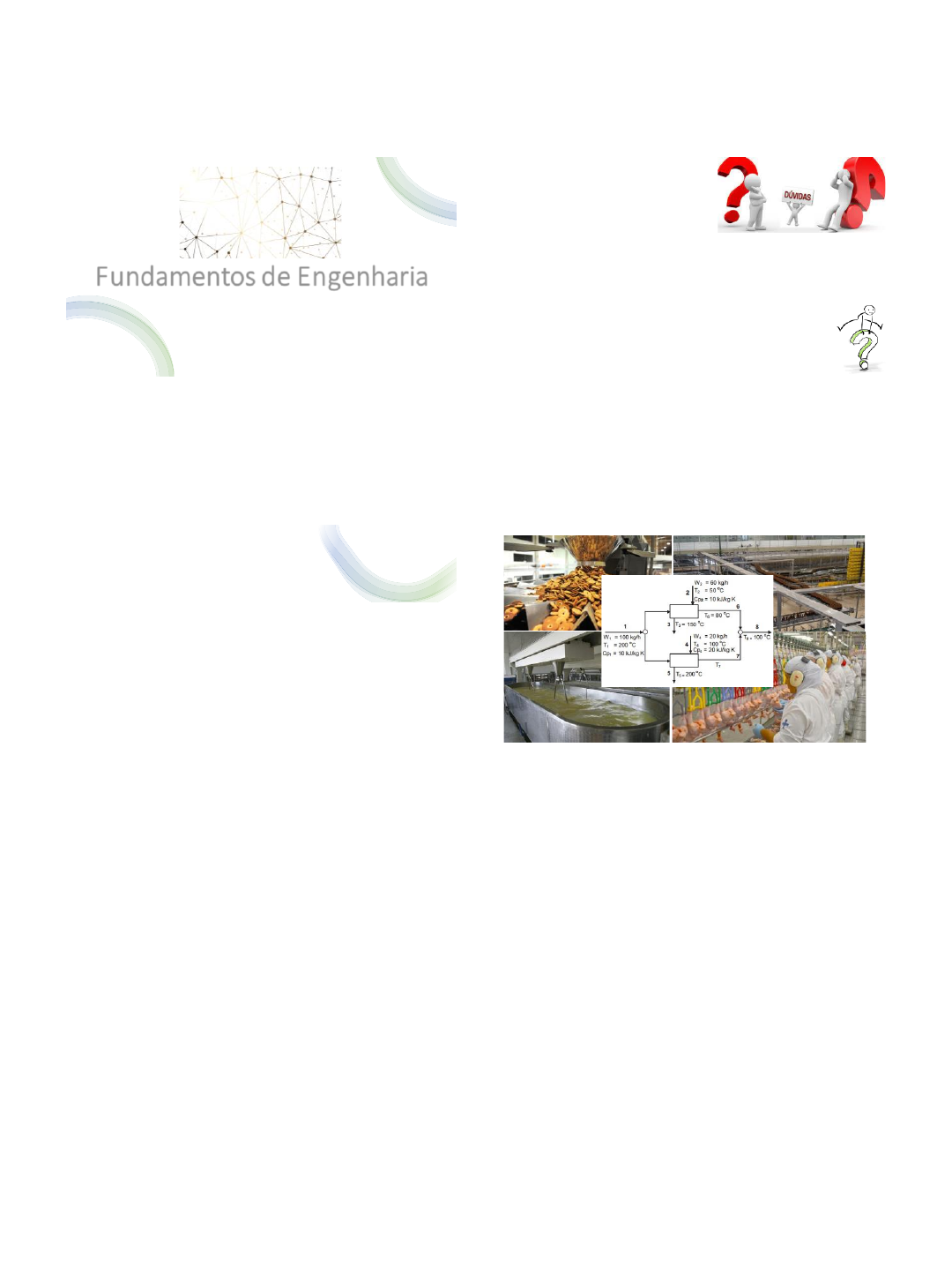 19/07/2021 1 Fundamentos de Engenharia Engenharia de Alimentos - UEPG Profª Dra. Viviani Borsato • O que engenheiros fazem? • Trabalham em uma grande variedade de atividades industriais; • Concentram-se em projetos, operação , controle, investigação de falhas, pesquisa, gerência, aspectos ambientais e econômicos; • Fundamentos em engenharia??? O que é??? • Base inicial, unidades e dimensões, unidade mol, convenções em métodos de análise e medida, base de cálculo, temperatura, pressão, introdução a cálculos... • Balanços de massa e de energia em processos industriais. Conteúdo • Grandezas, dimensões e sistema de unidades; • Balanço de massa em processos (sistema simples, sistema múltiplos, com reciclo, desvio e purga de material); • Balanço de massa em sistemas reativos e não reativos; • Balanço de energia em processos (sistemas abertos e fechados); • Atividade de água e psicrometria; Programa da disciplina 1 Introdução 1.1 Aspectos gerais do processamento de alimentos 1.2 Conceito de processo. 2 Grandezas, Dimensões E Unidades 2.1 Sistemas de unidades – conversões de unidades 2.2 Grandeza; 2.3 Dimensão e Unidade; 2.3.1 Equação dimensional 2.3.2 Princípio da Homogeneidade Dimensional 2.3.3 Análise Dimensional 2.4 Sistemas de unidades 2.4.1 O Sistema Internacional de Unidades (SI) 2.5 Relação entre o SI e os Outros Sistemas (Gravitacionais e os de Engenharia) Programa da disciplina 2.6 Grandezas derivadas 2.7 Operações com grandezas (Conversões de unidades) 2.8 Algumas grandezas importantes (Variáveis de processo): Quantidade de matéria (N); Massa Molar (M); Composição; Razão; Massa específica () e volume específico (v); Volume molar (Vm); Peso específico (); Vazão ou taxa de escoamento; Fluxo de material; Temperatura Pressão e Umidade 3 Propriedades Termofísicas dos alimentos: a) Propriedades de interesse nos casos de transferência de calor: Massa específica; Condutividade térmica; Calor específico; Entalpia; Difusividade térmica b) Efeito da temperatura nas propriedades c) Efeito da composição do produto nas propriedades 1 2 3 4 5 6 19/07/2021 2 Programa da disciplina Balanços de massa e energia no processamento de alimentos 4.1 Princípios do balanço de massa em regime permanente 4.2 Base de Cálculo 4.3 Equação Geral de Balanço de Massa 4.4 Problemas com Processos Físicos - A técnica da caixa preta 4.5 Reciclo 4.6 Desvio de corrente de processo (“bypass”) 5 Balanço De Energia 5.1 Energia interna, calor e trabalho 5.2 Primeira Lei da Termodinâmica 5.3 Aplicação do Balanço de Energia em Processos de Fluxo Permanente 5.4 Capacidade calorífica e calor específico 5.5 Balanço de massa e energia combinados Programa da disciplina 6 Psicrometria 6.1 Umidificação e desumidificação do ar 6.2 Aplicações 7 Atividade De água 7.1 Estimativas da aW e aplicações Introdução • Objetivo: habilitar o aluno a obter uma visão “macroscópica” dos processos de transformação das matérias-primas em produtos na indústria de alimentos. • Em outras palavras, no decorrer do curso, estaremos aptos para fazer uma análise termodinâmica do processo. Aspectos gerais do processamento de alimentos • Antiguidade: métodos artesanais • Atualmente: processamento industrial: • i) conservação / melhor distribuição e transporte (otimização), • ii) disponibilidade (produção sazonal), • iii) necessidades decorrentes da forte urbanização e • iv) melhor distribuição do trabalho (eficiência do trabalho). Aspectos gerais do processamento de alimentos • Aliada a essas necessidades deve-se considerar influências de • i) hábitos alimentares (aspectos culturais / religiosos) e de • ii) mudanças induzidas (saúde, modismo), • E de outros fatores: • i) nutricionais e econômicos (custo/benefício) • ii) sanidade (microbiológica e química), • iii) ecológicos e • iv) sócio-produtivos, tecnológicos e políticos. Elementos de engenharia na industrialização de alimentos • Engenharia: Arte de aplicar conhecimentos científicos e empíricos e certas habilitações específicas à criação de estruturas, dispositivos e processos que são utilizados para converter recursos naturais em formas adequadas ao atendimento das necessidades humanas. • https://www.youtube.com/watch?v=kJyQw1k78yg 7 8 9 10 11 12 https://www.youtube.com/watch?v=kJyQw1k78yg 19/07/2021 3 • Identificar como ponto de partida, os elementos (matéria prima, insumos, produtos desejados) e quantificá-los, bem como selecionar e/ou projetar equipamentos que promovam a transformação desejada. PROCESSO DE TRANSFORMAÇÃO MATÉRIA PRIMA (alimento) COADJUVANTES (alimento) ÁGUA ENERGIA OUTROS INSUMOS Transferência de Matéria, Energia e Impulso RESÍDUOS PROCESSO DE TRATAMENTO Efluentes sem risco à saúde humana e ambiental PRODUTO (alimento) CO-PRODUTO (alimento) Algumas atividades do Engenheiro na Indústria de Alimentos • Caracterização das substâncias e energias envolvidas • Definição do(s) método(s) de conservação adequado(s) • Análise das transferências de energia, matéria e impulso • Quantificação dos fluxos e correntes • Estabelecimento do arranjo, dimensões e outras características físico- morfológicas dos equipamentos e dispositivos. Algumas atividades do Engenheiro na Indústria de Alimentos • Estabelecimento da estrutura produtiva: arranjo físico, instalações, energia, insumos, resíduos, controle, organização, etc. • Avaliação da atividade produtiva e do alimento produzido; garantindo a inocuidade (microbiológica e química) do processo ao Ser Humano e ao Meio Ambiente. Conceito de processo • É a transformação da matéria prima em produtos através de manipulações de fluxos e correntes. • https://www.youtube.com/watch?v= vnmmdYvmAGc&list=PL04AB7BCA62 E1DC9D&index=10 Substâncias envolvidas: quais são, como expressar, como obter?? • A anális