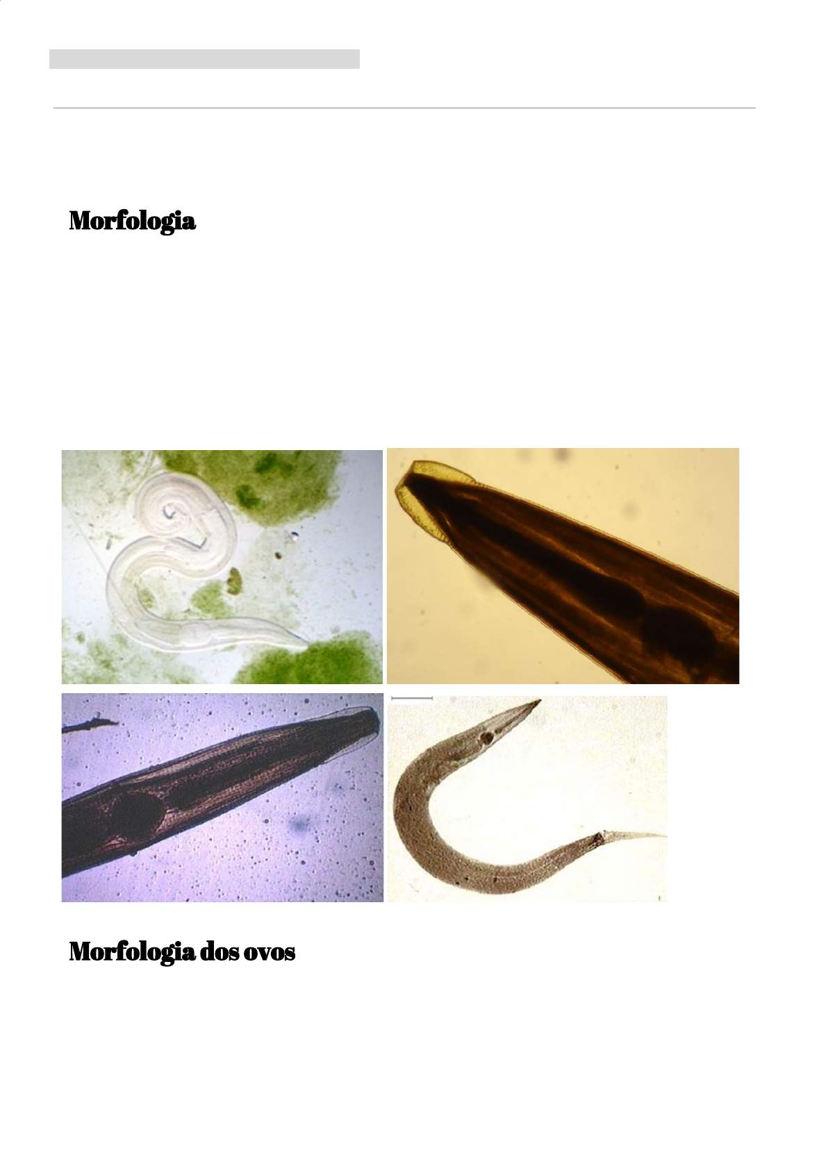 Resumo de Parasitologia - Enterobiose Ana Carolina Maia Lima ❖ O Enterobius vermicularis é um Estenoxeno é um parasito com hospedeiro único ou restrito. no caso dessa doença único hospedeiro é o humano. Morfologia ❖ São pequenos,até agora um dos menores. São nematelmintos,ou seja tubulares, finos,esbranquiçado,tem asa cefálica(organela na região anterior - da cabeça- que só esse parasito tem) e esôfago claviforme( formato do esôfago). ❖ Macho menor que a fêmea ❖ fêmea extremidade posterior mais fina e macho a tem enovelada ventralmente. ❖ Comportamento do ciclo de vida dele diferente dos outros , e responsável pelo sintoma de coceira na região perianal. Morfologia dos ovos ❖ Transparente,lembra a forma de D,membrana dupla,massa de células que em 6 ou 8h desenvolve uma larva infectante,importância epidemiológica,pois se em poucas horas depois da eliminação a larva está pronta,sua capacidade infectante é alta. Membrana lisa. d é um lado mais plano outro mais convexo. Formas de Transmissão Ingestão de ovos que vieram de uma pessoa diferente de mim, ovo com a larva l3. pela água ou alimentos digeridos cru não higienizados,passa pro esofago,estomago e no intestino delgado ela recebe sinais bioquímicos para larva sair do ovo, aí ela migra pro intestino grosso, nesse trajeto vai se desenvolvendo em l4 e l5, na luz do intestino grosso ele vira adulto. No grosso é onde ela se estabiliza para se reproduzir. Após o acasalamento,todos os machos morrem,são eliminados passivamente com as fezes para o meio externo. As fêmeas ao invés de ficar no intestino,migra para região perianal,onde vai morrer e liberar seus ovos. a maior parte dele fica na região perianal,outras vai com as fezes para o ambiente (infecta outra pessoa) e em 8 horas forma a larva. Teoricamente seria feito um processo de autocura,já que o macho morre,a fêmea morre na região perianal,não tem verme adulto. é auto curada se não tiver reinfecção. Mas existe a possibilidade alta de autoinfecção interna e externa. O da auto infecção externa é pq os ovos ficam na região perianal e causa coceira e come sem lavar a mão é o principal mecanismo para cronicidade da infecção. Auto infecção interna acontece (é rara pq depende de outro quadro sintomático - prisão de ventre). Além da retroinfecção por deficiência de higiene da pessoa,os ovos ficam na região perianal,6 ou 8h depois as larvas entram pelo ânus e voltam pro intestino para formar vermes adultos e repetir o ciclo. a última maneira é a indireta,através de insetos carreadores,que com as patas contaminadas leva os ovos para o alimento. o inseto ai é transportador,não faz parte do ciclo. Qualquer inseto. Sintomatologia Há assintomático. Durante a migração do parasito,do intestino delgado pro grosso,causa irritações na mucosa intestinal e as células caliciformes produzem muco para envolver o parasito e tornar a movimentação precária para eliminar ele. Causa inflamação do intestino,ou seja, enterite do tipo catarral (muco) e prurido perianal (coceira no cú). A coceira no cu traz irritabilidade e baixa no rendimento escolar. Por a mulher ter a genitália externa próxima do cú,a femêa pode migrar pra região do clitoris,o que provoca coceira (na criança ela vai ter estímulo erógeno para coçar). Diagnóstico ❖ É feito muitas vezes clinicamente, pois quando o pai aparece com a criança reclamando que ela coça o cú,o médico já vai imaginar sendo enterobíase. ❖ O laboratorial parasitológico o kato kazi é pouco sensível para isso pois a maior parte dos ovos fica no cú,a menor parte fica nas fezes,então não é eficiente,hpj também.Portanto, tem muita chance de dar falso negativo. ❖ A técnica de graham ou método da fita adesiva funciona melhor, os ovos do cú pregam na fita, e colocam na lâmina. E ELISA (mas ngm faz). Tratamento ❖ Pamoato de pirantel (principal), mebendazol e benzimidazoles. Epidemiologia ❖ Transmissão doméstica e ambientes fechados,creches,asilos, enfermarias infantis. Ovos poderem infectar muito rápido (8 horas), via aérea, alimentos contaminados e os tipos de infecção ditos anteriormente. ❖ Uma pessoa da casa pegou, trata a casa inteira. Profilaxia ❖ Educação em saúde, tratamento da doença.