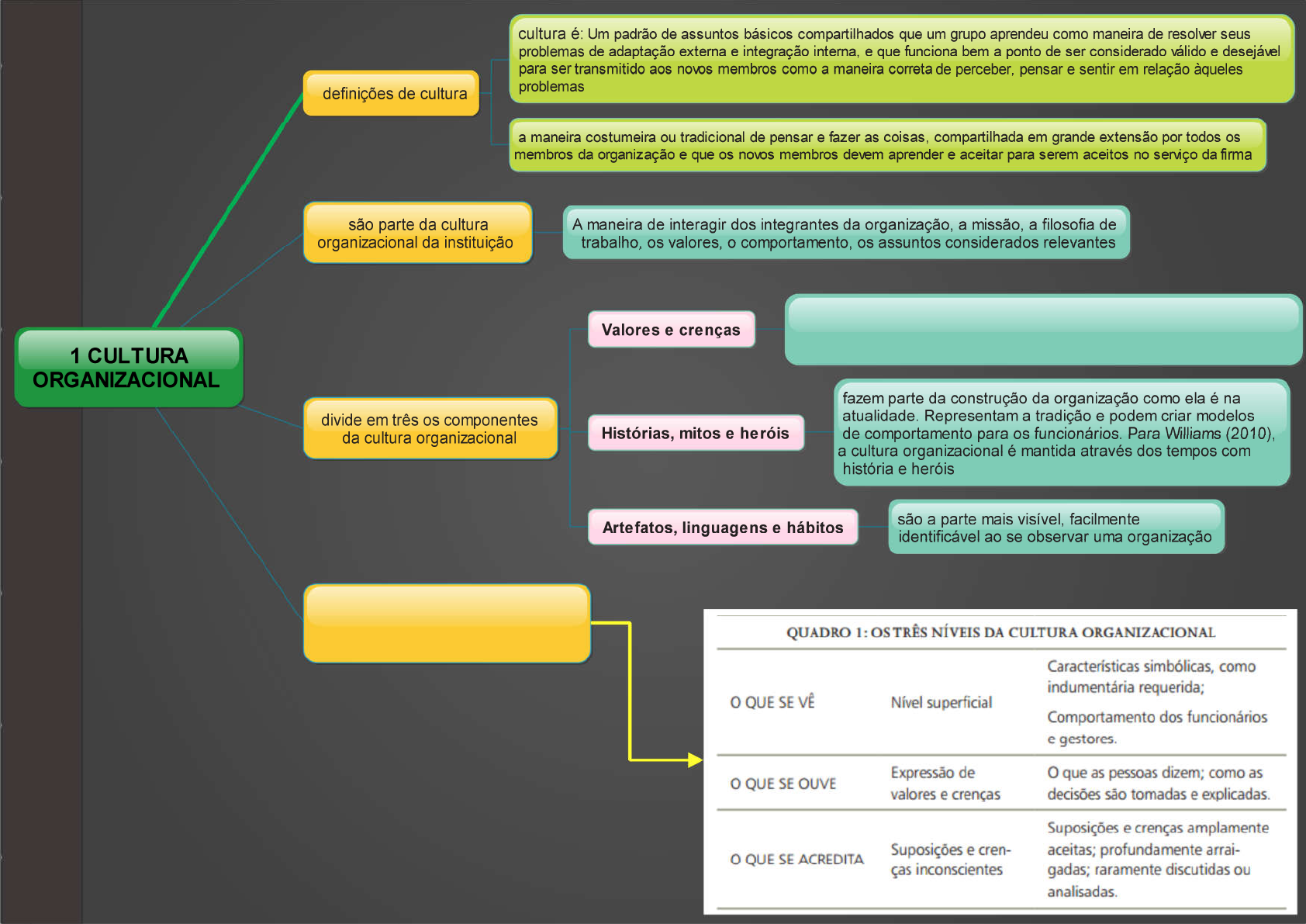 cultura de uma organização pode ser visualizada através de níveis comentados no quadro a seguir compreendem os aspectos mais difíceis de serem analisados, mais internos à organização. Muitas vezes o que se declara como valores e crenças não é o que realmente é praticado nas organizações 1.1 ARTEFATOS, LINGUAGENS E HÁBITOS 1.3 VALORES E CRENÇAS A liderança militar não é privilégio de alguns poucos chefes, dotados de qualidades inatas para influenciar o comportamento de outras pessoas. É natural que tais qualidades concorram para a formação e o aperfeiçoamento do líder, mas sua simples existência não determina o sucesso do seu desempenho 2 LIDERANÇA MILITAR base da liderança é o poder e existem cinco tipos básicos de poder 2 LIDERANÇA MILITAR os líderes militares devem satisfazer os seguintes requisitos princípios de liderança 2 LIDERANÇA MILITAR 2.1 TIPOS DE LIDERANÇA o líder encara como sua responsabilidade o cumprimento da missão através da participação, do engajamento dos homens e do aproveitamento de suas ideias. Outra classificação dos tipos de liderança vem dos níveis de liderança militar, conforme estabelecido pelo Manual de Campanha Norte-Americano ocorre de forma indireta, por meio da cadeia de comando. É realizada mais comumente nos escalões de brigada e superiores, nos quais a influência dos comandantes é muito mais ampla quando operam por intermédio de seus estados-maiores, em função de ser praticamente impossível conhecer pessoalmente e falar com todos os integrantes das unidades ocorre nos mais altos níveis, tanto no contexto institucional do Estado quanto em contextos operacionais. É fundamental que o líder nesse nível tenha uma visão do futuro, com a finalidade de traçar metas estratégicas 2 LIDERANÇA MILITAR 3 ATENDIMENTO AOS CLIENTES A utilização de ideias oriundas da Total Quality Management (TQM) ou Gestão pela Qualidade Total (GQT) tem ajudado de maneira expressiva as empresas na revisão de suas missões institucionais, na qualidade dos serviços prestados e, principalmente, no foco dispendido ao usuário (cliente) 3.1 A IMPORTÂNCIA DO ATENDIMENTO AOS CLIENTES o conceito de foco no cliente relaciona-se com duas questões fundamentais: aspectos que são considerados essenciais e que devem ser compreendidos e colocados em prática independentemente do tipo de negócio 3 ATENDIMENTO AOS CLIENTES para a realização de um bom atendimento estabelece que existe a necessidade de que o usuário (cliente) fique satisfeito com a qualidade dos serviços que lhe são prestados 3.3 CLIENTES INTERNOS E EXTERNOS O conhecimento sobre o cliente e o mercado é um dos critérios de excelência estabelecidos pela Fundação Nacional da Qualidade (FNQ) e é voltado para a criação de forma sustentada para o cliente, o que proporciona diretamente uma maior competitividade nos mercados 3.4 IDENTIFICAÇÃO DE EXPECTATIVAS E NECESSIDADES DOS CLIENTES ferramenta muito importante e em sua forma negativa pode até mesmo significar o fracasso de um negócio deve ser utilizada para ajustar o nível de expectativa com as capacidades da organização 3 ATENDIMENTO AOS CLIENTES 3.5 PERCEPÇÕES DOS CLIENTES A aquisição de novas competências pela organização pode se dar por meio da educação (forma tradicional), pela capacitação, pelo ensino a distância ou ainda pela troca de experiências e conhecimentos entre os indivíduos que com isso potencializarão o conjunto de competências do quadro de pessoal 5.1 A IMPORTÂNCIA DO TREINAMENTO 5.2 A ESTRUTURAÇÃO DO TREINAMENTO A maior parte dos programas de treinamento está concentrada em transmitir informações ao colaborador sobre a organização, suas políticas e diretrizes, regras e procedimentos, missão e visão organizacional, seus produtos/ serviços, seus clientes, seus concorrentes quatro etapas distintas É a elaboração do projeto ou programa de treinamento paraatender às necessidades diagnosticadas 5.3 ESTRATÉGIA DE TREINAMENTO 5.4 O PLANEJAMENTO DO TREINAMENTO treinamento, além de ser um processo voltado para o desenvolvimento dos recursos humanos constitui-se em um processo de aprendizagem (alteração comportamental) realizado através da transmissão de informações, desenvolvimento de habilidades, de atitudes e conceitos c. a história mais detalhada de alguns programas de qualidade evidenciou a influência do treinamento sobre o desempenho do programa de qualidade da empresa O desempenho de uma pessoa depende não apenas de sua competência, motivação e da forma como o trabalho está organizado, mas também dos processos sociais que ocorrem nos grupos de que participa uma das mais fortes tendências atuais da administração tem sido o esforço de muitas organizações no sentido de implementar o conceito de equipe 7.1 CONCEITO DE EMPOWERMENT a motivação dos subordinados por meio de elogios pelo bom desempenho das tarefas, a recompensa e a celebração do alcance das metas faz com que eles trabalhem com mais empenho e presteza para se estabelecer uma liderança efetiva, é preciso orientar as pessoas, definindo metas e objetivos, para que se possa avaliar seu desempenho Segundo Hilsdorf (2010), como o conceito de empowerment está focado em delegação de poderes com o objetivo de aproveitar o capital humano, aproveitando a gestão estratégica, seu uso se apresenta de vital importância, já que evita o péssimo vício da centralização de decisões dentro da organização se apresenta como uma maneira de se referenciar processos através da medição de produtos, serviços e práticas em relação aos mais fortes concorrentes, ou às empresas reconhecidas como líderes em suas indústrias é utilizado para análise em grandes organizações que possuem várias unidades similares que podem ser comparadas. A busca pelas melhores práticas é focada nas diferentes unidades 9.2 BRAINSTORMING Deve ser usada para visualizar, em conjunto, as causas prin