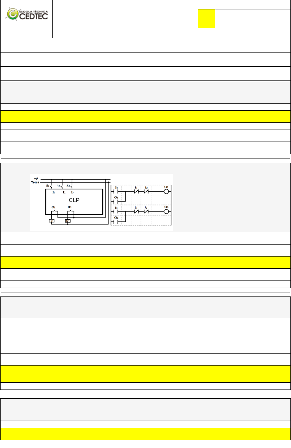 Pincel Atômico - 08/09/2023 10:40:36 1/2 DIONATAN SOBRINHO DE ANDRADE Exercício Caminho do Conhecimento - Etapa 14 (26237) Atividade finalizada em 03/09/2023 21:10:59 (1137458 / 1) LEGENDA Resposta correta na questão # Resposta correta - Questão Anulada X Resposta selecionada pelo Aluno Disciplina: AUTOMAÇÃO ELÉTRICA [773112] - Avaliação com 4 questões, com o peso total de 6,50 pontos [capítulos - 117] Turma: Curso Técnico: Eletrotécnica - Grupo: EAD - 01/23 - EAD ELE [79214] Aluno(a): 91390018 - DIONATAN SOBRINHO DE ANDRADE - Respondeu 4 questões corretas, obtendo um total de 6,50 pontos como nota [350019_1801 51] Questão 001 Uma das partes que compõem o elevador é a casa de máquina cuja definição é: Consiste em uma armação metálica formada por duas longarinas e dois cabeçotes, onde são fixados pesos X É dado ao compartimento do edifício, destinado à colocação da máquina de tração, quadro de comando, painel seletor, limitador develocidade, e de outros componentes da instalação do elevador. É o local onde os passageiros entram, apertam o botão e vão para o andar solicitado Mecanismo motorizado situado sobre a porta da cabina, garante abertura e fechamento das portas do elevador ao chegar no pavimento determinado, permitindo o embarque e o desembarque dos passageiros É o espaço físico da edificação formado por paredes verticais, fundo do poço e teto, acessado normalmente através das portas de pavimento, por onde se movimentam a cabina e o contrapeso. [350018_1801 58] Questão 002 Ao observar o esquema elétrico de ligação do CLP e o programa em LADDER, considerando I1, I2, I3, como entradas digitais e O1, O2, as saídas a relé do CLP, pode-se afirmar que: Ao ser pressionada a botoeira S1, qualquer contator que esteja em funcionamento será desligado. Ela deve ser pressionada sempre que se desejar mudar o contator que está funcionando. Dependendo da aplicação, como em um comando com partida direta com reversão, deve-se evitar pressionar as botoeiras S2 e S3 simultaneamente, pois os dois contatores, K1 e K2, também seriam ligados simultaneamente, o que poderia levar a um curto circuito. X Ao ser pressionada a botoeira S2, o contator K1 é ligado, permanecendo nesta condição mesmo se a botoeira for liberada. Se nestasituação a botoeira S3 for pressionada, o contator K1 será desligado e o contator K2 será ligado. Ao ser pressionada a botoeira S2, o contator K1 é ligado, permanecendo nesta condição mesmo se a botoeira for liberada. Enquanto permanecer ligado, o contator K1 impede o acionamento do contator K2 diretamente pela botoeira S3. Ao ser pressionada a botoeira S1, o contator K1 é ligado, permanecendo nesta condição mesmo se a botoeira for liberada. [350018_1801 62] Questão 003 Comando Automático Coletivo Seletivo na Descida (C.A.C.S.D. usado em sistemas de elevadores é definido: É o comando na qual existem botões “subir” e “descer” nos andares intermediários e um botão nos pavimentos extremos. Neste sistema são atendidas primeiramente todas as chamadas em um dos sentidos para depois serem atendidas as do sentido oposto. É normalmente utilizado em elevadores de prédios comerciais, aeroportos, hospitais, hotéis, órgãos públicos e shopping-centers. É o comando no qual existe um botão para cada pavimento, instalados nos pavimentos e/ou na cabina de modo que todas as chamadas fiquem registradas até que o carro efetue a parada, na ordem em que os pavimentos forem atingidos. O sentido inicial do carro prossegue até atingir a chamada extrema registrada. Inteligência artificial, desenvolvimento científico e tecnológico, telecomunicações e robótica abrangendo todos os setores - industrial, agricultura e serviços. X É o comando no qual as chamadas da cabina são atendidas até que o carro alcance o pavimento externo superior para o qual foi feita a chamada. As chamadas externas serão atendidas na descida depois de atendida a chamada superior. Normalmente utilizado nos edifícios residenciais. É a linguagem padrão para automação de gráficos no ladder. [350019_1801 52] Questão 004 Uma das partes que compõem o elevador é a caixa de corrida cuja definição é: É o local onde os passageiros entram, apertam o botão e vão para o andar solicitado X É o espaço físico da edificação formado por paredes verticais, fundo do poço e teto, acessado normalmente através das portas depavimento, por onde se movimentam a cabina e o contrapeso. Pincel Atômico - 08/09/2023 10:40:36 2/2 É nome dado ao compartimento do edifício, destinado à colocação da máquina de tração, quadro de comando, painel seletor, limitador de velocidade, e de outros componentes da instalação do elevador. Consiste em uma armação metálica formada por duas longarinas e dois cabeçotes, onde são fixados pesos. Mecanismo motorizado situado sobre a porta da cabina, garante abertura e fechamento das portas do elevador ao chegar no pavimento determinado, permitindo o embarque e o desembarque dos passageiros