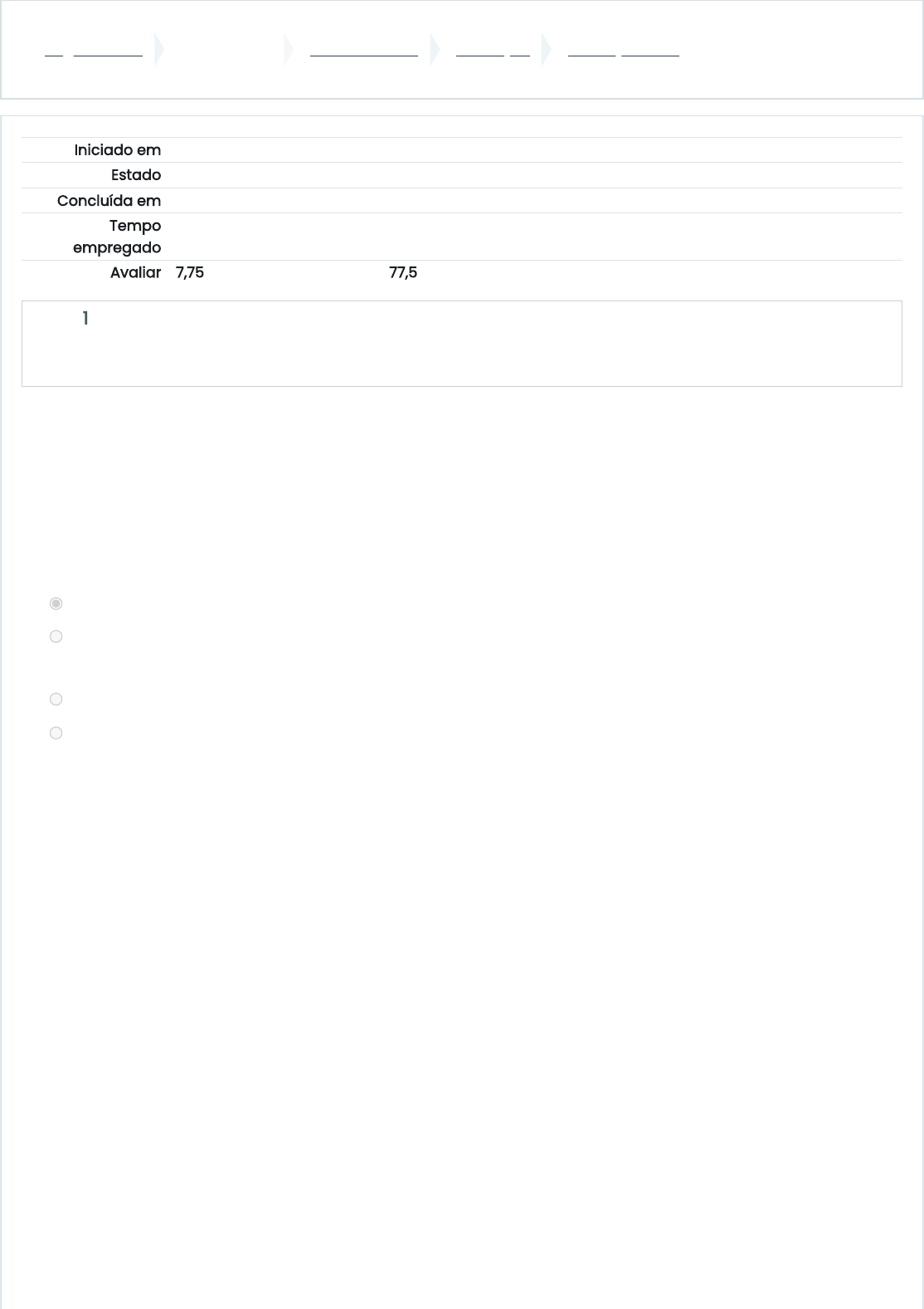 Página inicial Meus cursos EVASÃO 2023.2 Avaliação Avaliação Final Iniciado em sexta, 8 set 2023, 17:13 Estado Finalizada Concluída em sexta, 8 set 2023, 17:23 Tempo empregado 9 minutos 49 segundos Avaliar 7,75 de um máximo de 10,00(77,5%) Questão 1 Correto Atingiu 1,00 de 1,00 Conforme Vianna (2021), "o nível de engajamento escolar do aluno, a identificação dele em relação à instituição de ensino, compreende a maneira como se relaciona com a vida escolar e influencia sua decisão em permanecer ou evadir da escola. Envolve atitudes, valores, comportamentos”. Desse modo, em grande parte das teorias sobre evasão, o engajamento pode ser de dois tipos: de aprendizagem ou social (convivência com a família, colegas, professores e comunidade escolar). Esta afirmação está: a. ( ) Correta b. ( ) Parcialmente correta (na maior parte correta) c. ( ) Parcialmente incorreta (na maior parte incorreta) d. ( ) Incorreta Sua resposta está correta. A resposta correta é: ( ) Correta https://cursoslivres.ifms.edu.br/ https://cursoslivres.ifms.edu.br/course/view.php?id=279 https://cursoslivres.ifms.edu.br/course/view.php?id=279§ion=6 https://cursoslivres.ifms.edu.br/mod/quiz/view.php?id=9536 Questão 2 Incorreto Atingiu 0,00 de 1,00 Questão 3 Correto Atingiu 1,00 de 1,00 Do ponto de vista geográfico, as ações universalizantes para a evasão escolar servem para qual tipo de realidade? a. contexto amplo, sem contradições e com desigualdades b. contexto não linear, com contradições e com desigualdades c. contexto linear, sem contradições e sem desigualdades d. contexto não linear, sem contradições sem desigualdades Sua resposta está incorreta. A resposta correta é: contexto linear, sem contradições e sem desigualdades Marque VERDADEIRA ou FALSA para a seguinte afirmação: “A respeito do nível de pertencimento dos alunos, se a vida escolar faz sentido ou não para o estudante são fatores que podem influenciar no engajamento do estudante na vida de formação escolar?”. ( )o nível de pertencimento do estudante com a escola não está relacionado com a formação escolar. ( ) O engajamento do estudante na vida de formação escolar pode ser diretamente influenciada pelo nível de pertencimento do estudante com a escola. ( )Se a escola não faz sentido para o estudante, não há possibilidade de interferir em seu engajamento na vida escolar. ( ) nenhuma das alternativas é verdadeira. a. V,V,V,V b. F,V,F,F c. V,F,V,F d. F,F,F,F Sua resposta está correta. A resposta correta é: F,V,F,F Questão 4 Correto Atingiu 1,00 de 1,00 A literatura especializada assevera que a Evasão escolar é um território em disputa. Tanto a formulação de sentidos, quanto o tratamento que lhe é conferido obedecem a interesses e propósitos conflitantes. Esta afirmação está: a. ( ) Parcialmente correta b. ( ) Incorreta c. ( ) Correta d. ( ) Parcialmente incorreta. Sua resposta está correta. A resposta correta é: ( ) Correta Questão 5 Parcialmente correto Atingiu 0,75 de 1,00 Questão 6 Correto Atingiu 1,00 de 1,00 Considerando que Dore e Luscher (2011) demonstram um conjunto de fatores que favorecem a evasão, assinale VERDADEIRO ou FALSO. ( ) Os processos de encaminhamentos pedagógicos na escola, podem prejudicar ou favorecer a evasão dos estudantes. ( ) O engajamento dos gestores e demais agentes educadores são importantes para o enfrentamento da evasão. ( ) Os recursos disponíveis aos estudantes não devem ser levados em consideração quando se trata de fatores que implicam na evasão escolar. ( ) Fatores relacionados ao grupo de estudante, também interferem na evasão escolar. V V F V Sua resposta está parcialmente correta. Você selecionou corretamente 3. A resposta correta é: Considerando que Dore e Luscher (2011) demonstram um conjunto de fatores que favorecem a evasão, assinale VERDADEIRO ou FALSO. ([V]) Os processos de encaminhamentos pedagógicos na escola, podem prejudicar ou favorecer a evasão dos estudantes. ([V]) O engajamento dos gestores e demais agentes educadores são importantes para o enfrentamento da evasão. ([V]) Os recursos disponíveis aos estudantes não devem ser levados em consideração quando se trata de fatores que implicam na evasão escolar. ([V]) Fatores relacionados ao grupo de estudante, também interferem na evasão escolar. Marque a alternativa CORRETA: a. ( ) A evasão escolar surgiu no século XX; b. ( ) A evasão escolar é um fenômeno educacional recente; c. ( ) A evasão é um fenômeno que afeta a educação escolar ao longo da história da humanidade; d. ( ) A evasão escolar surgiu no século passado, portanto segue pouco conhecida. Sua resposta está correta. A resposta correta é: ( ) A evasão é um fenômeno que afeta a educação escolar ao longo da história da humanidade; Questão 7 Correto Atingiu 1,00 de 1,00 Questão 8 Correto Atingiu 1,00 de 1,00 A respeito do enfrentamento à evasão escolar é possível afirmar que, a. É importante que cada unidade escolar elabore o seu próprio planejamento, desconsiderando, a sua realidade escolar. b. cada unidade escolar deve alinhar o plano de enfrentamento da evasão escolar com as demais escolas brasileiras, independentemente de onde está localizada. c. É importante que cada unidade escolar elabore o seu próprio planejamento, considerando, a sua realidade escolar. d. Não é necessário planejar ações para o enfrentamento da evasão escolar pois, é algo que pode ser solucionado conforme o surgimento das demandas. Sua resposta está correta. A resposta correta é: É importante que cada unidade escolar elabore o seu próprio planejamento, considerando, a sua realidade escolar. Marque a alternativa INCORRETA: a. O tema sobre a evasão escolar não é de fácil explicação. b. Os efeitos da evasão escolar não se tratam de ameaças aos sistemas de ensino, portanto, não é motivo de preocupação o seu descontrole. c. A evasão escolar é um fenômeno de ordem m