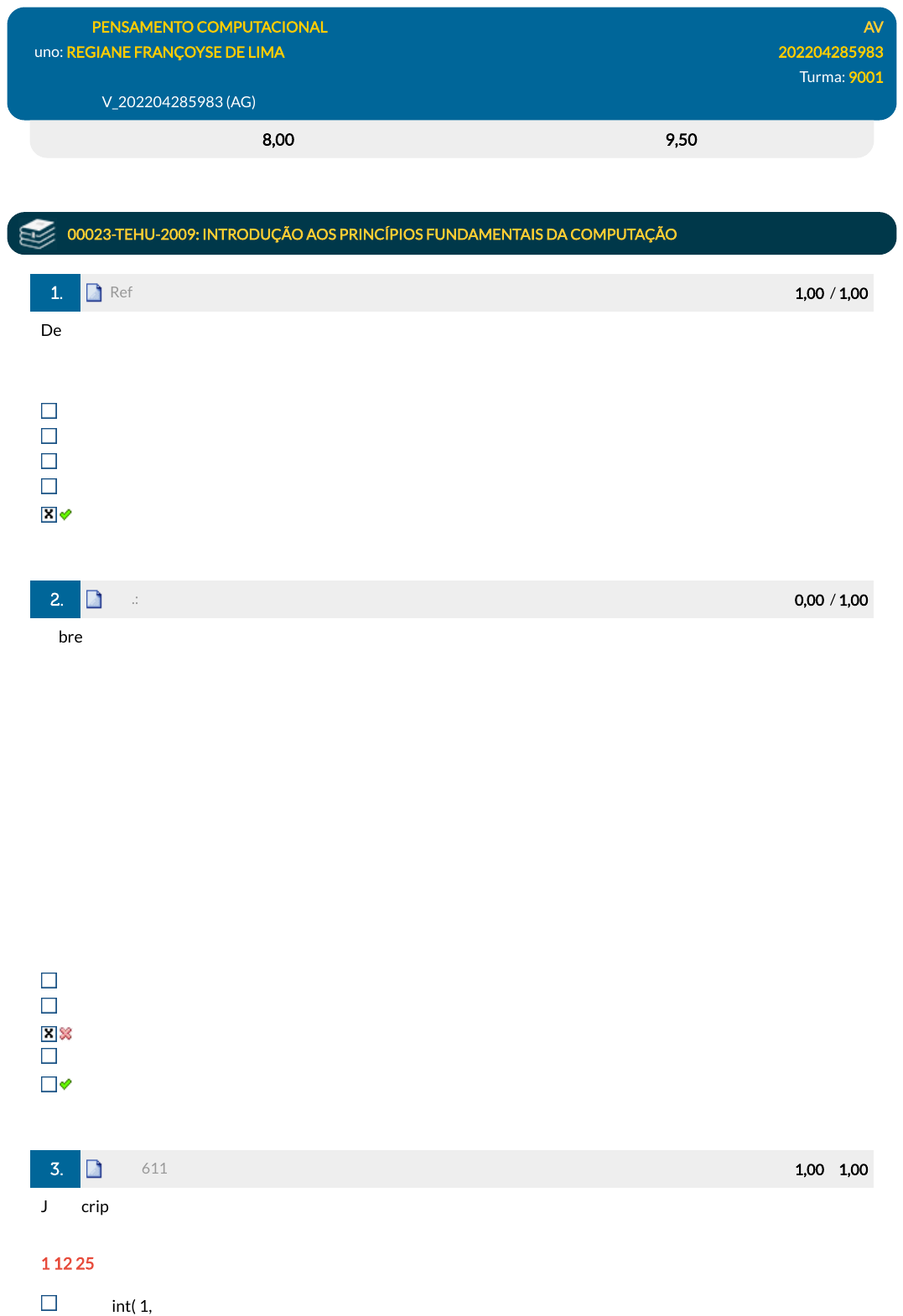 Avaliação: 8,00 pts Nota SIA: 9,50 pts