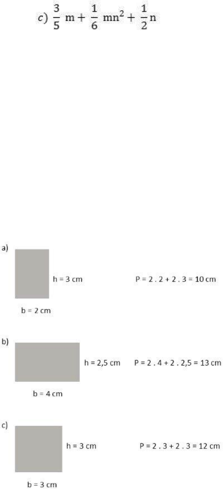 Expressões Algébricas Expressões algébricas são expressões matemáticas que apresentam números, letras e operações. São usadas com frequência em fórmulas e equações. As letras que aparecem em uma expressão algébrica são chamadas de variáveis e representam um valor desconhecido. Os números escritos na frente das letras são chamados de coeficientes e deverão ser multiplicados pelos valores atribuídos as letras. Exemplos a) x + 5 b) b2 – 4ac Cálculo de uma Expressão Algébrica O valor de uma expressão algébrica depende do valor que será atribuído às letras. Para calcular o valor de uma expressão algébrica devemos substituir os valores das letras e efetuar as operações indicadas. Lembrando que entre o coeficiente e a letras, a operação é de multiplicação. Exemplo O perímetro de um retângulo é calculado usando a fórmula: P = 2b + 2h Substituindo as letras com os valores indicados, encontre o perímetro dos seguintes retângulos Simplificação de Expressões Algébricas Podemos escrever as expressões algébricas de forma mais simples somando seus termos semelhantes (mesma parte literal). Para simplificar iremos somar ou subtrair os coeficientes dos termos semelhantes e repetir a parte literal. Exemplos a) 3xy + 7xy4 - 6x3y + 2xy - 10xy4 = (3xy + 2xy) + (7xy4 - 10xy4) - 6x3y = 5xy - 3xy4 - 6x3y b) ab - 3cd + 2ab - ab + 3cd + 5ab = (ab + 2ab - ab + 5ab) + (- 3cd + 3cd) = 7ab Fatoração de Expressões Algébricas Fatorar significa escrever uma expressão como produto de termos. Transformar uma expressão algébrica em uma multiplicação de termos, frequentemente nos permite simplificar a expressão. Para fatorar uma expressão algébrica podemos usar os seguintes casos: Fator comum em evidência: ax + bx = x . (a + b) Agrupamento: ax + bx + ay + by = x . (a + b) + y . (a + b) = (x + y) . (a + b) Trinômio Quadrado Perfeito (Adição): a2 + 2ab + b2 = (a + b)2 Trinômio Quadrado Perfeito (Diferença): a2 – 2ab + b2 = (a – b)2 Diferença de dois quadrados: (a + b) . (a – b) = a2 – b2 Cubo Perfeito (Soma): a3 + 3a2b + 3ab2 + b3 = (a + b)3 Cubo Perfeito (Diferença): a3 - 3a2b + 3ab2 - b3 = (a - b)3 Operações Algébricas Soma e subtração A soma ou a subtração algébrica é feita somando-se ou subtraindo-se os coeficientes dos termos semelhantes e repetindo a parte literal. Exemplo a) Somar (2x2 + 3xy + y2) com (7x2 - 5xy - y2) (2x2 + 3xy + y2) + (7x2 - 5xy - y2) = (2 + 7) x2 + (3 - 5) xy + (1 - 1) y2 = 9x2 - 2xy b) Subtrair (5ab - 3bc + a2) de (ab + 9bc - a3) É importante observar que o sinal de menos na frente dos parênteses inverte todos os sinais de dentro dos parênteses. (5ab - 3bc + a2) - (ab + 9bc - a3) = 5ab - 3bc + a2 - ab - 9bc + a3 = (5 - 1) ab + (- 3 - 9)bc + a2 + a3 = 4ab -12bc + a2 + a3 Multiplicação A multiplicação algébrica é feita multiplicando-se termo a termo. Para multiplicar a parte literal, usamos a propriedade da potenciação para multiplicação de mesma base: "repete-se a base e soma-se os expoentes". Exemplo Multiplicar (3x2 + 4xy) com (2x + 3) (3x2 + 4xy) . (2x + 3) = 3x2 . 2x + 3x2 . 3 + 4xy . 2x + 4xy . 3 = 6x3 + 9x2 + 8x2y + 12xy https://www.todamateria.com.br/potenciacao/
