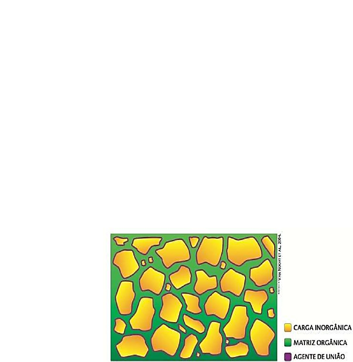Resinas Compostas Como o próprio nome indica, as resinas compostas têm sua matriz formada por vários componentes. Há quatro componentes principais. A resina é composta por uma matriz básica de natureza orgânica, uma carga inorgânica, diferente da matriz, e um agente de união para promover a união química entre as duas primeiras estruturas, além de um sistema iniciador-acelerador. A matriz orgânica trata-se de uma estrutura orgânica e amorfa (sem forma determinada), o que permite a sua modelagem na cavidade. Essa matriz nas resinas compostas atuais é formada basicamente por monômeros, em especial metacrilatos, os quais após a polimerização se unem em um polímero. É a porção quimicamente ativa das resinas compostas. A carga/matriz inorgânica é formada basicamente por partículas minerais, principalmente quartzo, vidro ou sílica, elas são quimicamente inertes, mas em função da sua rigidez serão responsáveis por fornecer uma das principais propriedades físicas finais da resina composta, como a resistência a compressão. A quantidade, tamanho e forma desses componentes são fundamentais na classificação das resinas compostas e também interferem em propriedades como a contração de polimerização. A principal classificação é dada em função do tamanho e da quantidade. Estrôncio e bário também estão presentes e são responsáveis pela radiopacidade do material. Há então uma matriz orgânica e uma inorgânica, ou seja, naturezas totalmente diferentes, por isso, as partículas de carga não têm adesão direta à matriz orgânica. Em função da natureza diferente dos componentes tem-se o agente de união. Durante o processo de fabricação dos compostos, a superfície das partículas inorgânicas é recoberta pelo agente de união. Esse agente é o silano, ele é bifuncional, há dois radicais, onde um deles se liga a porção orgânica e o outro a porção inorgânica, promovendo a união entre as partículas de carga de natureza inorgânica, com as de natureza orgânica. Sistema iniciador-acelerador é responsável diretamente pela reação de polimerização. Em resumo, tem-se uma estrutura como essa: Sistema acelerador-iniciador A porção quimicamente ativa das resinas compostas é a sua matriz orgânica e é exatamente aí que ocorrem as reações químicas que transformarão aquela “massa” amorfa em uma estrutura rígida suficiente para que a restauração seja efetiva. A reação de polimerização acontece a partir da aproximação e união química dos monômeros da matriz orgânica. A reação se inicia quando o componente ativador é excitado por outro componente, o chamado ativador. Quando o ativador é uma outra estrutura química, a reação é eminentemente química. Tem o acelerador (amina orgânica) em uma pasta e o ativador (peróxido orgânico) em outra, quando misturados em uma pasta comum dão início à polimerização. Nas resinas compostas utilizadas atualmente como materiais restauradores diretos a polimerização não é química, mas física através da luz (fotopolimerização). O componente iniciador, nesse caso, está presente na matriz orgânica dessas resinas compostas, mais especificamente a canforoquinona. Além da canforoquinona existe também um componente chamado hidroquinona, que não permite a fotopolimerização imediata, após a retirada do tubo. Classificação das resinas compostas São classificadas baseadas em três quesitos: grau de viscosidade, tamanho das partículas e propriedades óticas (cores e intensidades diferentes, a resina precisa mimetizar essas características dos dentes). Sendo o aspecto mais importante o tamanho das partículas de carga. Grau de viscosidade: · Regular/convencional · Fluida (Flow) – viscosidade menor, portanto, mais fluidas que as resinas convencionais. · Condensáveis/compactáveis – maior viscosidade se comparadas às convencionais. Reologia: ramo da ciência que estuda as deformações, escoamento da matéria. A viscosidade é a propriedade reológica mais conhecida. O que determina a viscosidade é a quantidade e o tamanho das cargas, mas especialmente a quantidade. Por exemplo, uma resina fluida tem menos carga inorgânica quando comparada a resina regular. E uma regular tem menos que a compactável. Determinadas situações clínicas podem exigir que se use uma resina mais fluida ou mais compacta. Uma área de difícil acesso, por exemplo, é indicada por muitos autores que se use a resina flow, uma vez que, devido a sua fluidez, estão disponibilizadas em seringas dotadas de uma ponta fina, o que facilita sua aplicação. Então a indicação da resina passa diretamente por essa questão do grau de viscosidade. Aumento da viscosidade = menor escoamento. Diminuição da viscosidade = menor resistência mecânica. Tamanho das partículas: Em uma análise simplista, a quantidade de carga de uma resina composta é o principal fator determinante para suas propriedades físico-mecânicas. Quanto maior a quantidade de carga inorgânica, maior a resistência, módulo de elasticidade e menor a contração de polimerização. As primeiras resinas surgiram na década de 70 e tinham partículas com cerca de 12 um (micrometros), eram os compostos macroparticulados. Elas tinham uma boa resistência à compressão, mas tinha muitos problemas clínicos, como dificuldade de obtenção de um bom polimento e, principalmente, a dificuldade de manutenção da lisura superficial ao longo do tempo, uma vez que a matriz orgânica se desgasta com facilidade. O resultado é uma superfície com aspecto opaco e irregular e altamente propensa a incorporação de pigmentos. Para minimizar esses problemas surgiram as microparticuladas (0,01 a 0, 04 um), que além de extremamente fáceis de polir, mantém o brilho e a lisura superficial por mais tempo. Porém ela teve baixa resistência a compressão, então são contraindicadas em regiões de esforço mastigatório. Elas apresentam e