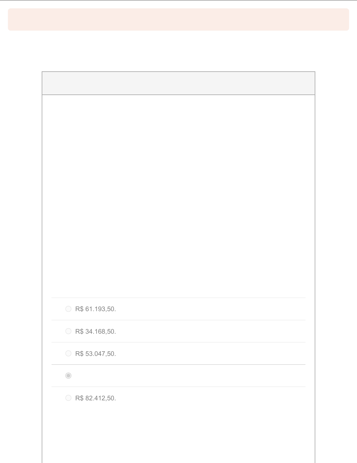 A�vidade de Sistema�zação VI Resultados para NATALIA DA SILVA TUNG As respostas corretas estão ocultas. Pontuação desta tentativa: 0,8 de 0,8 Enviado 31 ago em 18:29 Esta tentativa levou 23 minutos. 0,2 / 0,2 ptsPergunta 1 Considere as seguintes informações de uma empresa tributada pelo lucro real apuração trimestral, em 31/12/x4: Lucro antes do Imposto de Renda................................ R$ 300.000,00 Dividendos recebidos de participações societárias avaliadas pelo Método de Custo................................... R$ 26.000,00 Provisão para contingência.......................................... R$ 32. 650,00 Despesas não dedutíveis............................................ R$ 47.000,00 Com base nos dados apresentados, pergunta-se: qual será o a Contribuição Social sobre o Lucro Líquido a ser paga? R$ 61.193,50. R$ 34.168,50. R$ 53.047,50. R$ 31.828,50. R$ 82.412,50. Resolução: Lucro antes do Imposto de Renda: R$ 300.000,00 Adições: Provisão para contingências: R$ 32.650,00 Despesas não dedutíveis R$ 47.000,00 Exclusões: Dividendos recebidos de part. societárias (R$ 26.000,00) Base de cálculo antes da compensação R$353.650,00 Cálculo da CSLL 353.650,00 x 9% = 31.828,50 0,2 / 0,2 ptsPergunta 2 Suponhamos que uma pessoa jurídica optante pelo lucro real anual, no mês de janeiro de 20x4, apresente os seguintes dados: Receita de vendas de produtos: R$ 675.520,00 IPI sobre os produtos vendidos : R$ 67.552,00 Rendimentos sobre aplicações financeiras: R$ 15.600,00 Com base nas informações fornecidas e sabendo-se que a empresa optou pelo cálculo pelo Regime de Estimativa, qual será o valor da CSLL - Contribuição Social sobre o Lucro Líquido devido? R$ 8.699;61. R$ 7.970,05. R$ 7.295,60. R$ 6.566,05. R$ 5.781,37. Resolução: Cálculo do Imposto de Renda Receita de venda de produtos = 675.520,00 (-) IPI = 67.552,00 Receita líquida de venda............= 607.968,00 x 12% = R$ 72.956,16 Rendimentos sobre aplicações financeiras: = R$ 15.600,00 BASE DE CÁLCULO DO IMPOSTO DE RENDA.......... = R$ 88.556,16 Cálculo da CSLL = R$ 88.556,16 x 9% = R$ 7.970,05 0,2 / 0,2 ptsPergunta 3 A empresa Luz da Ribalta Ltda., no ano calendário de 20x3, apresentou base negativa de R$ 186.000,00. No ano seguinte, 20x4, apresentou lucro contábil de 265.000,00 e lucro real no valor de R$ 232.500,00. Daquela base negativa, poderá compensar no ano calendário de 20x4 até o valor de R$ 55.800,00. até o valor de R$ 69.750,00. até o valor de R$ 265.000,00. até o valor de R$ 232.500,00. até o valor de R$ 186.000,00. As pessoas jurídicas tributadas pelo lucro real, para apuração da base de cálculo da Contribuição Social sobre o Lucro Líquido, poderá compensar a base de cálculo negativa de períodos anteriores com os resultados positivos dos períodos subsequentes, ajustados pelas adições e exclusões previstas na legislação da CSLL, até o limite de 30% do lucro apurado no período. 0,2 / 0,2 ptsPergunta 4 Em 31.03.20x4 uma empresa tributada pela apuração trimestral do lucro real obteve as seguintes informações: Lucro líquido do exercício antes do IR e CSSL = R$ 400.000,00 Dividendos recebidos de participações societárias avaliadas pelo Método de Custo =R$ 18.000,00 Resultado positivo de equivalência patrimonial: R$ 21.500,00 Provisão para contingências = R$ 14.300,00 Despesas não relacionadas intrinsecamente com a atividade operacional da empresa = R$ 21.000,00 Base negativa da CSLL acumulada de períodos anteriores = R$ 200.000,00 Com base nessas informações, a base de cálculo da Contribuição Social devida será R$ 280.000,00. R$ 277.060,00. R$ 395.800,00. R$ 262.360,00. R$ 374.500,00. Resolução: Lucro líquido do exercício antes do IR e CSSL = R$ 400.000,00 Adições Provisão para contingências = R$ 14.300,00 Despesas não relacionadas intrinsecamente = R$ 21.000,00 Exclusões Dividendos recebidos de particip. societárias avaliadas pelo Método de Custo = (R$ 18.000,00) Resultado positivo de equivalência patrimonial: (R$ 21.500,00) Lucro antes compensação R$ 395.800,00 Compensação de base negativa limitada a 30% (R$ 118.740,00) Base de cálculo da Contribuição Social .......... R$ 277.060,00 Pontuação do teste: 0,8 de 0,8