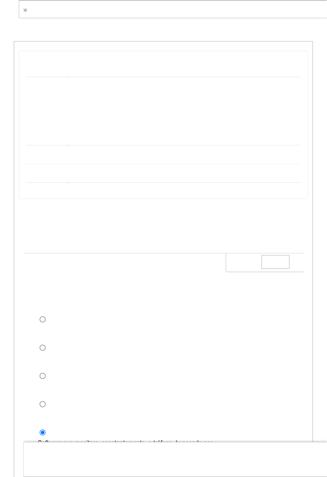 Fazer teste: Semana 6 - Atividade Avaliativa Informações do teste Descrição Instruções Várias tentativas Este teste permite 3 tentativas. Esta é a tentativa número 1. Forçar conclusão Este teste pode ser salvo e retomado posteriormente. Suas respostas foram salvas automaticamente. 1. Para responder a esta atividade, selecione a(s) alternativa(s) que você considerar correta(s); 2. Após selecionar a resposta correta em todas as questões, vá até o fim da página e pressione “Enviar teste”. 3. A cada tentativa, as perguntas e alternativas são embaralhadas Olá, estudante! Pronto! Sua atividade já está registrada no AVA. a. b. c. d. e. PERGUNTA 1 O Sistema de Detecção de Intrusos (IDS) comporta meios técnicos para a identificação de tentativas de acesso não autorizadas em uma rede, inspecionando o tráfego que chega e sai, monitorando pacotes constantemente. Marque a alternativa que apresenta a abordagem do IDS. Software estabelecido como um recurso híbrido para identificar e prevenir ataques, agregado como uma única solução. Software que traça a semelhança entre o tráfego e as assinaturas, de forma a identificar a coibição, considerando padrões de exploits. Software que realiza a prevenção de intrusão com o objetivo de evitar os possíveis ataques que podem acontecer. Software que automatiza o processo de detecção de intrusão, reunindo e utilizando informações dos diversos tipos de ataques. Software que monitora, constantemente, o tráfego, buscando por exploits conhecidos para proteger a rede. 1 pontos Salva Estado de Conclusão da Pergunta: Clique em Salvar e Enviar para salvar e enviar. Clique em Salvar todas as respostas para salvar todas as res ERRADA JAF_P Realce PERGUNTA 2 I. Firewalls do tipo filtro de pacotes atua somente na camada de aplicação e proxy atua somente na camada de rede. II. Honeypots servem como iscas para potenciais atacantes, contendo informações falsas de aparência valiosa. III. Sistemas de detecção de intrusão ativo reporta problemas ao usuário e o passivo atua para mitigar um ataque. IV. Os firewalls são usados para desviar os atacantes de sistemas críticos e para coletar informações das atividades dos atacantes. Considerando os sistemas de detecção de intrusão, os honeypots e os firewalls, julgue as afirmações a seguir e escolha a alternativa que julgar correta. Apenas III e IV estão corretas. Apenas I e II estão corretas. Apenas II e III estão corretas. Apenas I, III e IV estão corretas. Apenas I e III estão corretas. 1 pontos Salva PERGUNTA 3 A comunicação de rede sem fio utiliza também da pilha TCP/IP e tem como participantes o cliente e um roteador sem fio ou pontos de acesso. São desafios de segurança em rede sem fio: sequestro de conexões. intromissão, ou seja, usuários não autorizados que estejam conectados à internet por meio de ponto de acesso sem fio de outro usuário. espionagem de sessões. legitimação de conexões. legitimação de sessões. 1 pontos Salva PERGUNTA 4 Varreduras de porta possibilitam ao usuário enumerar as portas em uma máquina que aceita conexões, pois designar o tráfego permitido pelo firewall, assim como as portas em uma determinada máquina que executam serviços remotos, é essencial para analisar uma rede e identificar fragilidades de segurança. Sobre o que foi apresentado, analise as asserções a seguir e as relações propostas entre elas. I. Varredura de porta trata-se de uma técnica que consegue identificar 2 pontos Salva Clique em Salvar e Enviar para salvar e enviar. Clique em Salvar todas as respostas para salvar todas as res ERRADA JAF_P Realce a. b. c. d. e. o estado de uma porta em uma rede, buscando pelas portas que estão abertas, que possibilitam a identificação de vulnerabilidades. Ao mesmo tempo, possibilita aos hackers se beneficiarem do fato de que computadores conectados à internet ou a uma rede local, obrigatoriamente, possuem algumas de suas portas abertas para eventuais trocas de dados ou informações, e, desse modo, esses hackers encontram um alvo e o atacam. PORQUE II. Essa técnica possui uma fama controversa, no sentido de que o seu uso se destina para a avaliação da segurança da rede, mas também permite reconhecer uma rede que está preparada para um ataque malicioso. Analisando as asserções anteriores, assinale a alternativa correta. A asserção I é uma proposição verdadeira, e a II é uma proposição falsa. As asserções I e II são falsas. A asserção I é uma proposição falsa, e a II é uma proposição verdadeira. As asserções I e II são proposições verdadeiras, mas a II não é uma justificativa da I. As asserções I e II são proposições verdadeiras, e a II é uma justificativa da I. a. b. c. d. e. PERGUNTA 5 As tecnologias sem fio conectam dispositivos eletrônicos sem utilizar cabos em conformidade com a potência dos dispositivos e as distâncias que colaboram com a tecnologia empregada. Para isso, esse tipo de comunicação usa _______________ (lacuna 1), em que as partes comunicantes e conectadas à internet são os clientes, e o roteador sem fio pelo qual eles se conectam é o _______________(lacuna 2). Os padrões IEEE 802.111 estabelecem as formas para a transmissão de dados por meio de _______________(lacuna 3). Preencha as lacunas escolhendo a alternativa correta. camada de rede, ponto de acesso, ondas de rádio. camada de enlace, ponto de acesso, ondas de rádio. camadas IP, ponto de acesso, ondas de rádio. camada de aplicação, ponto de acesso, ondas de rádio. camada de transporte, ponto de acesso, ondas de rádio. 2 pontos Salva PERGUNTA 6 Sistemas de detecção de intrusão alertam os proprietários de uma instalação informação o o tros rec rsos sensí eis se a seg rança 1,5 pontos Salva Clique em Salvar e Enviar para salvar e enviar. Clique em Salvar todas as respostas para salvar todas as res instalação, informação ou outros recursos sensíveis se a segu