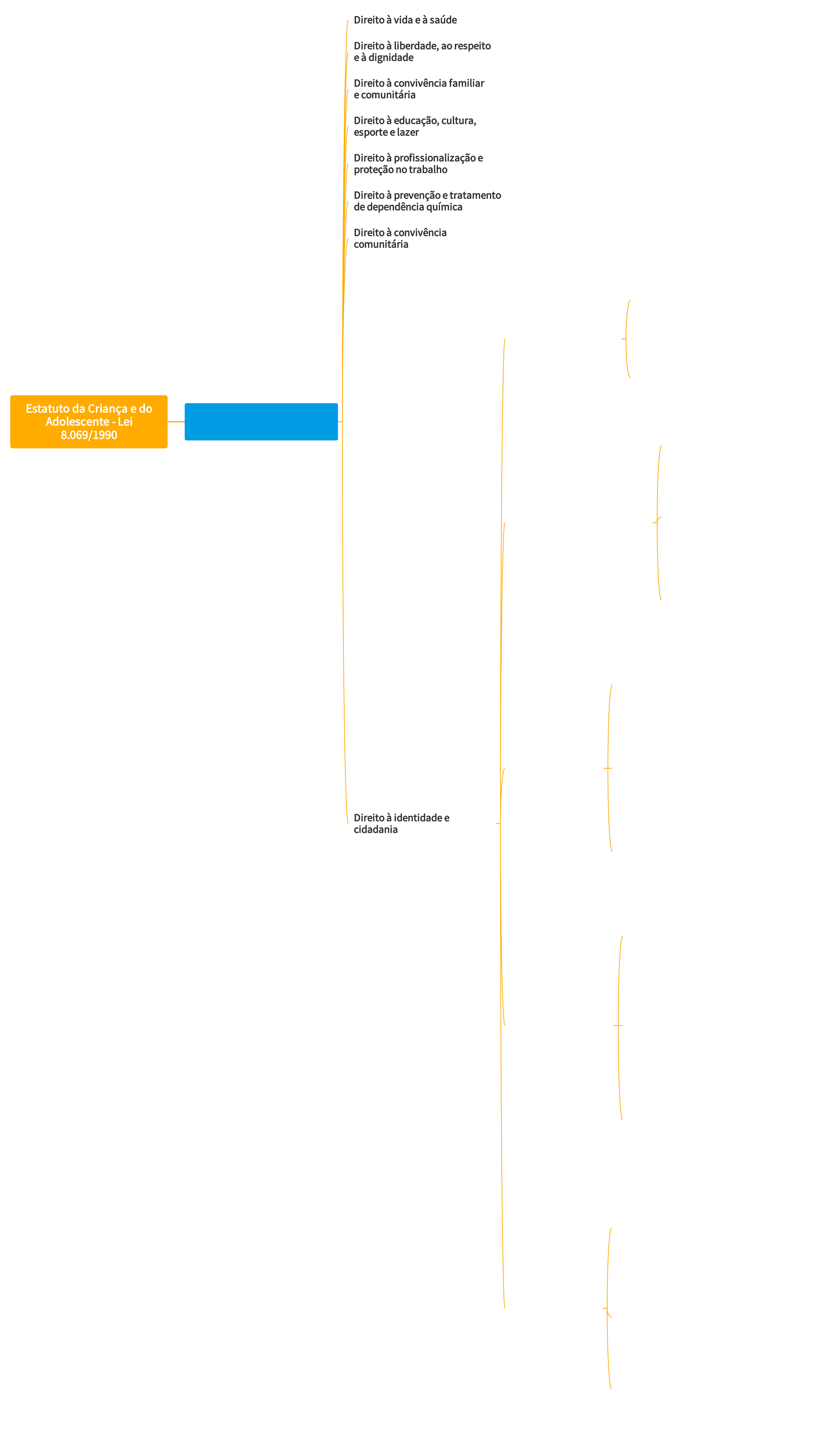 Estatuto�da�Criança�e�do Adolescente�-�Lei 8.069/1990 Dos�Direitos Fundamentais Direito�à�vida�e�à�saúde Direito�à�liberdade,�ao�respeito e�à�dignidade Direito�à�convivência�familiar e�comunitária Direito�à�educação,�cultura, esporte�e�lazer Direito�à�profissionalização�e proteção�no�trabalho Direito�à�prevenção�e�tratamento de�dependência�química Direito�à�convivência comunitária Direito�à�identidade�e cidadania Direito�à�nacionalidade: Direito�ao�nome�e�à individualidade: Direito�à�dignidade: Direito�à�participação: Direito�à�igualdade: Combater�todas�as�formas�de discriminação�e�preconceito, assegurando�a�igualdade�de direitos�e�oportunidades�para todas�as�crianças�e adolescentes, independentemente�de�sua origem�étnica,�gênero,�religião ou�condição�socioeconômica. Promover�a�inclusão�social�e garantir�o�acesso�igualitário aos�serviços�de�saúde, educação,�cultura�e�lazer. Implementar�políticas�e programas�de�combate�à pobreza�e�à�desigualdade, visando�a�redução�das disparidades�sociais�e�a promoção�da�justiça�social. Estimular�a�participação�ativa das�crianças�e�adolescentes na�sociedade,�permitindo�que expressem�suas�opiniões�e sejam�ouvidos�em�assuntos que�lhes�dizem�respeito. Implementar�espaços�e mecanismos�de�participação, como�conselhos�e�comitês, para�que�as�crianças�e adolescentes�possam�exercer seu�direito�à�participação�de forma�efetiva. Promover�a�educação�para�a cidadania,�fornecendo conhecimentos�e�habilidades necessárias�para�que�as crianças�e�adolescentes possam�se�envolver ativamente�na�sociedade. Assegurar�a�proteção�da dignidade�das�crianças�e adolescentes,�garantindo�que sejam�tratados�com�respeito�e consideração�em�todas�as situações. Promover�a�igualdade�de oportunidades,�para�que todas�as�crianças�e adolescentes�possam desenvolver�seu�potencial�e contribuir�para�a�sociedade. Criar�mecanismos�de prevenção�e�combate�à violência,�abuso�e�exploração, garantindo�a�integridade�física e�psicológica�das�crianças�e adolescentes. Garantir�o�direito�da�criança�e do�adolescente�de�terem�um nome�e�de�serem�reconhecidos por�ele. Proteger�a�privacidade�e�a individualidade�das�crianças�e adolescentes,�evitando qualquer�forma�de discriminação�ou estigmatização. Promover�o�acesso�à�educação e�à�cultura,�para�que�cada indivíduo�possa�desenvolver sua�identidade�de�acordo�com seus�interesses�e�talentos. Garantir�o�direito�das�crianças e�adolescentes�de�terem�uma nacionalidade�e�serem reconhecidos�como�cidadãos do�país�onde�nasceram�ou residem. Implementar�políticas�que assegurem�o�registro�civil�de nascimento�de�todas�as crianças,�mesmo�aquelas�em situação�de�vulnerabilidade.