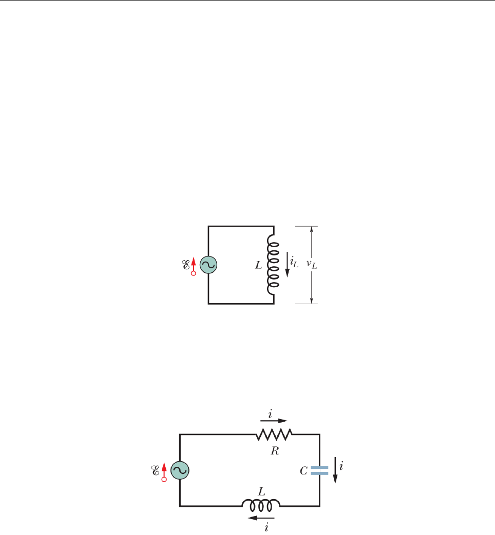 UNIVERSIDADE ESTADUAL DO CENTRO OESTE Engenharia de Alimentos - Eletrotécnica Lista de Exerćıcios - Corrente Alternada 1. Uma resistência de 800 Ω é conectado a um gerador com ε = 220 V . Calcule a corrente elétrica I, o ângulo de fase ϕ e desenhe o diagrama de fasores. R: 0,25 A 2. Para um circuito composto por um capacitor de 15 µF e um gerador de 36 V e f = 60 Hz, determine: (a) a reatância capacitiva, (b) a amplitude da corrente e (c) o âgulo de fase. R: (a) 176,8 Ω e (b) 0,2 A 3. Para o circuito abaixo, L = 250 mH, ε = 40 V e f = 60 Hz. (a) Qual é a diferença de potencial vL entre os terminais do indutor e qual é o valor de VL? (b) Qual é a corrente iL no circuito e qual o valor de IL? (c) Desenhe o diagrama de fasores. R: (a) 40sen(377t + 90○) V e (b) 0,4sen(377t) A 4. Na figura abaixo, R = 800 Ω, C = 15 µF , L = 250 mH, f = 60 Hz e ε = 40 V . (a) Qual é a amplitude da corrente? (b) Qual é a constante de fase ϕ? (c) Para qual frequência teŕıamos a máxima amplitude de corrente? R: (a) 49,7 mA, (b) −5,89○ e (c) 82,2 Hz 5. Considere o circuito do exerćıcio anterior, agora com todos os componentes conectados em paralale. (a) Qual é a amplitude da corrente? (b) Qual é a constante de fase? R: (a) 0,2 A e (b) −75,8○ 6. Uma tensão de 110 V é aplicada à dois resistores de 5 Ω e de 15 Ω ligados em série. Calcule a corrente e a queda de tensão através de cada resistência. Faça o diagrama de fasores. R: 5,5 A, V5 Ω = 27,5 V e V15 Ω = 82,5 V 7. Um motor consome 1,4 kW e 7,8 A de uma linha de 220 V e 60 Hz. Qual deverá ser a capacitância de um capacitor ligado em paralelo a fim de se obter um FP = 1? R: 54,3 µF 8. Um motor ca funcionando com 75% de FP , retirando 8 A de uma linha de 110 V . Calcule a potência aparente e a potência real. R: 880 V A e 660 W 9. Qual deve ser o valor da capacitância do capacitor a ser acoplada em cada um dos motores mostrados na figura abaixo de modo a se obter FP = 1? Aqui, 1 cv = 735,5W e 1 hp = 745,7W . R: (a) 14,9 mF , (b) 20,3 µF , (c) 208 µF e (d) 41,96 µF 10. Um motor funcionando com 85% de FP consome 300 W de uma linha de 110 V . Qual é a corrente retirada da rede? R: 3,2 A 11. Um circuito RLC série possui uma frequência de ressonância de 42 Hz. Quando uma fonte de tensão ac com ε = 32 V e frequência de 91 Hz é conectada ao circuito, ele apresenta uma impedância de 78 Ω e uma fase ϕ = 24,5○. Com base nestas informações, determine o valor de (a) R, (b) L e (c) C. R: (a) 71 Ω, (b) 71,9 mH e (c) 199,7 µF 12. O gráfico abaixo mostra o comportamento da corrente I em um circuito RLC série em função da frequência f . Considerando L = 149 mH e ε = 32 V , determine (a) C e (b) R. R: (a) 272 µF e (b) 8 Ω 13. O circuito RL da figura é alimentado por uma fonte ca, cuja tensão é descrita pela expressão v = 12sen(312t) V . Considerando L = 450 mH, (a) determine o valor de R para o qual a tensão sobre o resistor estará atrasada de 35○ em relação a tensão da fonte de alimentação. (b) Para esta situação, qual será o valor de VR? Dica: considere um circuito RLC com C = 0. R: (a) 200,5 Ω e (b) 9,8 V 14. Um gerador fornece ε = 120 V a f = 60 Hz ao circuito mostrado abaixo. Quando a chave S é mantida na posição mostrada, observa-se que a tensão do gerador está atrasada em relação a corrente de 20○. Com a chave na posição 1, tem-se um adiantamento da tensão de 10○ e, com a chave na posição 2, é medida uma corrente de amplitude igual a 2 A no circuito. Determine, para este circuito, os valores de (a) R, (b) L e (c) C. R: (a) 165 Ω, (b) 316 mH e (c) 14,8 µF 15. Para um circuito RLC série, a amplitude da tensão aplicada é ε = 125 V e a amplitude da corrente no circuito é 3,2 A. Se a tensão está atrasada em relação a corrente de 56,3○, determine os valores de (a) Z e (b) R do circuito. R: (a) 31,9 Ω e (b) 21,7 Ω