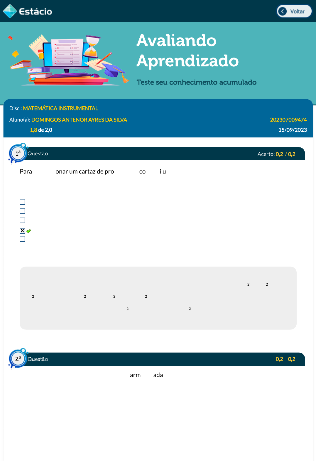 Aluno(a): DOMINGOS ANTENOR AYRES DA SILVA 202307009474