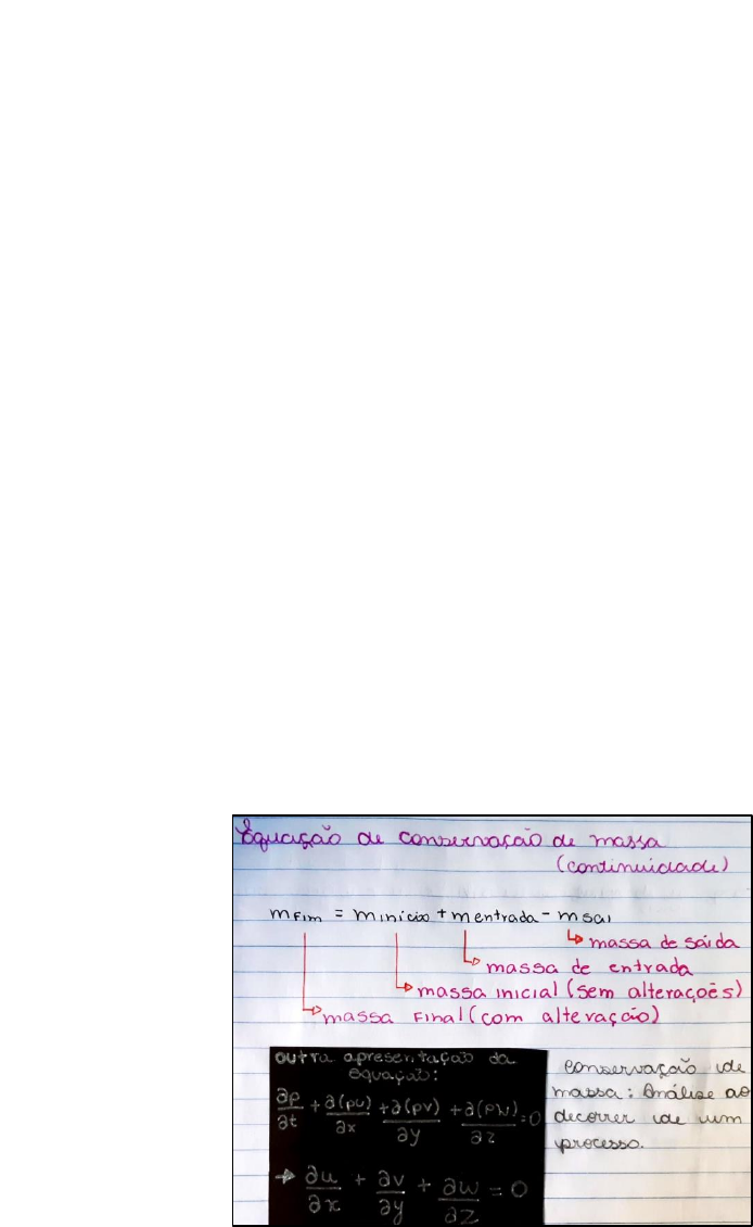Pós Aula 01 - 23/02/2021 1- O que diferencia um fluido de um sólido? R.: Os fluidos se diferenciam principalmente em relação a estrutura molecular, pois as mesmas tem um espaçamento e liberdade de movimento, por este motivo os fluidos sofrem deformação continua sob a ação de um esforço, ao contrário dos sólidos que a deformação é interrupta. Os fluidos também apresentam algumas características próprias como: volume pouco alterado, apresenta fluidez, pode formar gotas e bolhas e apresenta membrana elástica. 2- O que diferencia os líquidos dos gases? R.: Os gases apresentam menores forças coesivas, a formação molecular apresenta moléculas mais afastadas (consequentemente com mais movimentação) e deformam continuamente até encontrarem parede de confinamento. Os gases também apresentam características como: o volume coincide com o volume do recipiente, apresenta fluidez e tem volume densidade e forma variáveis. 3- O que é um sistema? R.: É certa quantidade fixa e definida de matéria. No qual não há fluxo de massa, já o volume pode variar. 4- O que é um volume de controle? R.: É a região volumétrica arbitrária do espaço através do qual o fluido escoa, ou seja, é uma determinada região delimitada onde uma determinada quantidade de matéria é observada. 5- Explique a equação de conservação de massa (continuidade). 6- O que estabelece a equação da conservação de momentum? 7- Explique a equação da energia. Pós Aula 2 – 02/03/2021 1) Qual é a principal consequência da hipótese do contínuo na Mecânica dos Fluidos? R.: A principal consequência é que qualquer propriedade de um fluido tem valor definido (densidade, temperatura, entre outras) e qualquer fluido pode ser considerado um contínuo, sem variações das propriedades. 2) Quais são as duas principais condições em que a hipótese do contínuo falha na Mecânica dos Fluidos? R.: Em gases rarefeitos (moléculas muito distantes entre si) e no caso de volumes de controle de dimensões moleculares (volume pequeno). 3) O que acontece com a densidade dos líquidos quando se aumenta a temperatura? E com a desidade dos gases? R.: Nos gases a densidade diminui, pois a desidade é inversamento proporcional a temperatura. ↑ 𝑡𝑒𝑚𝑝𝑒𝑟𝑎𝑡𝑢𝑟𝑎 = ↓ 𝑑𝑒𝑛𝑠𝑖𝑑𝑎𝑑𝑒 ↓ 𝑡𝑒𝑚𝑝𝑒𝑟𝑎𝑡𝑢𝑟𝑎 = ↑ 𝑑𝑒𝑛𝑠𝑖𝑑𝑎𝑑𝑒 No caso dos líquidos a variação é pouco significante e no caso de aumento ou diminuição de temperatura não é possivel prever a variação da densidade; com exceção da água. 4) O que acontece com a densidade dos líquidos quando se diminui a pressão? E com a densidade dos gases? R.: Em gases a variação da pressão (aumento ou diminuição) é inversamente proporcional a densidade, ou seja, quando se diminui a pressão a densidade aumenta. Em líquidos a varição da pressão (aumento ou diminuição) é desprezível. 5) O que é a viscosidade de um fluido? R.: Propriedade difusa de transporte de quantidade de movimento linear, em outras palavras é a resistência de um fluido ao escoamento. 6) Como se comporta a viscosidade de líquidos e de gases com o aumento da temperatura? R.: Nos liquídos com o aumento da temperatura a viscosidade diminui. Nos gases a viscosidade aumenta com o aumento da temperatura. 7) Defina fluidos Newtonianos. Defina fluidos não-Newtonianos. R.: Fluidos newtonianos são fluidos que em seu comportamento a taxa de viscosidade é constante e a taxa de cisalhamento é proporcional ao gradiente de velocidade. Os fluidos não newtonianos a relação entre a taxa de deformação e a tensão de cisalhamento não é constante. Exemplos: Pasta de dente e mistura de água mais amido de milho. 8) O que são condições de não deslizamento e de continuidade da temperatura? R.: É quando ocorre um processo chamado “Equilíbrio com a fronteira”, é como se um fluido em relação a sua parede estivessem em equilíbrio (em relação a temperatura, velocidade, etc). Pós Aula 3 – 09/03/2021 1) Existe uma grande variedade de tipos de problemas sobre o escoamento de fluidos e cada um deles requer uma visão adequada. Dessa forma, é conveniente saber descrevê- los e classificá-los. Considere o escoamento descrito: ar, a 20 °C (v = 1,5x10 m²/s). escoa em regime permanente, com velocidade de 20 m/s, por uma tubulação com diâmetro constante de 100 mm. Sobre esse escoamento, avalie as afirmações a seguir: I. O escoamento é incompressível. II. O escoamento é estacionário. III. O escoamento é laminar. E correto o que se afirmar em: a) I, apenas. b) II, apenas, c) I e II, apenas. d) II e III, apenas e) I, II e II 2) Crie um mapa mental sobre a classificação dos escoamentos. 2 Pós Aula 04 – 16/03/2021 1) Um tanque aberto para a atmosfera armazena glicerina. a) Determine a pressão de um elemento fluido a uma profundidade de 20 cm. b) Determine a pressão manométrica neste mesmo ponto. 2) Para a medição do nível de um tanque de água é utilizada uma coluna de mercúrio, conforme mostrado na figura abaixo. Determine o nível do tanque (ℎ𝑡). 3 Pós Aula 05 – 23/03/2021 1) Determine a pressão absoluta no bulbo de Álcool (ρálcool = 789 kg/𝑚3). 4 Pós Aula 06 – 30/03/2021 1) O manômetro A mede a pressão manométrica 𝑃𝐴𝐺 . Determine as elevações das colunas de fluido y (h1) e de fluido z (h2) nos tubos piezométricos B e C abertos para a atmosfera. (Dica: utilize a pressão da interface y/z como referência para determinar h1 e o fundo do tanque para determinar h2). 5 Pós Aula 07 – 06/04/2021 1) Defina vazão mássica e vazão volumétrica. R.: Vazão mássica (ṁ) é a quantidade em massa de um fluido que escoa através de uma área em um intervalo de tempo, podendo ser apresentada nas seguintes unidades: kg/s; kg/h; t/h; lb/h. Fórmula: 6 Vazão volumétrica é o volume de um fluido que escoa através de certa secção 