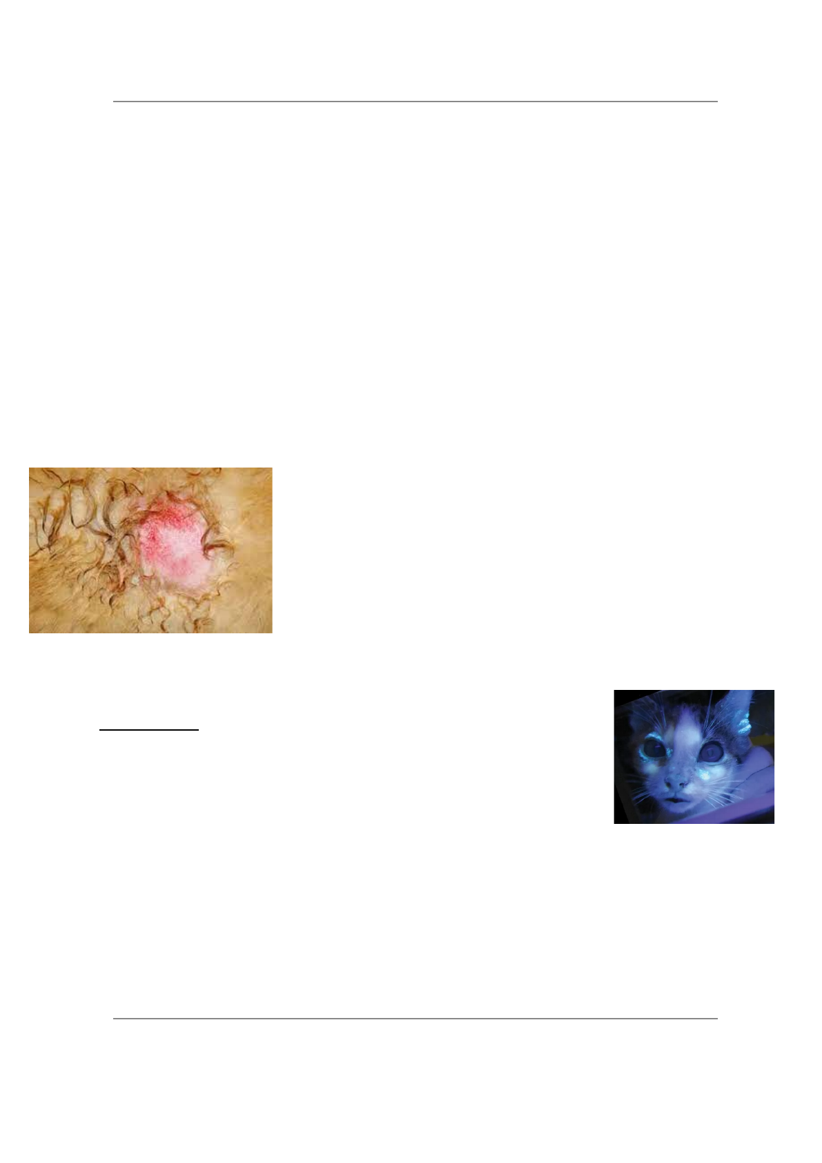 dermatologia de cães & gatos As principais funções da pele são: secreção glandular, produção de anexos (unhas e pelo), barreira (água e eletrólitos), proteção contra agentes externos, regulação térmica, percepção sensorial, movimento e forma, ação antimicrobiana, produção de vitamina D e pigmentação. ➔ quem tem uma barreira cutânea defeituosa não tem toda a proteção contra os agentes externos – faz proteção contra agentes externos e impede saída de água – a pele dos animais que tem essas barreiras defeituosas é mais seca – caso de pele ressecada. O cão e o gato não têm glândulas sudoríparas por todo o corpo, então eles não suam tanto, perdendo calor pela respiração, apesar de possuírem glândulas sebáceas. A pele do cão apresenta 5 camadas e as glândulas sudoríparas exócrinas estão concentradas apenas nos planos nasal, coxins palmares e plantares. As principais bactérias que acometem os animais domésticos são Staphylococcus e Streptococcus (gato). Os principais problemas apresentados por animais com dermatopatias são crostas, prurido, úlceras, entre outros. O diagnóstico clínico irá levar em conta fatores como idade, raça, sexo (cio; estressa), anamnese e histórico (ambiente, tratamentos anteriores, doenças concomitantes, curso da doença, aspecto inicial e atual das lesões e presença de prurido ou ectoparasitas). No geral, as doenças de pele não apresentam evolução aguda, com excessão da hot spots. ➔ o reflexo otopodal deve ser feito no exame físico (sarna sarcóptica). O diagnóstico, em dermatopatias, utiliza-se dos métodos laboratoriais (como raspado de pele/fita adesiva para detectar ácaros e fungos, com lâmpada de Wood para suspeita de dermatofitose com Microsporum canis, cultura para bactérias ou fungos, citologia feita com PAAF, swab, fita e imprint, biopsia (feita por bisturi ou punch para realizar exame de histopatologia), arrancamento de pelos (ectoparasitas, dermatófitos e estrutura do pelo), esfregaço (citologia), teste intradérmico (atopia) e escovação com pente fino (observar pulgas). Outros testes complementares, para doenças sistêmicas, são: hemograma, bioquímico (perfil hepático e renal), urinálise, radiografia, dosagem hormonal, entre outros. ● em gatos, geralmente realiza-se fita adesiva. ● testes alérgicos não são utilizados para diagnóstico (uso de vacinas e manutenção). ● o propoxur é um inseticida e acaricida da classe dos carbamatos; o ● amitraz é da classe das amidinas, atuando contra ácaros, sarnas e carrapatos: o reversor é a ioimbina. Apresenta efeito residual baixo e efeito knock downmuito rápido. ● os piretroides apresentam efeito residual baixo, devendo ser utilizados como pour on. ● o fipronil é um fenilpirazol e apresenta alto efeito knock down e atua contra carrapatos, pulgas, moscas, sarnas e piolhos. Apresenta efeito residual longo, devido à sua alta lipossolubilidade. Não pode ser utilizado em coelhos! Apresenta alta segurança clínica e pode ser utilizado em filhotes. ● as nitroguanidinas, como dinotefuran e imidacloprida apresentam efeito residual de 4 semanas e atuam contra insetos (pulgas) ● a moxidectina apresenta efeito residual longo e não apresenta efeito knock down. É de efeito sistêmico ● o nitenpiram é da classe das nitroenaminas, não apresenta efeito residual e atua contra pulgas e moscas ● as principais isoxazolinas apresentam alta segurança clínica, efeito residual de 12 semanas e efeito knock down. Atua contra ácaros, pulgas, carrapatos, insetos, sarnas, moscas e piolhos. Os principais princípios ativos são: afoxalaner (Nexgard), furalaner (Bravecto), sarolaner (Simparic) e lotilaner (Credeli). ● o piripoxifen, metoprene e fenoxicarb é um agonista do hormônio infantil, atuando em fases imaturas. Fleegard. dermatoses fúngicas . . . . . . . . . . . . . . . . . . . . . ╰──╮ Os dermatófitos afetam pele, pelos e unhas, afetando cães e gatos de qualquer idade, mas afetando principalmente gatos filhotes ou animais filhotes. São fatores predisponentes idade, estado nutricional e hormonal, maturidade sexual e doença concomitante. Ao contrário, são fatores de resistência a pele e as mucosas e ação antifúngica do suor e secreção sebácea. Esses fungos são queratinofílicos (se alimentam de queratina, causando hipotricose ou alopecia). Os mais comuns sãoMicrosporum e Trichophyton. Podem ser classificados como antropofílicos, zoofílicos (M. canis, sendo mais comum em gatos e T. mentagrophytes) e geofílicos (M. gypseum). Além disso, podem ser denominados como ectothrix (zoofílicos; esporos fora do pelo) ou endothrix (alguns são antropofílicos). ● Em gatos, o Microsporum canis pode ser assintomático/com cronicidade (sem lesões, rarefação pilosa e pequenas descamações). As lesões podem ser levemente elevadas, extensas, irregulares ou circunscritas com certa hiperpigmentação e podem persistir por semanas, meses ou anos. ● Em cães, os portadores “assintomáticos” de Microsporum canis apresentam áreas circulares descamativas e parcialmente alopécicas. ● O Trichophyton é mais comum em ratos. Ocasionalmente pode causar onicomicose (afetar as unhas), reação inflamatória intensa, edema, alopecia, supuração e crostas (piodermite profunda). Os principais sinais clínicos são “tinha” ou área circular de rápido crescimento, alopecia parcial a total, pelos quebradiços, pele seca e descamação, seborreia, infecção bacteriana secundária (incomum), “kerion” ou um nódulo doloroso, pruriginoso ou lesão inflamatória grave, com edema e secreção purulenta. Os sinais dependem da raça, da susceptibilidade individual e do agente causal. Os fungos apresentam crescimento centrífugo (afastando-se do centro), causando lesão anular ou circular. OBSERVAÇÃO . Esporos viáveis são transmitidos pelo contato com animal infectado, ambiente contaminado ou ainda po