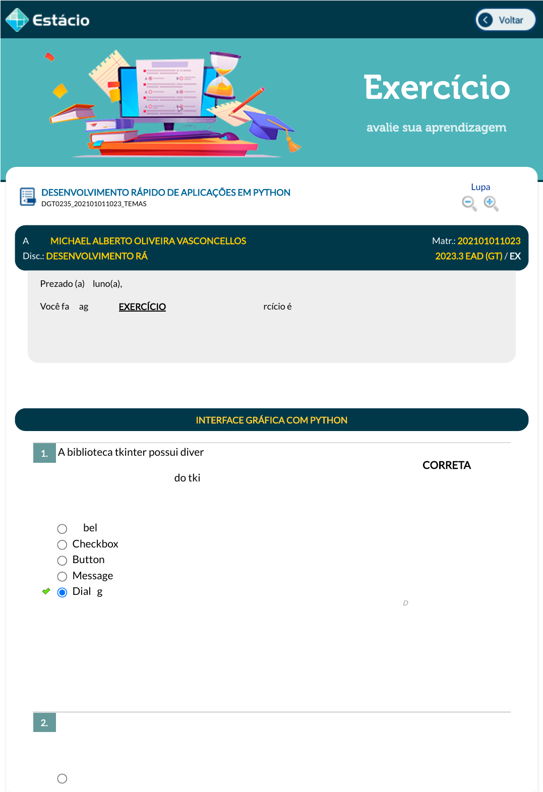 Aluno: MICHAEL ALBERTO OLIVEIRA VASCONCELLOS Matr.: 202101011023