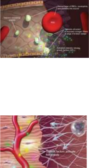 Angelica Araújo 1 Tratamento de Feridas Cutâneas Ferida é uma lesão no tecido em decorrência de um trauma, seja ele mecânico, físico ou térmico, podendo se desenvolver também a partir de uma condição patológica ou fisiológica. Exemplo de condição patológica: doença oncológica, tumor ou neoplasia Exemplo fisiológico: desde um acidente até uma condição por hipertrofia que pode gerar alterações cutâneas Exemplo de uma das fotos: ferida por avulsão, onde a pele é retirada do corpo do animal Características das feridas Uma cavidade anormal no tecido com tamanho e dimensões variadas. Diminuição ou ausência do aporte sanguíneo e nervoso da zona lesada. Os tecidos alterados também podem estar envolvidos com possíveis corpos estranhos, por exemplo um projétil em um animal que foi baleado. Cicatrização das feridas É um processo fisiológico natural, ao menos que tenha algum impedimento do paciente para que isso não ocorra. Esse processo de cicatrização envolver eventos químicos, físicos e celulares, isso tudo para gerar a restauração do tecido ferido a partir da formação no colágeno (que é responsável por repor todo tecido danificado) As 4 fases de cicatrização ocorrem simultaneamente Fases da cicatrização 1) Fase inflamatória Ocorre um quadro de hemorragia, e após essa hemorragia uma série de fatores iram gerar a hemostasia (formação de coágulo e crostas que tem como função proteção da lesão/ dessa descontinuidade cutâneo) e o estímulo para recrutamento de células inflamatórias (especialmente macrófagos) 2) Debridamento ou desbridamento É caracterizada pela limpeza da ferida, onde ocorre um processo chamado proteólise (quebra da camada de colágeno e da fibrose). Além disso, ocorre a participação das células inflamatórias, na fase inflamatória elas são recrutadas e no debridamento faz a função delas de fato EX: Na foto tem um vaso sanguíneo e a borda é onde ocorreu a lesão, então as plaquetas inativas e as hemácias vão estar sendo perdidas que é a parte da hemorragia, a partir desse momento temos a ativação de plaquetas das circulações, e elas iram soltar os fatores de crescimento, e são esses fatores responsáveis por atrair os macrófagos para a região da lesão, e ai começa a ocorre a deposição de fibrina. Aqui começar a ter o fator de crescimento ativado e os macrófagos vindo nessa região para começar a fazer a hemostasia e iniciar a formação do tecido de crescimento para reparação tecidual. Não é algo instantâneo, vai demorando para ter o deposito do fibrocito, diferente dos macrófagos que desde o momento que começar a liberar os fatores de crescimento ele já começa a se direcionar na região para exercer sua função. O macrófago tem desde a função de reparação tecidual para a função de proteção, porque qual quer tipo de tecido, microrganismo ou sutura na região vai tentar começar a fazer fagocitose 3) Fase de reparo Fase de proliferação: formação de fibroblastos (macrófagos), neoangiogênese (formação de novos vasos para irrigarem a região), formação do tecido de granulação, e com esse novo tecido inicia a epitelização e a síntese da matriz extracelular para for esse tecido lesionado (colágeno). Nessa fase também tem a contração da ferida por meio da atuação da actina e miosina (estimulam a contração das bordas da ferida para aproximar). Angelica Araújo 2 Fibroblasto: estimula a formação de colágeno, elastina e proteoglicanos, sendo essas três que iram começar a fazer a deposição de fibrose e tecido colagenoso, formando assim o tecido de granulação que é a casquinha que forma em cima da ferida com intuito de proteger a região de patógenos externos. Os macrófagos e os fatores de crescimento irão gerar a neoangiogênese. Na foto acima conseguimos ver pouca quantidade de vasos sanguíneos, mais depois na imagem ao lado começar a ter muita vascularização no tecido de granulação. Essa neovascularização começa a irrigar a base do tecido de granulação para estimular o crescimento e reformação de um novo tecido cutâneo, e a parte de proteção será perdida depois Esse processo é estimulado pela ação do macrófago na região em conjunto do fator de crescimento. Formação de uma camada epitelial que protege a ferida de bactérias e perda de liquido. Embaixo do tecido de granulação tem a formação de uma camada epitelial, essa camada começa com o crescimento na base da ferida ate fechar completamente o tecido de descontinuidade cutâneo, para concluir todo tecido por baixo e aquela parte de proteger sempre permanecer ali (a casquinha do machucado, sendo a responsável pela ferida em si) 4) Maturação Maturação é onde vai ocorrer a organização do tecido de colágeno na região por meio das fibras de colágeno que iram fazer o remodelamento do colágeno no tecido, gerando assim uma maior resistência, pois quando tem um tecido desorganizado você tem baixa resistência Tem uma diminuição do colágeno tipo 3 e o aumento do colágeno tipo 1 que é mais resistente Há um aumento da quantidade de colágeno na ferida, diminuição da quantidade de fibroblasto. Começar a diminuir a quantidade de vasos sanguíneos que estão sendo irrigados porque já exercerão a função deles de nutrição na ferida para o acumulo de deposição de colágeno, diminuindo assim o colágeno tipo 3 e aumentando o tipo 1. Reduz também os fibroblastos ficando so a constituição da pele que é o tecido colagenoso Mecanismo de cicatrização das feridas Primeira intenção Abre o tecido, sutura e a cicatrização ocorre, por exemplo, em caso de ferida cirúrgica. Um animal que se cortou, o indicado é que fecha por primeira intenção apenas se essa ferida tiver ocorrido em um tempo menor de 6 horas. Para fechar por primeira intenção tem indicações: 1. Tempo de ocorrência menor que 6 horas Angelica Araújo 3 2. Ausência de corpos est