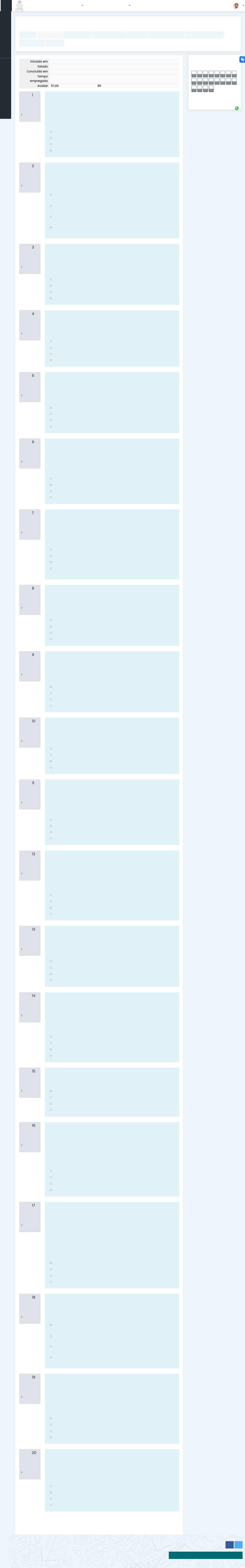 Microbiologia Básica Painel Meus cursos CURSOS FUNEC Graduação - EAD Aluno EAD JUNÇÕES DE TURMA Microbiologia Básica AVALIAÇÕES PROVA Questão 1 Completo Atingiu 0,00 de 3,00 Marcar questão Questão 2 Completo Atingiu 3,00 de 3,00 Marcar questão Questão 3 Completo Atingiu 3,00 de 3,00 Marcar questão Questão 4 Completo Atingiu 3,00 de 3,00 Marcar questão Questão 5 Completo Atingiu 3,00 de 3,00 Marcar questão Questão 6 Completo Atingiu 3,00 de 3,00 Marcar questão Questão 7 Completo Atingiu 3,00 de 3,00 Marcar questão Questão 8 Completo Atingiu 3,00 de 3,00 Marcar questão Questão 9 Completo Atingiu 3,00 de 3,00 Marcar questão Questão 10 Completo Atingiu 3,00 de 3,00 Marcar questão Questão 11 Completo Atingiu 3,00 de 3,00 Marcar questão Questão 12 Completo Atingiu 3,00 de 3,00 Marcar questão Questão 13 Completo Atingiu 3,00 de 3,00 Marcar questão Questão 14 Completo Atingiu 3,00 de 3,00 Marcar questão Questão 15 Completo Atingiu 3,00 de 3,00 Marcar questão Questão 16 Completo Atingiu 3,00 de 3,00 Marcar questão Questão 17 Completo Atingiu 3,00 de 3,00 Marcar questão Questão 18 Completo Atingiu 3,00 de 3,00 Marcar questão Questão 19 Completo Atingiu 3,00 de 3,00 Marcar questão Questão 20 Completo Atingiu 3,00 de 3,00 Marcar questão Terminar revisão Iniciado em Tuesday, 19 Sep 2023, 14:54 Estado Finalizada Concluída em Tuesday, 19 Sep 2023, 18:09 Tempo empregado 3 horas 14 minutos Avaliar 57,00 de um máximo de 60,00(95%) A colonização do solo pelas hifas do fungo aumenta, consideravelmente, o volume de solo explorado, contribuindo na absorção de água e nutrientes, notadamente aqueles pouco móveis no solo, como o fósforo. Associações de fungos com raízes de plantas denomina-se: Escolha uma opção: a. Cogumelo. b. Micorrizas. c. Micélio. d. Hifas. Assinale a alternativa incorreta: Escolha uma opção: a. A colonização do solo pelas hifas de fungos contribui na absorção de água e nutrientes pelas plantas. b. Solos com elevadas populações de microrganismos podem ser um eficiente mecanismo de proteção às plantas contra organismos patogênicos. c. A cobertura vegetal não representa uma fonte de nutrientes, pela deposição dos resíduos orgânicos na superfície do solo. d. Solos degradados, com baixo teor de matéria orgânica e com repetitividade da mesma cultura, não favorecem o estabelecimento de patógenos. Baseado na maneira pela qual os organismos obtêm alimentos, Robert H. Whittaker classificou os organismos vivos em 5 reinos. Assinale a alternativa que contém o reino que as bactérias estão inseridas. Escolha uma opção: a. Reino Fungi. b. Reino Animal. c. Reino Protista. d. Reino Monera. A chamada “estrutura procariótica” apresentada pelas bactérias nos indica que estes seres vivos são: Escolha uma opção: a. destituídos de membrana plasmática. b. formadores de minúsculos esporos. c. dotados de organelas membranosas. d. desprovidos de membrana nuclear. Os fungos estabelecem relações ecológicas importantes, como é o caso da associação entre fungos e algas verdes ou cianobactérias. Essa associação mutualística é denominada de: Escolha uma opção: a. micorrizas. b. ectomicorrizas. c. corais. d. líquens. Os microrganismos também possuem muitas aplicações comerciais. Qual a substância produzida a partir de processos microbiológicos e que foi muito importante para a fabricação de cordite (tipo de pólvora sem fumaça utilizada em munições)? Escolha uma opção: a. Álcool. b. Acetona. c. Gás carbônico. d. Cachaça. A teoria da abiogênese, também chamada de teoria da geração espontânea, foi derrubada após experimentos de pesquisadores como Louis Pasteur, que realizou um trabalho considerado conclusivo para vários estudiosos. Louis Pasteur utilizou em seu experimento: Escolha uma opção: a. alguns frascos, abertos e fechados, contendo carne em seu interior. b. roupas sujas de suor como forma de atrair formas de vida. c. um balão de vidro com gargalo alongado e caldo nutritivo em seu interior. d. uma mistura de metano, amônia, hidrogênio e vapor de água no interior de um balão de vidro. Enquanto que na produção primária as substâncias orgânicas e inorgânicas são acumuladas e a energia é armazenada quimicamente, nos processos de decomposição: Escolha uma opção: a. elas convertidas em compostos xenobióticos. b. elas são liberadas, ou então mineralizadas. c. elas são absorvidas. d. elas são consumidas. O solo é constituído de material inorgânico e orgânico organizado em partículas apresentando espaços ocupados pela água e o ar. Os principais grupos de microrganismo presentes no solo são: Escolha uma opção: a. os fungos e as bactérias. b. os fungos e os nematoides. c. as bactérias e os vírus. d. os protozoários e os helmintos. Fator que influencia diretamente a atividade biológica dos solos, participando na difusão de nutrientes e na motilidade microbiana: Escolha uma opção: a. Temperatura. b. Sais minerais. c. Água. d. pH. A presença de núcleo bem definido caracteriza uma célula eucarionte, diferenciando-a de uma célula procarionte. Entre as alternativas a seguir, marque aquela que indica o nome correto da membrana que separa o material genético do citoplasma. Escolha uma opção: a. parede celular. b. carioteca. c. membrana plasmática. d. tonoplasto. Em 1665, após observar uma fina fatia de cortiça em um microscópio rudimentar, o inglês Robert Hooke declarou que as menores unidades estruturais da vida eram “pequenas caixas” ou “células”. Posteriormente, utilizando seu microscópio aprimorado, Hooke observou células individuais. A descoberta de Hooke marcou o início: Escolha uma opção: a. da microscopia. b. da célula procariótica. c. da teoria celular. d. dos microrganismos. Algumas células procarióticas possuem flagelos, que são longos apêndices filamentosos que variam de acordo com o número e a distribuição. Q