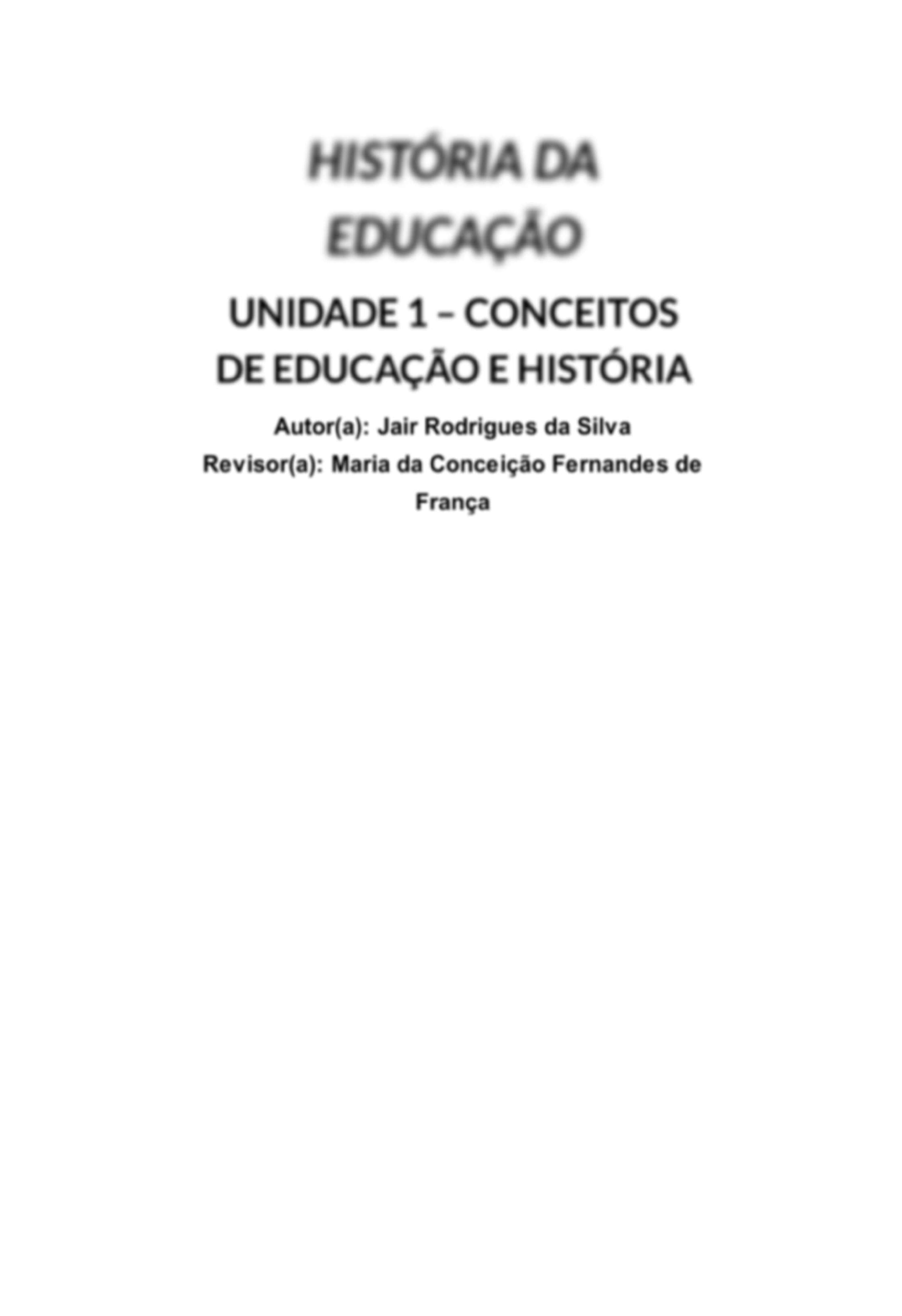 20/09/2023, 21:59 Unidade 1 - História da educação https://student.ulife.com.br/ContentPlayer/Index?lc=xFhl8aqeeUrQTpisC7AD6A%3d%3d&l=rPjdB7QlMx7kKjGp3GRBcg%3d%3d&cd=oywVtNTC3foSvZi… 1/39 HISTÓRIA DAHISTÓRIA DA EDUCAÇÃOEDUCAÇÃO UNIDADE 1 – CONCEITOSUNIDADE 1 – CONCEITOS DE EDUCAÇÃO E HISTÓRIADE EDUCAÇÃO E HISTÓRIA Autor(a): Jair Rodrigues da SilvaAutor(a): Jair Rodrigues da Silva Revisor(a): Maria da Conceição Fernandes deRevisor(a): Maria da Conceição Fernandes de FrançaFrança IN ICIAR Introdução Caro(a) estudante, Nesta unidade, vamos conhecer e debater os conceitos de educação e história. Nosso objetivo maior nesta primeira unidade será o de refletir sobre a história da educação. Como futuros educadores, é de fundamental importância conhecermos os principais processos históricos que fizeram a educação ser constituída como vemos hoje. Portanto vamos abordar períodos históricos da evolução educacional e, ao longo da disciplina, nos deteremos na história da educação brasileira. Inicialmente, é necessário que nos identifiquemos como seres históricos que somos. Isso porque produzimos e vivenciamos história durante nossa ação de ser e estar no mundo. Somos sujeitos históricos à medida que nos relacionamos em sociedade e dela 20/09/2023, 21:59 Unidade 1 - História da educação https://student.ulife.com.br/ContentPlayer/Index?lc=xFhl8aqeeUrQTpisC7AD6A%3d%3d&l=rPjdB7QlMx7kKjGp3GRBcg%3d%3d&cd=oywVtNTC3foSvZi… 2/39 1.1 Conceitos de educação e história e a importância de estudar a história da Educação para a ação dos futuros educadores Nessa primeira seção, vamos abordar os conceitos de educação e, posteriormente, de história. Conceituar esses termos têm grande significado para a formação de educadores e educadoras. Abordaremos, em seguida, a importância do estudo da história da educação, sendo esse nosso objetivo maior em toda a disciplina: realizar a reflexão sobre como os processos históricos influenciam nos modos como concebemos a educação. Acreditamos que é por meio da consciência crítica, tanto do que é educação, quanto do que é história e, principalmente, sobre a importância de estudar a história da educação, que futuros docentes podem exercer sua prática em sala de aula de modo efetivo. 1.1.1 Conceituando educação Quais os significados para o termo educação ? A palavra permite diversas interpretações e significados a depender do contexto em que se utiliza. De modo geral, educação se refere ao ensino . Seja esse desenvolvido em instâncias formais ou não formais. De fato, é regra geral o entendimento que educação não se restringe apenas à escola. Esse conceito de educação, que não é restrito à escola, é o que vamos discutir na seção. Pensando nas sociedades pré-históricas, ou seja, nas sociedades tribais, não havia uma participamos. Conhecer a história da educação é uma importante etapa de formação dos professores. É necessário ter consciência crítica dos processos evolutivos e dos diferentes momentos históricos da educação, o que sem dúvidas nos conduziu aos sistemas de ensino e os modos de conceber as atividades de ensino-aprendizagem como conhecemos e praticamos na atualidade. Bons estudos! 20/09/2023, 21:59 Unidade 1 - História da educação https://student.ulife.com.br/ContentPlayer/Index?lc=xFhl8aqeeUrQTpisC7AD6A%3d%3d&l=rPjdB7QlMx7kKjGp3GRBcg%3d%3d&cd=oywVtNTC3foSvZi… 3/39 organização de escola tal como conhecemos atualmente e nem parecida. Todavia podemos dizer seguramente que a educação era presente no cotidiano dessas sociedades. Isso porque as pessoas passavam o conhecimento sobre a vida como modo de sobrevivência. O conhecimento era passado a partir das interações familiares e em comunidade. Os mais novos aprendiam lições importantes para sua própria sobrevivência. Lições referentes aos alimentos, perigos etc. Sendo assim, a educação era exercida como atividade fundamental para a manutenção da vida. Nesse contexto, não havia um lugar privilegiado para a atividade de ensino-aprendizado, assim, podemos entender que se tratava de uma educação não formal, como ainda é comum nos dias de hoje. Ainda sobre sociedades tribais, Aranha (2006) disse: Estamos tão acostumados com a escola que às vezes nos parece estranho o fato de que essa instituição não existiu sempre, em todas as sociedades. Nos demais capítulos, veremos as condições do aparecimento da escola, as transformações ao longo do tempo, e também a relação indissolúvel entre ela e o modo pelo qual os indivíduos interagem para produzir a sua existência (ARANHA, 2006, p. 32). É possível entender que, de modo geral, as sociedades primitivas não possuíam um Estado, sem correr risco de cair no etnocentrismo, que é o risco de julgar uma sociedade tendo como referência a cultura, como menciona Aranha (2006). Dizemos que as sociedades antigas não tinham necessidade de instituições como bancos, hospitais, escolas etc. Diante dessa perspectiva, essas sociedades não se ressentiam da falta dessas instituições, incluindo a escola. Quando se tratava da educação das crianças, o modo de ensino era por meio do exemplo, da atividade prática. Em um ambiente assim, não havia um ente especial destinado à tarefa de ensinar. Aranha (2006) ressalta que: Nas comunidades tribais as crianças aprendem imitando os gestos dos adultos nas atividades diárias e nos rituais. Tanto nas tribos nômades como naquelas que já se sedentarizaram, para se ocupar com a caça, a pesca, o pastoreio ou a agricultura, as crianças 20/09/2023, 21:59 Unidade 1 - História da educação https://student.ulife.com.br/ContentPlayer/Index?lc=xFhl8aqeeUrQTpisC7AD6A%3d%3d&l=rPjdB7QlMx7kKjGp3GRBcg%3d%3d&cd=oywVtNTC3foSvZi… 4/39 aprendem “para a vida e por meio da vida”, sem que ninguém esteja especialmente destinado para a tarefa de ensinar (ARANHA, 2006, p. 35). Entretanto, como f