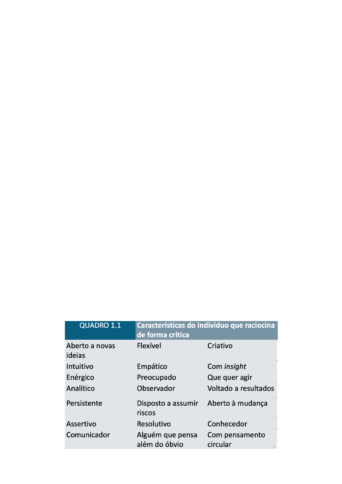 evidências, eles raciocinam criticamente acerca de argumentos e refletem sobre o processo