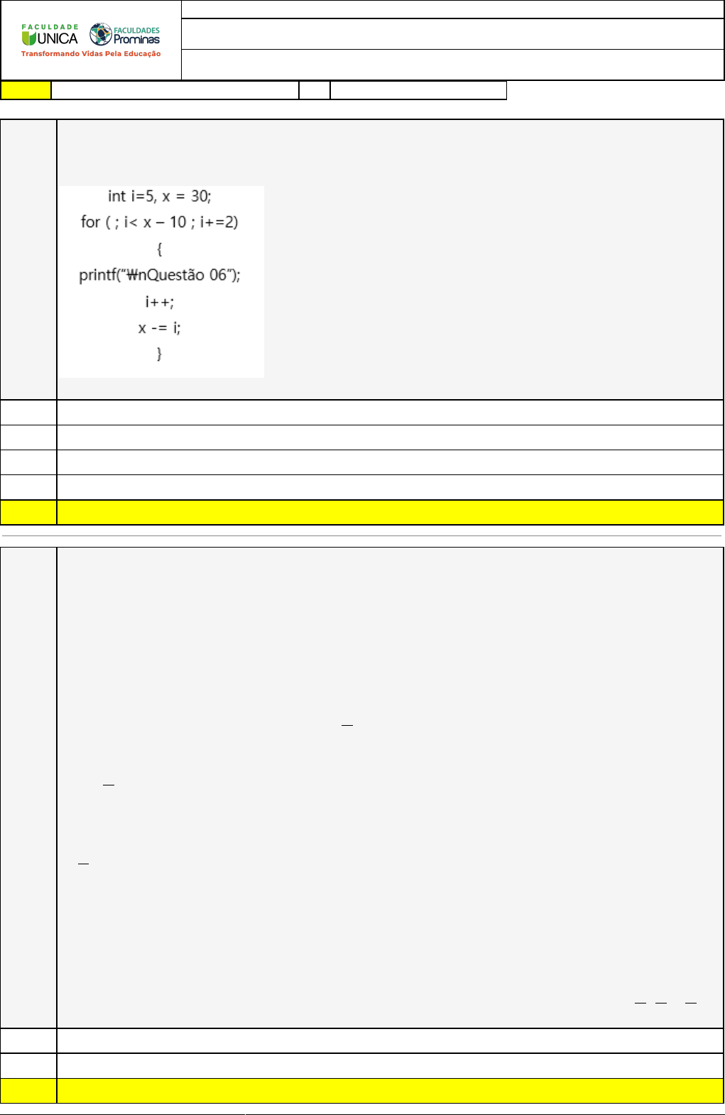 Respostas corretas são marcadas em amarelo X Respostas marcardas por você.