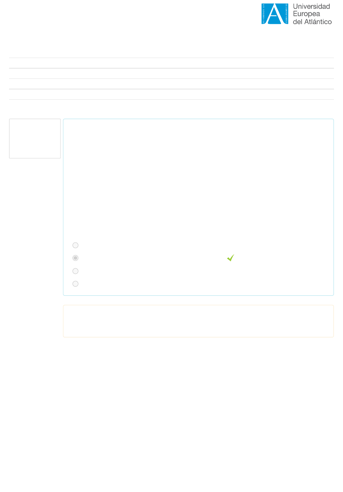 Página principal ► FPCFP###2020-vEA ► FP090 ► Tópico 3 ► Exame Pergunta 1 Correta Nota: 1,00 em 1,00 Iniciada Tuesday, 12 September 2023, 22:46 Estado Terminada Terminada Tuesday, 12 September 2023, 23:19 Tempo gasto 32 minutos 51 segundos Nota 8,27 num máximo de 10,00 (83%) Analise a seguinte situação educacional e marque a opção que considera correta (existe apenas uma): Ao planejar as aulas de inglês, que serão ministradas aos alunos do ensino fundamental, Luisa promove atividades entre os alunos que, além de incentivar o trabalho em grupo e o pensamento coletivo, pretende que os comportamentos estabelecidos e validados na sala de aula também se estendam para fora do ambiente escolar. Luisa se preocupa com a aprendizagem para além dos livros, para que seus alunos possam realmente viver em sociedade e aprendam a ser e a fazer na comunidade onde compartilham com outras pessoas. Essas competências estão diretamente relacionadas com: Selecione uma opção de resposta: a. Os momentos da avaliação. b. Os 4 pilares da educação, de Jacques Delors. CORRETA. c. Os 16 hábitos da mente, de Kallick e Costa. d. Os 7 conhecimentos de Morin. Respuesta correcta A resposta correta é: Os 4 pilares da educação, de Jacques Delors. https://campus2.funiber.org/ https://campus2.funiber.org/course/view.php?id=5082 https://campus2.funiber.org/course/view.php?id=3100 https://campus2.funiber.org/course/view.php?id=3100#section-3 https://campus2.funiber.org/mod/quiz/view.php?id=154646 Pergunta 2 Correta Nota: 1,00 em 1,00 Pergunta 3 Correta Nota: 1,00 em 1,00 Complete a seguinte frase selecionando a opção correta: é a capacidade que exige intencionalidade nas eleições, através da demonstração de conhecimentos, habilidades, competências e valores. Selecione uma opção de resposta: a. Agência. CORRETA. b. Identidade Integrada. c. Competência. d. Nenhuma das anteriores. Respuesta correcta A resposta correta é: Agência. Em relação às concepções da avaliação e às competências para o século 21, relacione os elementos da coluna da esquerda com as opções apresentadas no menú. Por ser uma classificação numérica, não fornece dados aprofundados sobre os conhecimentos realmente aprendidos. Medição da efetividade da própria atividade docente e seu impacto no quanto os alunos aprendem. Ajustes e melhoria da intervenção educativa. Procedimento contínuo, integral e sistemático que culmina na medição de realizações previamente estabelecidas. Respuesta correcta A resposta correcta é: Por ser uma classificação numérica, não fornece dados aprofundados sobre os conhecimentos realmente aprendidos. → Rendimento Acadêmico, Medição da efetividade da própria atividade docente e seu impacto no quanto os alunos aprendem. → Por que avaliamos?, Ajustes e melhoria da intervenção educativa. → Os momentos da avaliação, Procedimento contínuo, integral e sistemático que culmina na medição de realizações previamente estabelecidas. → O que é avaliar? Rendimento Acadêmico Por que avaliamos? Os momentos da avaliação O que é avaliar? Pergunta 4 Parcialmente correta Nota: 0,60 em 1,00 Indique se as seguintes declarações sobre a avaliação somativa são falsas ou verdadeiras: É uma avaliação totalmente desconectada da avaliação diagnóstica e da avaliação formativa. Não é uma proposta de ajuste, a fim de responder às necessidades apresentadas pelos alunos. Por ser tratado de forma independente, nem sempre fornece dados e balanços confiáveis sobre os resultados obtidos em um processo de aprendizagem. Apresenta como um de seus objetivos a classificação e distribuição dos alunos, de acordo com o desempenho apresentado. Avalia os alunos com base em padrões de qualidade pré- determinados, para ajudá-los a saber onde devem melhorar com base nesses referencias. Respuesta parcialmente correcta. Selecionou 3 respostas corretas. A resposta correcta é: É uma avaliação totalmente desconectada da avaliação diagnóstica e da avaliação formativa. → FALSO., Não é uma proposta de ajuste, a fim de responder às necessidades apresentadas pelos alunos. → VERDADEIRO., Por ser tratado de forma independente, nem sempre fornece dados e balanços confiáveis sobre os resultados obtidos em um processo de aprendizagem. → FALSO., Apresenta como um de seus objetivos a classificação e distribuição dos alunos, de acordo com o desempenho apresentado. → VERDADEIRO., Avalia os alunos com base em padrões de qualidade pré-determinados, para ajudá-los a saber onde devem melhorar com base nesses referencias. → VERDADEIRO. FALSO. VERDADEIRO. VERDADEIRO. VERDADEIRO. FALSO. Pergunta 5 Parcialmente correta Nota: 0,67 em 1,00 Pergunta 6 Incorreta Nota: 0,00 em 1,00 Em relação às características da avaliação formativa, indique as afirmações corretas (pode haver mais de uma opção correta): Selecione uma ou mais opções de resposta: a. Incentive o trabalho além do ambiente de sala de aula. CORRETA. b. A diversificação de atividades, que possibilita a participação de todos os alunos, fornece dados enriquecedores sobre a aprendizagem desenvolvida. CORRETA. c. Requer o planejamento e a elaboração de instruções que controlem como será concebida e o comportamento que apresentará ao longo do processo de avaliação. d. Avalia a aprendizagem do aluno no final do processo de ensino. Respuesta parcialmente correcta. Selecionou 2 respostas corretas. Respostas corretas: Incentive o trabalho além do ambiente de sala de aula., A diversificação de atividades, que possibilita a participação de todos os alunos, fornece dados enriquecedores sobre a aprendizagem desenvolvida., Requer o planejamento e a elaboração de instruções que controlem como será concebida e o comportamento que apresentará ao longo do processo de avaliação. A seguir, é apresentada uma situação educativa concreta. Das opções a seguir, escolha aquela que demo