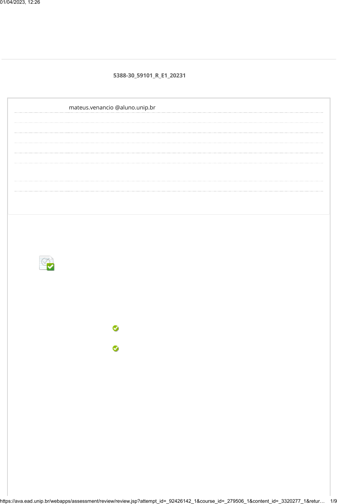 01/04/2023, 12:26 Revisar envio do teste: QUESTIONÁRIO UNIDADE I – ... https://ava.ead.unip.br/webapps/assessment/review/review.jsp?attempt_id=_92426142_1&course_id=_279506_1&content_id=_3320277_1&retur… 1/9 Revisar envio do teste: QUESTIONÁRIO UNIDADE I ADMINISTRAÇAO INTERDISCIPLINAR 5388-30_59101_R_E1_20231 CONTEÚDO Usuário mateus.venancio @aluno.unip.br Curso ADMINISTRAÇAO INTERDISCIPLINAR Teste QUESTIONÁRIO UNIDADE I Iniciado 01/04/23 12:12 Enviado 01/04/23 12:25 Status Completada Resultado da tentativa 5 em 5 pontos Tempo decorrido 13 minutos Resultados exibidos Todas as respostas, Respostas enviadas, Respostas corretas, Comentários, Perguntas respondidas incorretamente Pergunta 1 Resposta Selecionada: a. Respostas: a. b. c. d. e. Comentário da resposta: A administração é a coordenação de recursos e pessoas para a realização de tarefas, ou seja, administrar é operacionalizar as atividades para o atingimento de determinado objetivo (SCHULTZ, 2016). Em outras palavras, administrar é o processo de planejar, organizar, liderar e controlar os membros da organização, com os recursos organizacionais disponíveis, para alcançar objetivos especí�cos. Henri Fayol foi o primeiro estudioso a propor as funções e atividades básicas do administrador. De acordo com Fayol, as principais funções administrativas são: Planejar, organizar, comandar, coordenar e controlar. Planejar, organizar, comandar, coordenar e controlar. Prever, liderar, comandar, coordenar e controlar. Planejamento, liderar, administrar recursos humanos, comandar, coordenar e controlar. Planejamento, liderar, administrar recursos humanos, administrar mercado e controlar. Planejamento, liderar, administrar recursos humanos, administrar mercado e administrar �nanças. Resposta: A Comentário: de acordo com Fayol, as principais funções administrativas são prever, organizar, comandar, coordenar e controlar. UNIP EAD BIBLIOTECAS MURAL DO ALUNO TUTORIAISCONTEÚDOS ACADÊMICOS 0,5 em 0,5 pontos http://company.blackboard.com/ https://ava.ead.unip.br/webapps/blackboard/execute/courseMain?course_id=_279506_1 https://ava.ead.unip.br/webapps/blackboard/content/listContent.jsp?course_id=_279506_1&content_id=_3319412_1&mode=reset https://ava.ead.unip.br/webapps/portal/execute/tabs/tabAction?tab_tab_group_id=_10_1 https://ava.ead.unip.br/webapps/portal/execute/tabs/tabAction?tab_tab_group_id=_27_1 https://ava.ead.unip.br/webapps/portal/execute/tabs/tabAction?tab_tab_group_id=_47_1 https://ava.ead.unip.br/webapps/portal/execute/tabs/tabAction?tab_tab_group_id=_29_1 https://ava.ead.unip.br/webapps/portal/execute/tabs/tabAction?tab_tab_group_id=_25_1 https://ava.ead.unip.br/webapps/login/?action=logout 01/04/2023, 12:26 Revisar envio do teste: QUESTIONÁRIO UNIDADE I – ... https://ava.ead.unip.br/webapps/assessment/review/review.jsp?attempt_id=_92426142_1&course_id=_279506_1&content_id=_3320277_1&retur… 2/9 Pergunta 2 Resposta Selecionada: b. Respostas: a. b. c. d. e. Comentário da resposta: O planejamento pode ser de�nido como um processo de estabelecer objetivos ou metas. Em outras palavras, o planejamento é um processo desenvolvido para que uma situação desejada possa ser alcançada da melhor maneira possível. Alfred Chandler, entre o �nal da década de 1940 e início dos anos 1960, desenvolveu níveis administrativos, conforme segue: I - O planejamento estratégico compreende a organização como um todo e a sua relação com o ambiente externo. A alta administração é responsável pela elaboração do planejamento estratégico, que é caracterizado por uma visão de longo prazo, ou seja, acima de cinco anos. Os planos estratégicos estabelecem os objetivos e a missão da organização, assim como de�nem estratégias para o alcance desses objetivos, examinando as alternativas existentes e determinando as necessidades de recursos. II - O planejamento tático converte os planos estratégicos em ações mais especializadas, como as de recursos humanos, marketing, produção e �nanças. A gerência média é responsável pela elaboração do planejamento tático, que é caracterizado por uma visão de médio prazo, ou seja, entre um e três anos. Os planos táticos otimizam as áreas e departamentos da organização, decompondo objetivos e políticas estabelecidos no planejamento estratégico. III - O planejamento operacional são os planos de trabalho das áreas que visam detalhar os planos táticos em forma de atividades ou tarefas a serem desempenhadas nas diversas áreas da organização. Gerentes de primeira linha, supervisores, chefes de setores e cargos a�ns são responsáveis pela elaboração do planejamento operacional, que é caracterizado por uma visão de curto prazo, ou seja, de até um ano. Os planos operacionais compreendem a parte mais detalhada do planejamento, evidenciando um �uxo de trabalho diário, com tarefas menores e executáveis. IV - O planejamento estratégico da gestão de RH (PEGRH), para ser entendido, é preciso compreender o seu alicerce: o Planejamento Estratégico Empresarial (PEE). O PEE de�ne a identidade da organização, traça os objetivos organizacionais e suas estratégias. Cada unidade organizacional estabelece seus planos de ação, de�nindo seus indicadores para a mensuração de resultados. V - O planejamento de marketing é uma das ferramentas mais importantes do processo de marketing, pois fornece direção e foco para uma marca, produto ou empresa. O plano documenta como a organização alcançará seus objetivos por meio de estratégias e táticas especí�cas de marketing, tendo o cliente como ponto de partida. Assinale a alternativa com as a�rmações incorretas: IV e V. I e II. IV e V. I, II, III e V. I, II, III e IV. I, II, III, IV e V. Resposta: B Comentário: Alfred Chandler, entre o �nal da década de 1940 e início dos anos 1960, desenvolveu três níveis administrativos: estratégico, 0,5 em 0,5 pontos 01/04/2023, 12:26 R