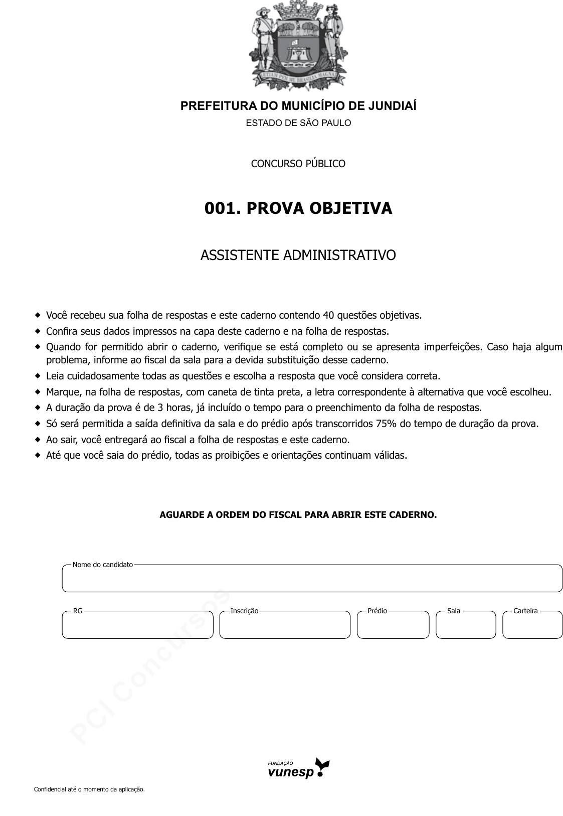 pcimarkpci MjgwNDowNDMxOmU3ZDE6OGU0NzoxNWQxOjc5YzQ6OWM0YTpkM2Ix:V2VkLCAyNiBKdWwgMjAyMyAxOTowOToxMCAtMDMwMA== www.pciconcursos.com.br Confidencial até o momento da aplicação. PREFEITURA DO MUNICÍPIO DE JUNDIAÍ ESTADO DE SÃO PAULO concurso público 001. Prova objetiva assistente administrativo � você recebeu sua folha de respostas e este caderno contendo 40 questões objetivas. � Confira seus dados impressos na capa deste caderno e na folha de respostas. � Quando for permitido abrir o caderno, verifique se está completo ou se apresenta imperfeições. Caso haja algum problema, informe ao fiscal da sala para a devida substituição desse caderno. � Leia cuidadosamente todas as questões e escolha a resposta que você considera correta. � Marque, na folha de respostas, com caneta de tinta preta, a letra correspondente à alternativa que você escolheu. � A duração da prova é de 3 horas, já incluído o tempo para o preenchimento da folha de respostas. � Só será permitida a saída definitiva da sala e do prédio após transcorridos 75% do tempo de duração da prova. � Ao sair, você entregará ao fiscal a folha de respostas e este caderno. � Até que você saia do prédio, todas as proibições e orientações continuam válidas. aguarde a ordem do fiscal Para abrir este caderno. Nome do candidato Prédio sala carteiraInscriçãorG pcimarkpci MjgwNDowNDMxOmU3ZDE6OGU0NzoxNWQxOjc5YzQ6OWM0YTpkM2Ix:V2VkLCAyNiBKdWwgMjAyMyAxOTowOToxMCAtMDMwMA== www.pciconcursos.com.br 2PMJU2105/001-AssistenteAdministrativo Confidencial até o momento da aplicação. conHecimentos gerais Língua Portuguesa Leia o texto para responder às questões de números 01 a 05. O desafio Vou desafiar meus leitores e minhas leitoras. É um con- vite a uma posição mais científica na formulação de opiniões. O pensamento científico tenta enfrentar o que for “precon- ceito”. Dentre muitos sentidos, a palavra indica um conceito surgido antes da experiência, algo que está na cabeça sem observação da realidade. Como na parábola dos cegos que apalpam um elefante, uns imaginam que a forma do mamífe- ro seja de uma espada por tocarem no marfim, outro afirma ser uma parede por tocar seu abdômen e um terceiro garante que é uma mangueira por ter encostado, exclusivamente, na tromba. (…) Tenho encontrado defensores e detratores apai- xonados da obra do recifense [Paulo Freire]. Encontro bem menos leitores. Lanço o desafio cheio de esperança no cen- tenário dele: antes de defender ou atacar Paulo Freire, leia dois livros dele ao menos. Depois de ler e examinar a obra, (…) emita sua sagrada opinião, agora com certo embasa- mento. Educação é algo muito sério. Paulo Freire encarou o gravíssimo drama do analfabetismo. Hoje vivemos outro tipo de drama: pessoas que possuem a capacidade de ler e se recusam a fazê-lo. (Leandro Karnal. O desafio. Jornal O Estado de São Paulo, set.2021. Adaptado) 01. A partir do texto, pode-se concluir que o autor (A) convida os alfabetizados e os analfabetos a valoriza- rem a ciência para que se combata o racismo exis- tente contra os intelectuais. (B) desafia os leitores a uma postura mais científica na formulação de opiniões, de modo que elas sejam mais embasadas e menos preconceituosas. (C) alerta para a seriedade da educação e nega o aspec- to sagrado das opiniões que precisam ser fundamen- tadas cientificamente. (D) condena os leitores que observam a realidade local para emitir uma opinião, assim como ocorre na pará- bola dos cegos. (E) sugere que se elabore uma opinião que não defenda nem detrate a obra de Paulo Freire, visto que a edu- cação é algo sério. 02. Assinale a alternativa que apresenta, correta e respecti- vamente, sinônimos para os termos em destaque no tre- cho – Tenho encontrado defensores e detratores. (A) Favoráveis e adeptos. (B) Indagadores e críticos. (C) Escarnecedores e defensores. (D) Apoiadores e difamadores. (E) Caluniadores e concordantes. 03. Assinale a alternativa cujo termo em destaque forma o plural em –ões, assim como no termo em destaque do trecho – …formulação de opiniões. (A) É preciso manifestar o desejo de ser doador de órgão. (B) A Constituição garante o direito do cidadão. (C) O carnaval tem sido aguardado pelo folião. (D) É preciso saber partilhar o pão. (E) Nem sempre o nosso irmão é de sangue. 04. Considere as frases retiradas do texto: • Tenho encontrado defensores e detratores apaixona- dos da obra do recifense. • Encontro bem menos leitores. Assinale a alternativa que apresenta a união dessas fra- ses sem prejuízo ao sentido atribuído pelo autor. (A) Tenho encontrado defensores e detratores apaixo- nados da obra do recifense, visto que encontro bem menos leitores. (B) Tenho encontrado defensores e detratores apaixo- nados da obra do recifense, por isso encontro bem menos leitores. (C) Tenho encontrado defensores e detratores apaixo - nados da obra do recifense, mesmo que encontre bem menos leitores. (D) Tenho encontrado defensores e detratores apaixo- nados da obra do recifense, porque encontro bem menos leitores. (E) Tenho encontrado defensores e detratores apaixo- nados da obra do recifense, no entanto encontro bem menos leitores. 05. No trecho – … emita sua sagrada opinião… –, a função do termo destacado pode ser também observada em: (A) É um convite a uma posição… (B) Dentre muitos sentidos. (C) Educação é algo muito sério. (D) Lanço o desafio cheio de esperança… (E) … conceito surgido antes da experiência. pcimarkpci MjgwNDowNDMxOmU3ZDE6OGU0NzoxNWQxOjc5YzQ6OWM0YTpkM2Ix:V2VkLCAyNiBKdWwgMjAyMyAxOTowOToxMCAtMDMwMA== www.pciconcursos.com.br 3 PMJU2105/001-AssistenteAdministrativoConfidencial até o momento da aplicação. 08. Assinale a alternativa em que a frase apresenta correta- mente a correlação verbal. (A) Se Dolores tornar seus dias úteis, ela recebeu seu livro. (B) Se Dolores tornara seus dias úteis, ela receberia 
