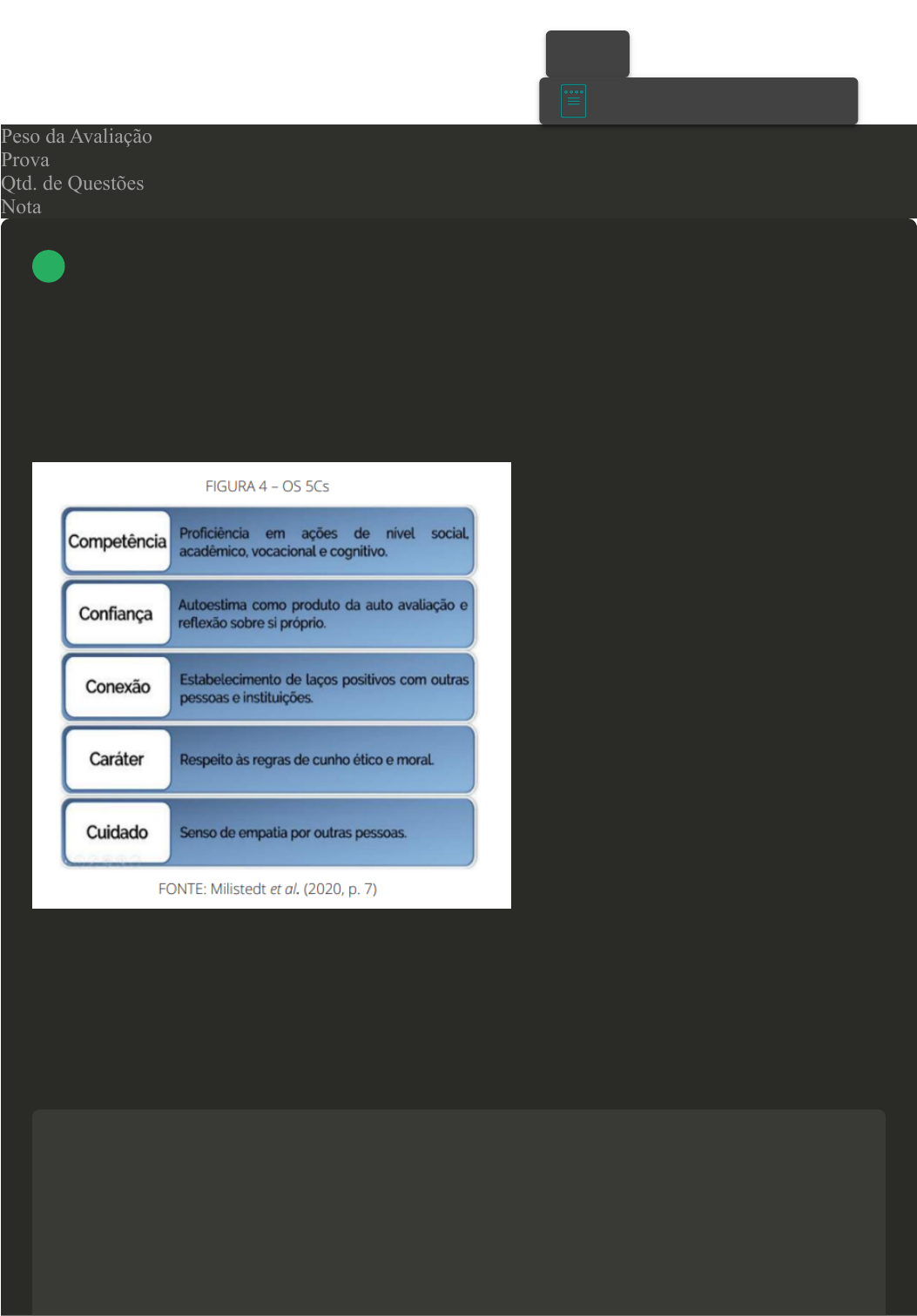 20/05/2023, 14:13 Avaliação Final (Discursiva) - Individual about:blank 1/3 Prova Impressa GABARITO | Avaliação Final (Discursiva) - Individual (Cod.:824571) Peso da Avaliação 4,00 Prova 64027718 Qtd. de Questões 2 Nota 10,00 A respeito do Desenvolvimento Positivo de Jovens (DPJ), podemos dizer que ele surge para valorizar os talentos, as qualidades e os interesses da juventude para potencializar um futuro de sucesso, associando valores técnico-táticos, socioeducativos e histórico-culturais. Sob a perspectiva deste autor, analise a figura a seguir. Disserte a respeito do sexto "C", conceito possível a partir da reflexão proposta acerca da figura. FONTE: MILISTETD, M. et al. Formação de treinadores esportivos: orientações para a organização das práticas pedagógicas nos cursos de bacharelado em Educação Física. Journal Of Physical Education, Maringá, v. 28, n. 1, p. 1-8, 2020. Resposta esperada Quando refletimos sobre o Desenvolvimento Positivo de Jovens, a imagem se faz de crucial importância, uma vez que tanto a competência, quanto à confiança, à conexão, ao caráter e ao cuidado são cruciais para que tenhamos sucesso como educadores, dentro do contexto do DPJ. Ao incluir os cinco hábitos citados, os jovens colocarão em prática o sexto C, ou seja, o ato de praticar os 5 Cs no dia a dia, desenvolvê-los e, consequentemente, melhorar a sociedade da qual VOLTAR A+ Alterar modo de visualização 1 20/05/2023, 14:13 Avaliação Final (Discursiva) - Individual about:blank 2/3 fazem parte é a forma com a qual colocarão em prática todo o processo e por meio dele fazendo a diferença ao chegaram a um resultado que modifica e melhora a comunidade. Minha resposta O conceito de 5 Cs abordado pelo autor em questão foi proposto primeiramente por (LERNER et al. 2005), que aponta estes conceitos como estruturas de busca pelo desenvolvimento dos potenciais, capacidades e motivações por meio de ações e interações que propiciam o Desenvolvimento Positivo dos Jovens (DPJ). Esse conceito aponta para o desenvolvimento de condições favoráveis, sendo desenvolvidas e orientadas por meio da apreciação e aprimoramento dos pontos fortes, indo totalmente na direção oposta do ponto de vista das perspectivas tradicionais que apontam para a repreensão dos pontos negativos como formadores sociais. Quanto ao sexto C proposto por (MILISTEDT et al. 2020), trata-se do conceito encontrado como resultado do desenvolvimento dos outros cinco comportamentos positivos. Sendo que após desenvolvidos, o jovem está pronto para as situações da vida diária, contribuindo com a sociedade como um todo. Essa resposta do jovem é entendida como o sexto “C” denominado "Contribuição" e é reconhecido como o resultado final do processo de DPJ . Ainda no que se refere à esse conceito, seria a capacidade de compreender e manipular ideias e conceitos complexos, uma habilidade crucial para o sucesso em áreas científicas assim como o desenvolvimento de habilidades sociais e emocionais. Estruturas que propiciem esse pleno desenvolvimento são de suma importância e devem ser trabalhados em várias áreas assim como em variadas camadas do processo de aprimoração e formação do sujeito. Retorno da correção Parabéns, acadêmico(a)! Sua resposta atingiu os objetivos da questão e você atingiu o esperado, demonstrando a competência da análise e síntese do assunto abordado, apresentando excelentes argumentos próprios, com base nos materiais disponibilizados. Confira no quadro "Resposta esperada" a sugestão de resposta para esta questão. Quando analisamos o percurso da Educação Física escolar no diz respeito às diferentes correntes pedagógicas, temos que até a década de 1970 no Brasil a corrente dominante era aquela tradicional, voltada ao ensino técnico, portanto denominada de tecnicista. Após a década de 1970, surgem diversas propostas que tentam romper com algumas das características deste ensino. Como exemplo podemos citar a vertente pedagógica chamada de crítico-superadora. A respeito da referida corrente pedagógica que possui no professor José Libâneo um de seus maiores influenciadores, disserte sobre os principais conceitos que a regem, citando o nome de outro educador contemporâneo que a influenciou e ainda a corrente filosófica/social/ideológica por eles seguida. Resposta esperada *A proposta crítico-superadora utiliza o discurso da justiça social como ponto de apoio e é baseada no marxismo tendo recebido na Educação Física grande influência dos educadores José Libâneo e Demerval Saviani. *O trabalho mais marcante dessa abordagem foi publicado em 1992, no livro intitulado Metodologia do ensino da Educação Física, publicada por um Coletivo de autores. *Essa pedagogia levanta questões de poder, interesse, esforço e contestação. 2 20/05/2023, 14:13 Avaliação Final (Discursiva) - Individual about:blank 3/3 *Acredita que qualquer consideração sobre a pedagogia mais apropriada deve versar não somente sobre questões de como ensinar, mas também sobre como adquirimos esses conhecimentos, valorizando a questão da contextualização dos fatos e do resgate histórico. *Esta percepção é fundamental na medida em que possibilitaria a compreensão, por parte do aluno, de que a produção da humanidade expressa uma determinada fase e que houve mudanças ao longo do tempo. Minha resposta A corrente crítico-superadora tem como principal objetivo desenvolver uma educação física que não se restrinja apenas à transmissão de técnicas, mas que possibilite ao aluno a compreensão crítica do mundo e de si mesmo, por meio de uma prática esportiva mais significativa e transformadora. Defende ainda que a Educação Física deve contribuir para a formação integral dos alunos, na sua saúde, autonomia, cooperação, cultura corporal e cidadania. Os principais conceitos que regem essa corrente pedagógica são a crítica ao tecnicismo, a valori