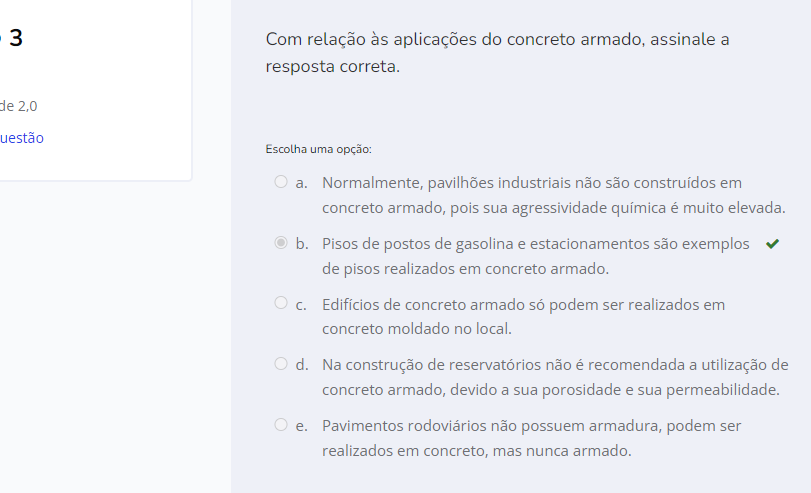 b. Pisos de postos de gasolina e estacionamentos são exemplos de pisos realizados em concreto armado. Edifícios de concreto armado só podem ser realizados em concreto moldado no local.