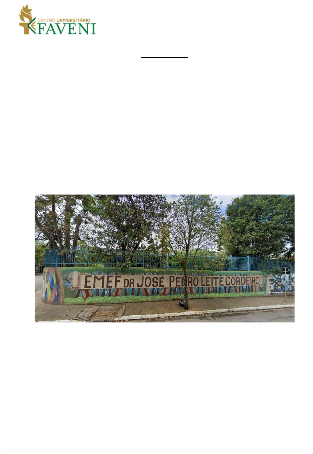 PORTFÓLIO Nome: Curso: Disciplina: PRÁTICAS PEDAGÓGICAS: GESTÃO ESCOLAR Aula: 03 ATIVIDADE A visita foi realizada na escola E.M.E.F Dr. José Pedro Leite Cordeiro de São Paulo SP. Em entrevista com o coordenador pedagógico ..........., me apresentei como ............ estudante do 2º Período do curso de licenciatura em música da Universidade UNIFAVENI. DATA DE FUNDAÇÃO E HISTÓRIA DA INSTITUIÇÃO A EMEF Dr. JOSE PEDRO LEITE CORDEIRO foi criada no dia 13/06/1988. impacto social através do desenvolvimento integral de crianças e adolescentes de 05 a 18 anos oferecendo aulas gratuitas de música para a comunidade. A ideia surgiu entre a vontade e sonhos de alguns amigos que se conheceram pela música, a ideia era trazer pra perto da comunidade o acesso para a cultura usando a música erudita como ferramenta. E assim foram surgindo a necessidade de espaços para começar suas oficinas, daí se conciliou a ideia da Associação para que por meio dela fosse conquistadas parcerias e incentivos para a existência da Associação Quiálteras Culturais. OBJETIVOS DA INSTITUIÇÃO A EMEF Dr. JOSE PEDRO LEITE CORDEIRO oferece ensino fundamental, anos finais e a modalidade, EJA. A Instituição trás toda a estrutura necessária para o conforto e desenvolvimento educacional dos seus alunos, como por exemplo: Internet, Banda Larga, Refeitório, Quadra Esportiva, Quadra Esportiva Coberta, Laboratório de Ciência, Laboratório de Informática, Sala de Leitura, Pátio Coberto, Sala do Professor e Alimentação. NÚMERO DE PESSOAS ATENDIDAS São atendidas em média 689 alunos entre crianças, jovens e adultos na modalidade EJA, com o objetivo de estrutura seus alunos para a vida acadêmica de ensino superior e também para o mercado de trabalho. NUMERO DE FUNCIONARIOS A EMEF Dr. JOSE PEDRO LEITE CORDEIRO possui 119 colaboradores ao todo, contando com diretores, coordenadores, professores e serventes. DADOS DA INSTITUIÇÃO E HORÁRIOS DE FUNCIONAMENTO Código INEP 35094785 Localização da Escola Urbana Dependência Municipal Endereço DESEMBARGADOR FERNANDO DE ALBUQUERQUE PRADO, 250 Bairro: CIDADE KEMEL – ITAIM PAULISTA Cidade: SAO PAULO CEP: 8130110 Telefone: (11) 2963-3402 E-mail: EMEFJPLCORDEIRO@PREFEITURA.SP.GOV.BR Horário de funcionamento é de segunda a sexta das 07:00 às 23:00 horas. Horário de atendimento é de segunda a sexta das 09:00 as 16:00 horas. CONCLUSÃO A instituição busca ser referência na área em que atua, trabalhando com excelência e se fazendo presente na vida de seus alunos e colaboradores. Tem hoje como finalidade promover melhoria na qualidade de vida das crianças, adolescentes e jovens, proporcionar maior convivência comunitária e contribuir para minimizar situações de vulnerabilidade dentro da Sociedade.