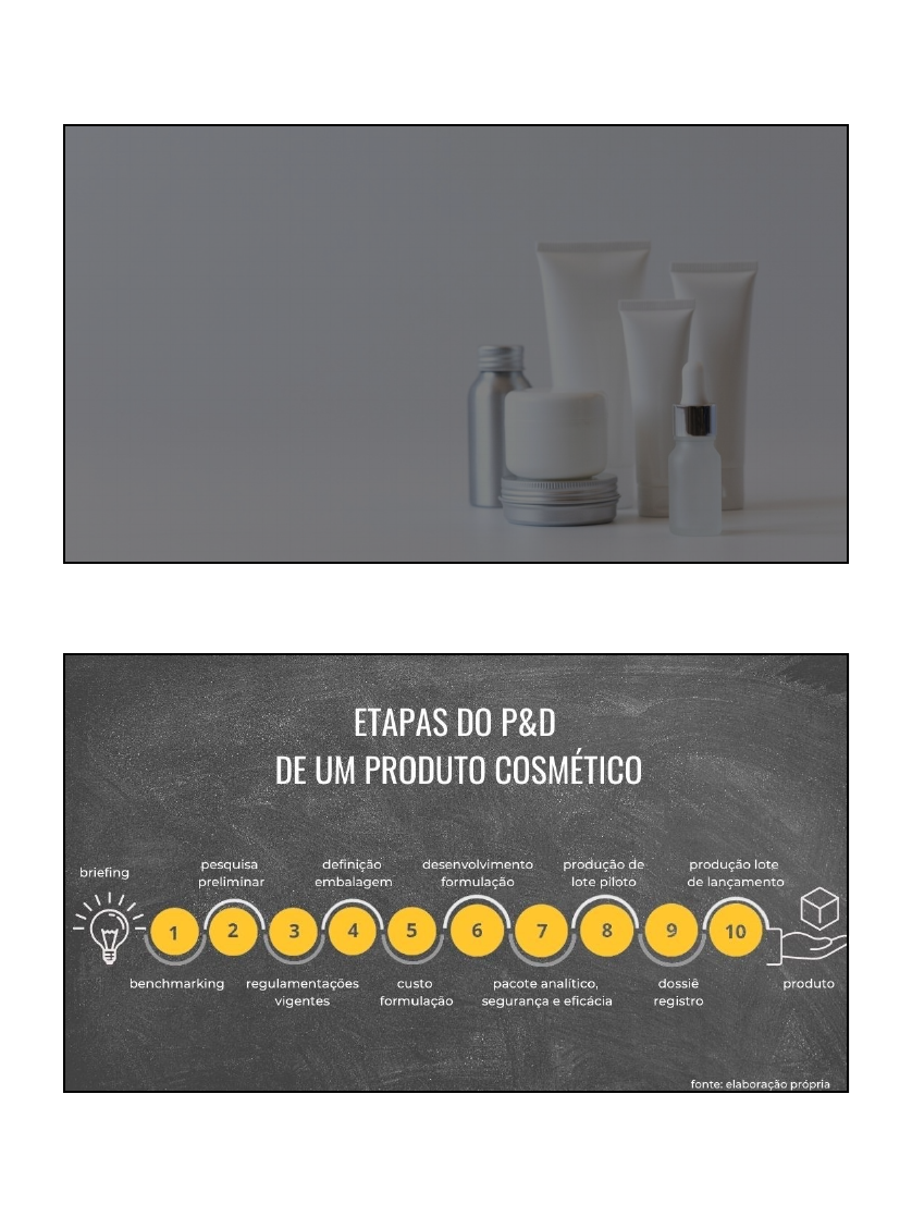 24/02/2023 1 P & D produtos cosmé/cos Cosmé&cos e Sanificantes 1 2 24/02/2023 2 3 4 24/02/2023 3 Caracterís)cas das bases cosmé)cas Carga elétrica PEG-free Segurança Livre de pretrolatos e parabenos Selo ECOCERT Não comedogénica Espalhabilidade Sensorial Hipoalergênica Testada dermatológicam ente 5 Profa. Dra. Taís Gabbay 5 6 24/02/2023 4 7 Bases cosmé*cas • HIDROFÍLICAS • Gel • Creme • Gel-creme • Emulsão (O/A) • Pasta • Solução • LIPOFÍLICAS • Emulsão (A/O) • Pomada • Loção Profa. Dra. Taís Gabbay 7 8 Classificação dos cosmé)cos Profa. Dra. Taís Gabbay Grau 1 8 24/02/2023 5 9 Classificação dos cosmé)cos Profa. Dra. Taís Gabbay Grau 2 9 10 24/02/2023 6 Controle de qualidade Testes pré-formulação Testes com o produto acabado Teste de estabilidade Prazo de validade 11 Insumos cosmé*cos Cosmé&cos e Sanificantes 12 24/02/2023 7 Insumos Origem Pureza Compa&bilidade Claim Custo Necessidade 13 14 24/02/2023 8 15 16 24/02/2023 9 17