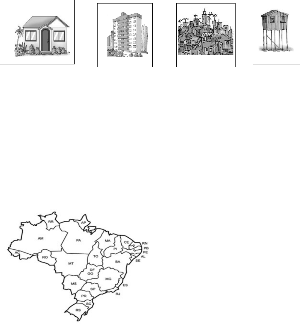 AVALIAÇÃO DE GEOGRAFIA 4º ANO BRUNA 1)Abaixo, temos quatro tipos de moradia. Observe. ( 1 ) casa de alvenaria ( 2 ) prédio ( 3 ) favela ( 4 ) palafita Marque os números de cada moradia de acordo com o material que elas são fabricadas. ( ) são habitações precárias, feitas de madeira, papelão e sucata. ( ) grandes construções de vários andares, feitas com concreto, vidro e madeira. ( ) são feitas de madeiras apoiadas em estacas fincadas em fundo de rios. ( ) são construções térreas, feitas tijolo, madeira e vidro. 2)Correlacione as siglas aos nomes: (1) NO ( ) nordeste (2)SO ( ) noroeste (3)SE ( ) sudeste (4)NE ( ) sudoeste 3)Observe o mapa abaixo e escreva os estados correspondentes a; a)Região Nordeste. ____________________________________________________________________________________________________________________________________________________ b)Região Sul. ____________________________________________________________________________________________________________________________________________________ c) Região Norte. ____________________________________________________________________________________________________________________________________________________ 4) Agora complete: Esse é o mapa do __________________,nosso país. Ele está dividido em ________ estados e um ___________________________________________, situado no estado de ___________________ na região ____________________________. 5) Leia as informações a baixo e responda o que se pede. A- A região brasileira com o maior número de estados é a _______________________________________. B- A mais extensa das regiões brasileiras é _______________________________________. C- A região brasileira quase situada ao sul do trópico de capricórnio é a ________________________________. D- A região centro – oeste é constituída por 3 estados : _____________________________________________ ___________________________________ e 1 distrito federal. 6)Assinale (v) se a informação for verdadeira ou ( f ) se a informação for falsa: ( ) A cidade e o campo são diferentes no trabalho e no modo de viver e, por isso, não há ligação entre os dois. ( ) A relação entre a cidade e o campo é importante e um depende do outro para crescer economicamente. ( ) As paisagens mudam com o trabalho, mas o modo de viver continua o mesmo. ( ) O trabalho é muito importante na formação das paisagens rural e urbana e refletem o modo de viver no campo e na cidade. 7) Sobre a utilidade dos três poderes que regem nossa sociedade sabemos que; a) O Legislativo modera as leis, o Judiciário as aplica e o Executivo administra essas leis. b) Toda sociedade precisa desses poderes para manter a ordem social e política de convivência. c) O presidente não interfere na formulação dessas leis e o Juiz nunca ás aplica. 8) Sobre a orientação no espaço geográfico, associe: (A) Bússola (B) Gps (C) Sol ( ) os pontos de orientação, chamados pontos cardeais, foram determinados com base na observação deste meio de orientação. ( ) instrumento de orientação semelhante a um relógio, possui uma agulha imantada que sempre aponta para o norte. ( ) meio moderno de orientação, que permite localizar com precisão um objeto em qualquer lugar da superfície da Terra. “A medida que você se esforça mais perto você chega do seu sucesso” Beijos Tia Bruna!