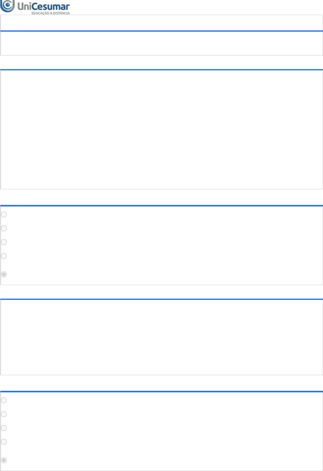 30/09/2023, 18:07 Unicesumar - Ensino a Distância about:blank 1/6 PROJETO DE ENSINO - BOAS PRÁTICAS DE MARKETING DIGITAL - 53/2023 Período:24/07/2023 08:00 a 22/09/2023 23:59 (Horário de Brasília) Status:ENCERRADO Gabarito:Gabarito será liberado no dia 23/09/2023 00:00 (Horário de Brasília) 1ª QUESTÃO Os resultados das métricas e KPI´s possibilitam muitas respostas para planejamento do marketing digital permitindo mensurar, monitorar e administrar estratégias. Você aprendeu sobre a diferença entre Métricas e KPI e a importância de defini-las de acordo com o estágio, modelo e objetivos do negócio. Pensando nisso, leia as informações a seguir: João está prestando serviço de consultoria em Marketing para uma empresa de streaming de jogos online. A empresa foi lançada ao mercado ainda este ano e contratou João com o objetivo de construir estratégias de crescimento de base de clientes. Elaborado pelo professor, 2021. Considerando o exposto, analise as afirmativas abaixo e selecione o conjunto de métricas e KPI's mais úteis para este momento do negócio e para o objetivo do projeto. ALTERNATIVAS Métricas: Visitas ao site, contas criadas. KPI's úteis serão taxa de retenção e taxa de engajamento. Métricas: CTR, Base de seguidores nas redes sociais, Menções. KPI ideal é o de visualização dos vídeos. Métricas: Visitas ao site, Número de curtidas, Notas de Satisfação. KPI ideal é a quantidade de seguidores. Métricas: Sentimento da marca, visualização de vídeos, alcance e impressões. KPI ideal é a taxa de cliques. Métricas: Avaliações do serviço, Impressões das campanhas e não pode faltar o KPI de Notas de Satisfação do Consumidor. 2ª QUESTÃO Atuar na área de Marketing exige conhecimento básico em tecnologia. Com o avanço da internet, a tecnologia cresce ainda mais e esse impacto no mercado tem sido visto por todos, a tecnologia não é mais um diferencial na atualidade, é essencial. É preciso ser assertivo, obter dados, fazer análises constantemente para efetividade das ações. Elaborado pelo professor, 2021. Considerando o exposto, avalie a alternativa que explica esta afirmação. ALTERNATIVAS Ao entender sobre os recursos de tecnologia o Marketing fica melhor. Sem entender de tecnologia você não vai conseguir configurar campanhas em martechs. Sem entender de tecnologia, o profissional não consegue montar um checklist da ferramenta 5w2h. Sem saber de tecnologia, o profissional não consegue montar um plano de execução de Marketing. Ao compreender como usar recursos de tecnologia, o profissional consegue ser assertivo e analítico nas estratégias e execução de ações de Marketing. 3ª QUESTÃO 30/09/2023, 18:07 Unicesumar - Ensino a Distância about:blank 2/6 3 QU STÃO O Marketing passou por diversas fases até chegarmos ao que temos hoje, conhecido como Marketing 5.0, que combina a tecnologia com o fator humano. A tecnologia do Marketing segue cada vez mais com agilidade e enfatizando como a tecnologia é imprescindível tanto no relacionamento com os clientes quanto para ter informações em tempo real na tomada de decisões. Elaborado pelo professor, 2021. Considerando as diversas fases passadas durante a história do Marketing, assinale a alternativa correta: ALTERNATIVAS Marketing 5.0 - Momento: Era da Informação - Foco: Consumidor - Mote: O cliente tem sempre razão. Marketing 1.0 - Momento: Era da Informação - Foco: Produto - Mote: Não importa o cliente, importa o produto. Marketing 3.0 - Momento: Era do relacionamento - Foco - Relações humanas e sociedade - Mote: Não importa o cliente, importa o produto. Marketing 5.0 - Momento: Tecnologia para humanidade - Foco: Tecnologia - Mote: Tecnologias passam a imitar comportamentos humanos. Marketing 2.0 - Momento: Era da Informação - Foco: Relações humanas e sociedade - Mote: A empresa precisa oferecer soluções para o coletivo. 4ª QUESTÃO Com relação à evolução do atendimento ao consumidor, denominado como SAC (Serviço de Atendimento ao Consumidor), sabemos que para melhorar a experiência do consumidor, oferecendo um serviço mais moderno, satisfatório, o atendimento passou por várias fases, pois é necessário acompanhar as mudanças em relação ao comportamento do consumidor. Elaborado pelo professor, 2021. Considerando às fases de mudança e alteração que a área sofreu durante os anos, podemos afirmar que: ALTERNATIVAS A partir do SAC 3.0 os atendimentos via telefone deixaram de existir, sendo feitos exclusivamente através das redes sociais. O SAC 1.0 apareceu com o surgimento da internet e a possibilidade de comunicação por e-mail e outros canais de texto como SMS. As redes sociais aparecem no cenário da comunicação tornando-se mais uma opção de canal para relacionamento entre marcas e clientes. Essa fase foi conhecida como SAC 2.0. As mídias sociais surgem no SAC 3.0 e somente realizam atendimentos reativos e unilaterais, ou seja, quando o cliente tem algum problema e busca as empresas através das mídias sociais para resolvê-lo. No SAC 4.0 é possível ver a inserção de robôs (conhecidos como "bots") para o atendimento aos consumidores. Esses robôs agem, principalmente, filtrando atendimentos para que quando os clientes cheguem ao atendimento humano, o atendente já tenha informações suficientes sobre o cliente e sobre a demanda, para que o atendimento seja mais efetivo e personalizado. 5ª QUESTÃO 30/09/2023, 18:07 Unicesumar - Ensino a Distância about:blank 3/6 Para a gestão de campanhas de mídia em ambiente digital, muito mais do que realizar configurações que identificam determinado público-alvo, inserir peças gráficas adequadas e textos persuasivos, se não houver configurações de registro e parâmetros de contabilização, a sua campanha não será assertiva. Elaborado pelo professor, 2021. Considerando o exposto, assinale a alternativa que justifica essa afirmação: ALTERNATIVAS Sem as configuraç